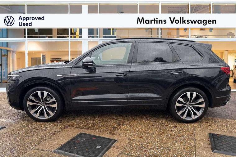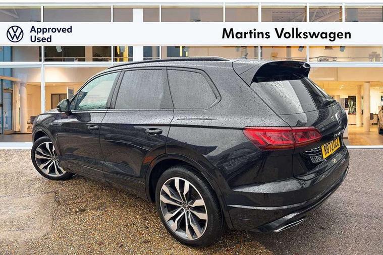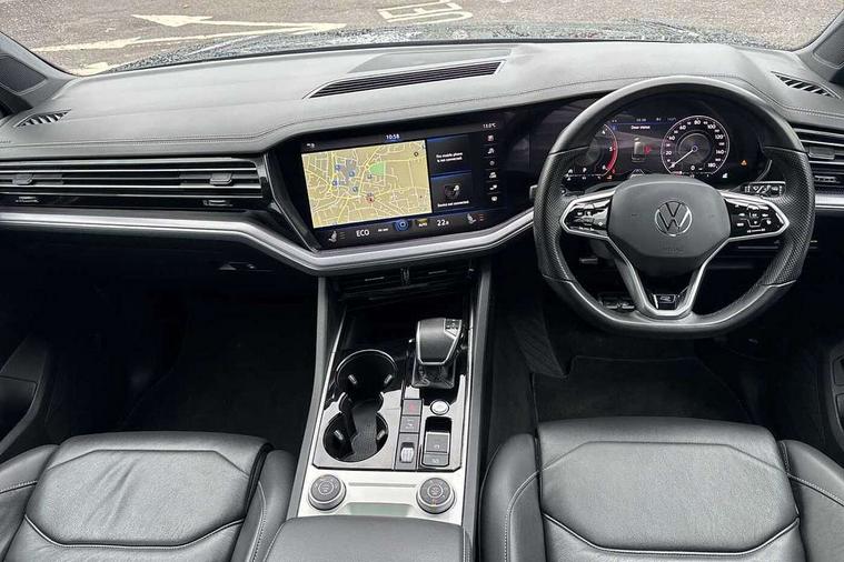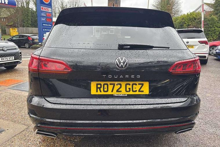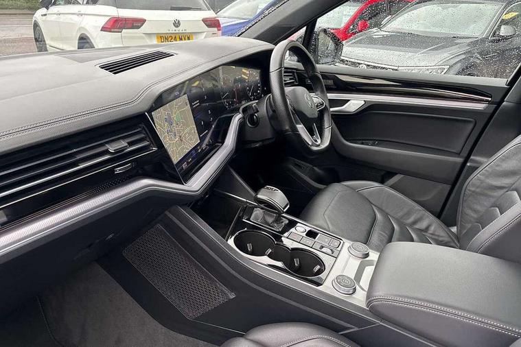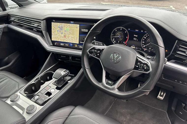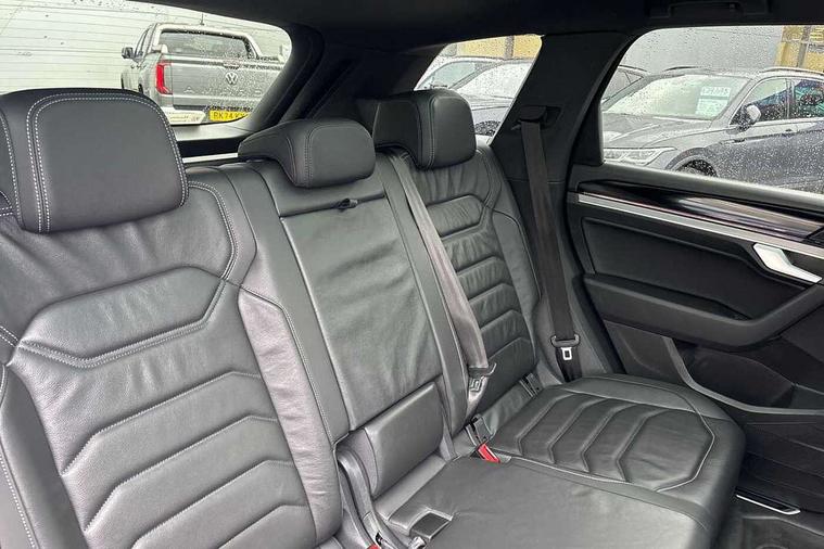 2D/3D map view, ACC - Adaptive cruise control with front assist, forward collision warning, distance monitoring, city emergency brake and speed limiter, Apple car play/Android Auto, Audible and visual fatigue detection system, Bluetooth hands free telephone connection, Car information display, Drive select with Damper control, Driver alert system, Driver profile selection, Dynamic road sign display camera controlled system with visual warning for traffic and road signs, eCall emergency system, Fully electric tailgate + keyless entry and start, Instrument cluster, MirrorLink, Multifunction camera, Multifunction computer premium with 7" colour display, One touch indicators with repeat function, Service interval indicator, Speed sensitive power steering, Start/stop system with regenerative braking, Tailgate power latch, Think blue trainer driver tips and journey analysis, Traffic sign recognition, Voice control system, Wireless Smartphone charger, 24 litre AdBlue tank, Torsen limited slip differential, DAB Digital radio, Dynamic navigation based on TMC+, Gesture control for infotainment system, Multi device interface (MDI) with illuminated USB-C connection, Music playback - MP3, WMA and AAC files, SD card slot, Simultaneous pairing of 2 compatible mobile devices, SMS functionality - read, compose and send SMS messages using touch-screen display, Title and cover art display, Volkswagen media control, Adaptive low beam for urban and motorway use, Auto dimming rear view mirror, Automatic coming/leaving home lighting function, Automatic headlights, Black anodised roof rails, Black door mirrors, Black rear diffuser, Black side window surrounds, Black upper and lower grille louvres extending into headlights and radiator grille, Body colour door handles, Body coloured wheel arches, C signature gloss black front air intake, Chromed tailpipe on the left and right integrated in the bumper with trapezoid design, Dusk sensor, Dynamic headlight range control, Electric front tilt/slide panoramic sunroof and fixed rear sunroof, Electrically power adjustable, heated, folding, auto dimming, front passenger exterior door mirror lowering function, Front and rear electric windows, Galvanised body, Gloss black finish B pillar, Gloss black rear diffuser, Headlight washers, Heat insulating darkened glass in side and rear windows, Heated windscreen washer jets, IQ.Light-LED matrix headlight, daytime running light with dynamic cornering light and indicator, LED 3rd brake light, LED rear fog light, LED rear number plate lights, Plastic scuff plates in door apertures, Poor weather light, Puddle lights, Rain sensor, Rear side wing doors, Rear wiper, 12V socket in front and rear centre console and boot, 2 Coat hooks on B pillar, 3 rear head restraints, 3 seat bench in 2nd row, 3 spoke sport heated leather multi-function sports steering wheel with gear shift paddles - generation 2, 4 way adjustable front head restraints, 4 way electric lumbar support for driver and front passenger, 4 zone climate control, 40:20:40 split folding slide/recline rear seat, B pillar vents, Black lower edge of door extending sills, Branded points of interest, Double sun visor for drivier and passenger with LED illuminated vanity mirrors, Electric luggage compartment cover, Folding rear centre armrest with 2 cupholders, Front + rear carpet mats, Front centre armrest with storage box, Gear shift indicator, Height/reach adjust steering wheel, Illuminated air conditioned glovebox, Isofix preparation for 2 rear child seats, Jack and tool kit, Leather trimmed gear knob with gloss black inlay/aluminum trim, Leatherette door trim, LED luggage compartment lighting, Load through provision, Luggage compartment with load lashing rings, Plastic loading edge protection, Rear seat remote release levers, Single front passenger seat, Soul black headlining, Stainless steel pedals, Innovision cockpit pack - Touareg, 3 point front seatbelts with pre-tensioners, ABS, Active bonnet, Automatic post collision braking system, Curtain airbags, Driver/Front Passenger airbags, EBD + Brake Assist, EDL, Electronic parking brake with auto hold, ESC with ASR, Front seat side impact airbags, Hill descent control, Hill start assist, Passenger airbag deactivate switch, Seatbelt warning lamp and buzzer, Three 3 point rear seatbelts, Two tone horn, Volkswagen roadside assistance, Warning triangle and first aid kit, Alarm with interior monitoring in cab, backup horn and towing protection, Child security locks for front and rear doors, Electronic engine immobiliser, Remote central locking, Black decorative trims on the side windows, High gloss black centre console,