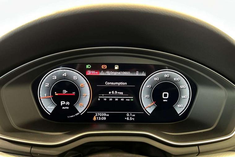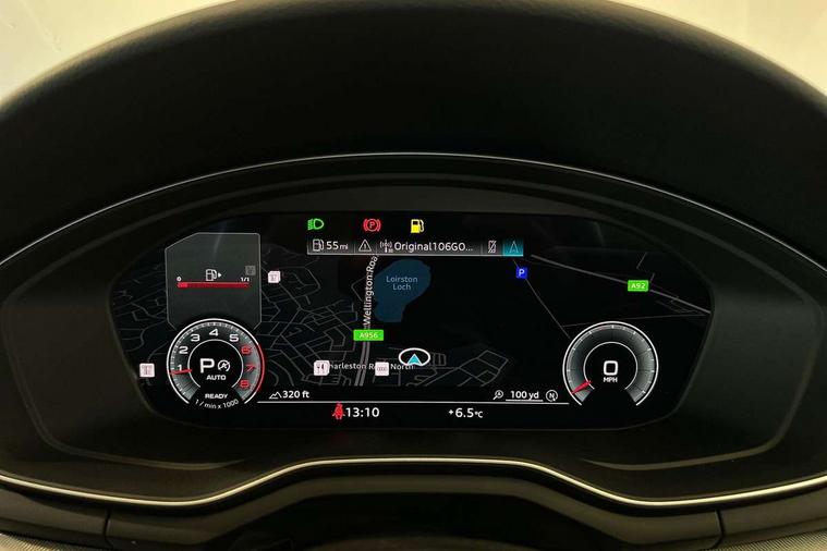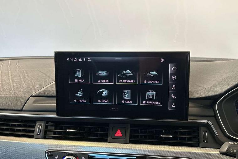 Audi connect safety and service (e-call), Audi connect with Amazon Alexa Integration, Audi drive select, Audi parking system plus with front and rear sensors, Audi smartphone interface, Audi virtual cockpit, Automatic start-stop system with coasting functionality and efficiency programme, Bluetooth interface, Cruise control system with speed limiter, Electric boot lid release, Electromechanical power steering, Email, calendar and text messages displayed via MMI, MMI Navigation plus with MMI touch includes 10.1" high resolution colour MMI display, 3D map, Rear view camera, Voice control system, 54 litre fuel tank, Comfort dynamic suspension, 2 USB charging ports, 8 passive loudspeakers, DAB digital radio reception, Auto dimming rear view mirror, Body coloured door mirrors, Electrically folding auto dimming/adjustable/heated door mirrors with LED side indicators and kerb view function for passenger side, LED headlights and rear lights with LED daytime running lights, LED third brake light, New design rear diffuser, Rain and light sensors, Rear boot, Rear side wing doors, Variable intermittent front wash/wipe, Windscreen with acoustic glazing, 3 spoke high multi-function leather sport steering wheel with paddle shift and height and reach adjustable, 4 way electric lumbar support for driver and front passenger, 40/20/40 split folding 3 rear seat bench in 3 parts with rear centre armrest, Deluxe 3 zone electronic climate control, Door sill trims with aluminium inlay, Front and rear head restraints, Front centre armrest, Heated front seats, Interior lighting, ISOFIX child seat mounting and top tether, Manual seat adjustment, Single front passenger seat, High gloss package - A4, 3 rear seatbelts, 6 airbags - Driver, front passenger, curtain and side windows, Electronic Stabilisation Control (ESC) including ABS, ASR and EDL, Hill hold assist, Multi collision brake assist, Pop-up bonnet for pedestrian protection, Pre sense city, Rear door child safety locks, Seatbelt monitoring, Warning triangle and first aid kit, Anti theft alarm, Anti theft wheel bolts, Central locking, Keyless Go, Tool kit, Tyre repair kit,