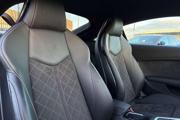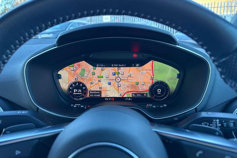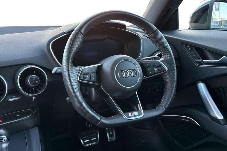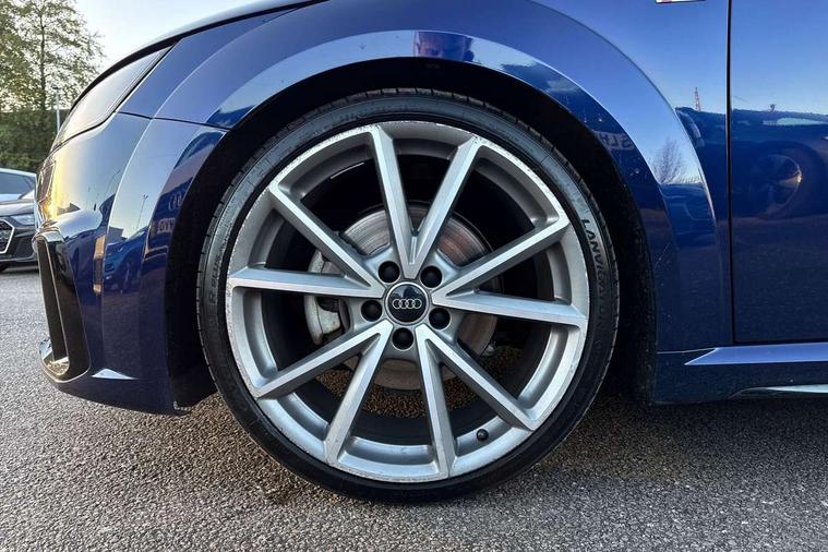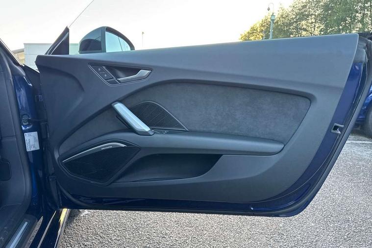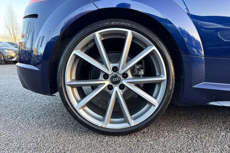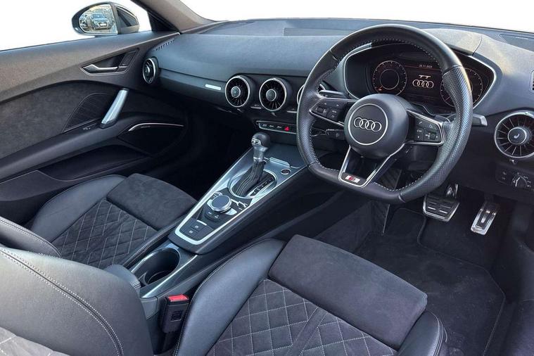 Audi drive select with 4 Pre configured modes, Audi smartphone interface, Audi virtual cockpit - 12.3" high-resolution LCD display with fully customisable instrument cluster, Cruise control + speed limiter, Emergency call service, MMI touch panel, Mobile phone preparation with bluetooth interface, Progressive power assisted steering, Service interval indicator, Start/Stop system with energy recuperation, TP memo, Sports suspension, AM/FM radio, Bluetooth audio streaming, DAB Digital radio, MMI Radio with CD player and SD/XC card slot, Auto dimming rear view mirror, Auto headlight range control, Black chrome tailpipe, Dark privacy glass from B-pillar backwards, Electric folding door mirrors, Electric front windows, Electrically adjustable and heated door mirrors with integrated LED side indicators, Front fog lights, Green tinted heat insulating glass, LED 3rd brake light, LED daytime running lights, LED headlights with LED rear lights + dynamic rear indicators, Light and rain sensors, Rear boot, Sunband for windscreen, 12V socket, 2 rear seats, 3 spoke flat bottomed high multi-function leather sport steering wheel with gearshift paddles, 4 way electric lumbar support for driver and front passenger, Black headlining, Contrasting silver stitching in steering wheel, Door sill trims, Extended aluminium look with stainless steel pedals, Front centre armrest, Front passenger seat, Front super sports seats, Heated front seats, Height/reach adjust steering wheel, Integrated head restraints, ISOFIX child seat mounting for front passenger seat with airbag deactivation, Manual adjustment of seat height, fore/aft position, seat angle, seat depth and backrest angle, Perforated leather gearknob in black, Rear head restraints, Rear top tether child seat ISOFIX attachment, Split folding rear seat, Black styling pack - TT, Non smoking pack - TT/TT RS, 3 point front seat belts, ABS, ASR traction control, Curtain airbags, Driver and front passenger airbag with front passenger airbag deactivation, EDL traction control, Electromechanical parking brake, ESP, First aid kit, Front side airbags, Head airbags, Hill hold assist, Seatbelt warning, Tyre pressure loss indicator, Warning triangle, Anti theft alarm, Anti theft wheel bolts, Immobiliser, Keyless Go, Remote central locking, Matt brushed aluminium inlays, Tool kit, Tyre repair kit,