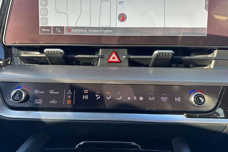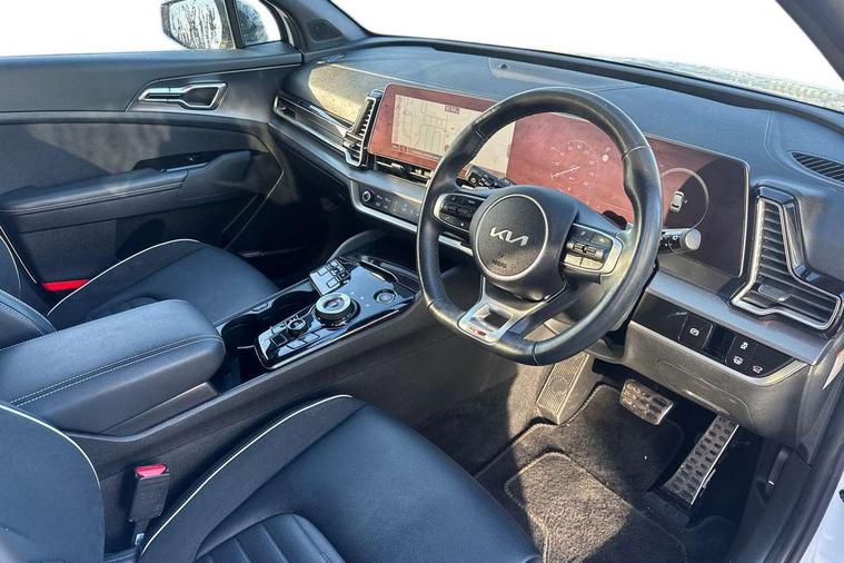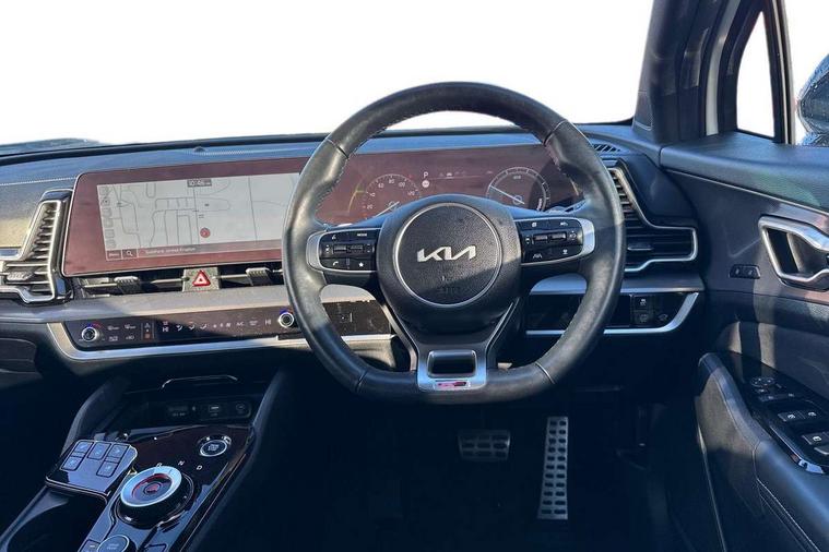 12.3" Display with navigation, 12.3" supervision colour cluster display, 360 degree around view monitor, Apple car play/Android Auto with voice control, Blind spot collision avoidance assist, Blind spot view monitor, Drive mode selector, E-call, Forward collision avoidance assist (FCA) - city/pedestrian/cyclist/junction covering, Front and rear parking sensors, Highway Driving Assist (HDA), Intelligent speed limit assist, Kia Connect (UVO), Lane Following Assist (LFA), Lane keep assist, Low washer fluid warning, Parking collision avoidance assist (PCA), Remote smart parking assist, Reversing camera system integrated into centre fascia screen, Smart cruise control with stop and go functionality, Smart power tailgate, Speed sensitive power steering, Trip computer, Windscreen washer level indicator, Wireless Smartphone charger, Intelligent Stop and Go, Bluetooth audio streaming, DAB Radio with MP3, Harman Kardon premium sound system, Rear USB port, Steering wheel mounted audio controls, USB C type charging ports on centre console, USB C type charging ports on side of front seats, USB port for connection of a media device, All round electric windows with drivers and front passenger auto up/down function, Automatic headlight control system, Automatic window defogger, Backlite glass heated with timer, Body colour and black bumper with silver accents, Body colour exterior door handles, Body colour radiator upper garnish and door garnish, Dual LED adaptive headlamps, Electric panoramic glass sunroof (Electric one touch with safety function), Electrically adjustable/heated/folding door mirrors with LED indicators, Front and rear chrome skid plates, Gloss black door mirrors, Gloss black radiator grille, Gloss black side sill and wheel arch body mouldings, Glossy black roof rack, High beam assist, Interior electrochromic mirror, LED daytime running lights, LED front fog lamps, LED High mounted stop light, LED rear combination lamp, Rain sensing wipers with aero blades, Rear fog lamp, Rear privacy glass, Rear side wing doors, Rear spoiler, Rear wiper, Satin finished beltline, Trailer stability assist, 10 way driver/8 way passenger electrically power adjustable seats, 12V power socket in front centre fascia and luggage compartment, 3 seat bench in 2nd row, 3 x passenger assist grips, 40/20/40 split folding rear seat, All-round height adjustable headrests, Ambient lighting, Black headlining, Centre console storage box, Cupholders in rear armrest, D-Shaped sports leather steering wheel and perforated inserts with GT-Line logo, Door courtesy lamps, Drink holder at centre armrest, Driver and front passenger side sunvisors with illuminated vanity mirrors, Driver seat memory function, Drivers seat power lumbar support, Front and rear door storage, Front seat and rear pockets, Front/rear centre armrests, Gear shift indicator, Glovebox illumination, Heated front and outer rear seats, Heated steering wheel, Interior door lock/unlock function, ISOFIX Child seat top tethers and anchor fixings outer rear seats, LED interior personal lamp, LED lighting in overhead console, Luggage area LED light, Luggage area load cover, Luggage net with hooks, Metal paint interior door handles, Paddle shift controls, Rear coat hooks, Single front passenger seat, Sports pedals, Suede leather upholstery, Three zone climate control, Tilt/telescopic adjustable steering wheel, Ventilated front seats, Ventilation ducts to rear compartment, Active front headrests, All round 3-point seatbelts, Anti-lock braking system (ABS), Dual front side airbags, Dual horn, Electronic parking brake, Electronic stability control with downhill brake control, Front passenger airbag cut-off switch, Front seatbelt pretensioners + load limiters, Height adjustable front seatbelts, Hill start assist control (HAC), Impact sensing auto door unlocking, Multi collision brake assist, Rear door child safety locks, Rear seat alert system, Traction control, Twin curtain airbags, Twin front airbags, Tyre pressure monitoring system, Advanced anti-theft system including immobiliser and alarm, Door deadlocks, Engine Start/Stop Button with Smart Entry System, Locking wheel nuts, Speed sensitive auto door locking, Visible vehicle identification number, Aluminium pattern finish centre fascia and door garnish, 18" Alloy wheels, Michelin tyres, Tyre mobility kit,