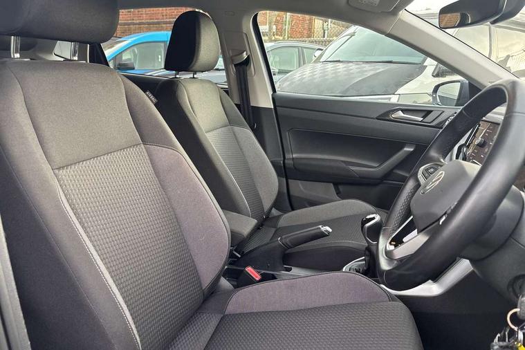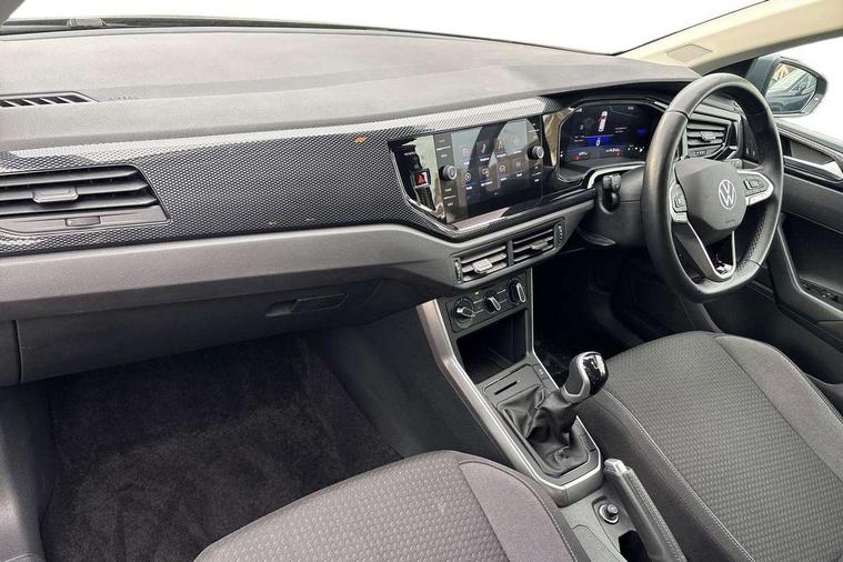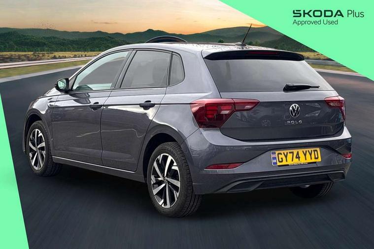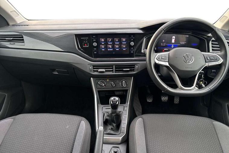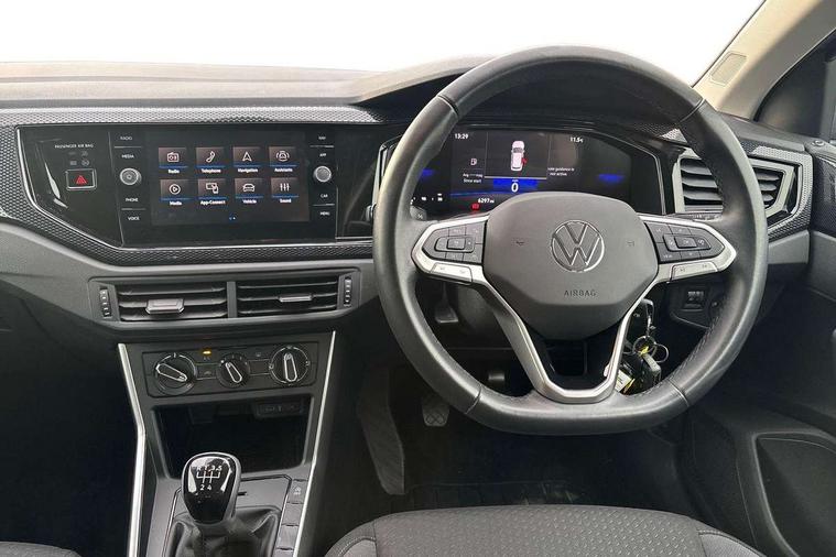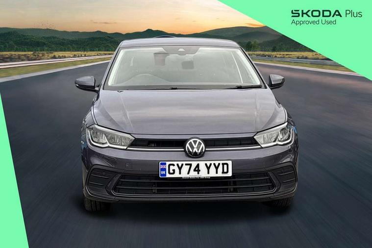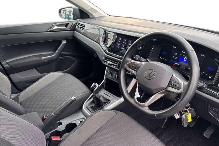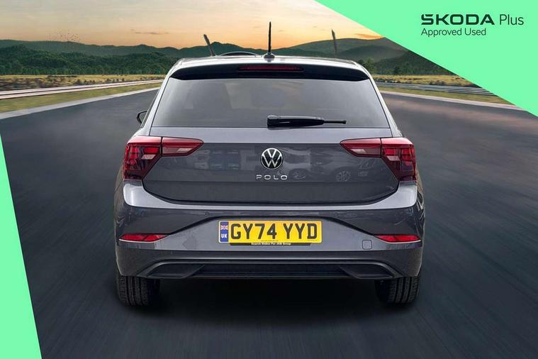 Adaptive cruise control without follow-to-stop and speed limiter, Advanced driver attention and drowsiness monitor, Bluetooth mobile phone interface, Dynamic road sign display, Emergency call service, Multifunction front facing camera for distance control, Park distance control, Power assisted speed sensitive steering, Preparation for navigation system with media and internet package, Preparation for We connect and We connect plus, Rear view camera, Speedo and rev counter, electronic odometer, trip, service interval display and exterior temperature gauge, Standard rear axle, Travel Assist - Lane keeping system and traffic jam assist, Travel assist including emergency assist, Trip computer, Warning signal and warning light for front and rear seatbelts not fastened, Washer fluid level indicator, Wireless app connect, Front wheel drive, Rear shock absorpion, Start-stop system with battery regeneration (recuperation - energy recovery during braking), DAB Digital radio, Diversity antenna for FM reception, Front and rear 6 speakers, Automatic dimming interior rear view mirror, Automatic headlight control with LED separate daytime running lights with coming/leaving home function, Body colour bumpers with chrome inserts, Body colour door handles, Body colour door mirrors, Electric front windows, Engine badge deletion, Headlight range adjustment, Heat insulating and laminated safety glass windshield, LED Headlights, LED rear combination lamps, Power folding adjustable/heated exterior mirrors and front passenger exterior mirror lowering function, Rain sensor, Rear electric windows, Rear fog light, Rear side wing doors, Rear tinted glass from B-pillar backwards approx 65% tinted, Rear windscreen washer and wiper with interval delay, Third brake light, 12V power socket in centre console, 2 front and 2 rear reading lights with switch off delay and dimmer, 2 USB-C ports in the front, 2 USB-C charging sockets on the center console in the rear, 3 rear head restraints, 60/40 split folding rear seat and rear seat bench not split, Ceramique roof lining, Chrome plated radiator grille inserts, air vent surrounds and light switch surrounds, Door and side trim panel, Driver and front passenger seat height adjustment, Driver/passenger sunvisors with illuminated vanity mirrors, Front centre armrest, Front seat backrest storage pockets, Front standard seats, Handbrake lever handle in leather, Hartley/Thomas cloth upholstery, Headliner in recycled material, Isofix child seat preparation easy-fit (for two outer rear seats, and front passenger seat) compatible with I-size, Leather trimmed gear knob, Luggage compartment cover, Luggage compartment lighting, Removable luggage compartment floor, Single front passenger seat, Standard climatic zones, Standard pedal cluster, Three spoke leather wrapped multifunction steering wheel, Light and vision pack - Polo, 3 point height adj front seatbelts + pretensioners, 3 point seat belt for centre rear seat, 3 point seatbelts, outer rear with ECE lable, ABS, Driver and front passenger airbag with front passenger airbag deactivation, Drivers and front passengers safety optimised head restraints, ESC (Electronic stability control) + EDL (Electronic Differntial lock) and ASR (Traction control), Extended and predictive pedestrian/ cyclist protection, Front assist with autonomous emergency braking (for Adaptive Cruise Control ACC up to 130 mph), Front curtain and side airbags with center airbag, Front disc brakes, Hill hold control, Manual child lock in rear doors, Rear drum brakes, Single tone horn, Tyre pressure loss indicator, Alarm with interior protection, Anti-theft alarm system with interior monitoring, backup horn, and towing protection, Anti-theft wheel bolts, Electronic engine immobiliser, Lava stone black gloss/matt decorative inserts in dash and front door panels, 16" Torsby alloy wheels, Low rolling resistance tyres,