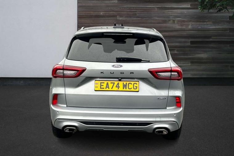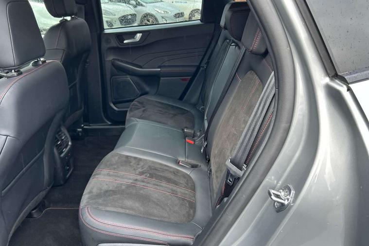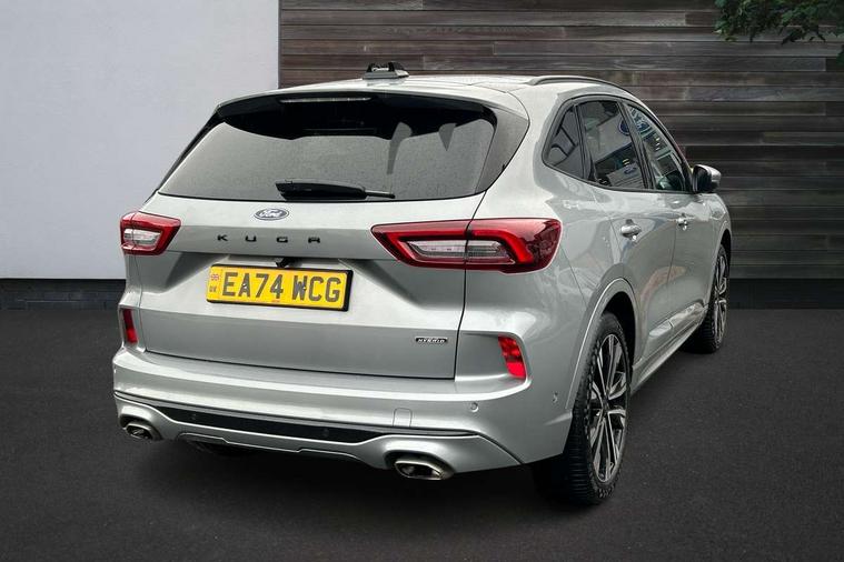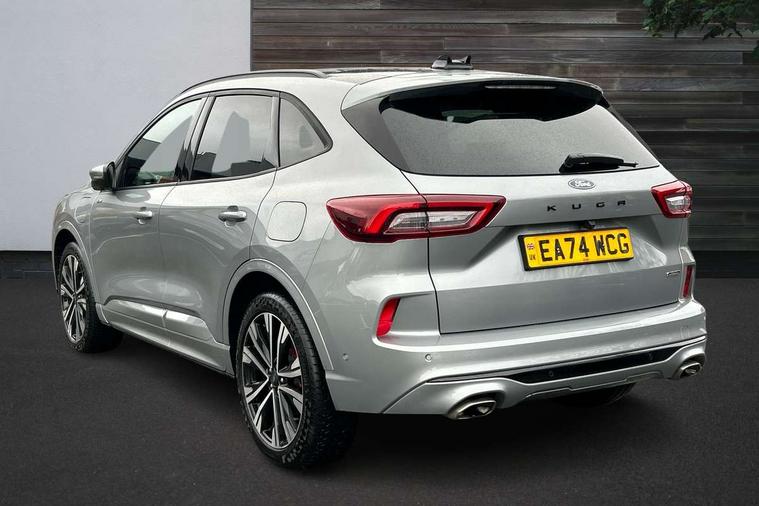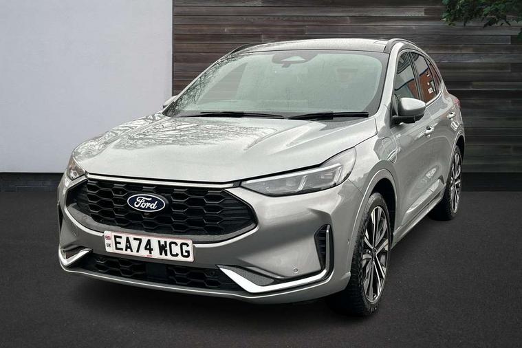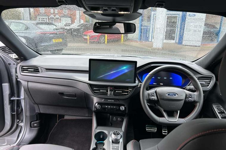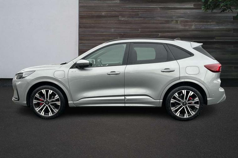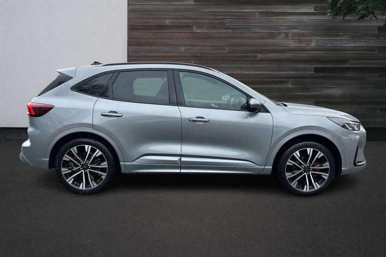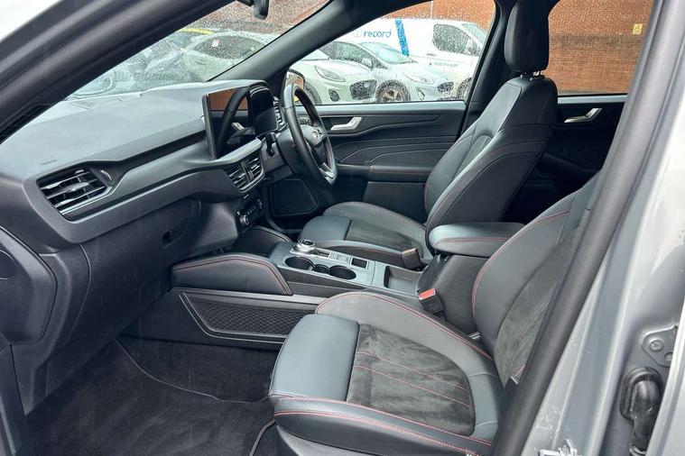 12.3" digital colour instrument cluster, 360 degree camera, e-Call (emergency call), Ford easy fuel, Ford SYNC 4 nav with 13" touchscreen, DAB radio, emergency assistance, andriod auto/apple carPlay, 5G modem & Ford pass connect, Front and rear parking sensors, Hands free power tailgate, Lane centering assist, Lane keeping aid with lane departure warning, Power assist steering, Selectable drive modes, Service interval indicator, 3-Pin Home charge cable (230V/16A Domestic socket), Sports suspension, Twist beam rear suspension, B&O premium audio system with 10 speakers, subwoofer and 2 USB ports, Auto headlamps with high and low beam, Black roof rails, Body colour bumpers, Front LED fog lamps, Large rear spoiler, LED daytime running lights, LED rear lights, Pop out door edge protectors, Power front/rear windows with global close, Power heated folding door mirrors with puddle lights, memory function and camera, Power opening panoramic roof, Quickclear heated windscreen, Rain sensing wipers, Rear privacy glass, Rear side wing doors, Rear wiper, ST-Line body styling kit, Third brake light, 12 way ergonomic power adjust driver's seat with memory (AGR certified), 12 way ergonomic power adjust passenger seat (AGR certified), 2nd row sliding seats, Electronic automatic temperature control (EATC), Front and rear head restraints, Partial premium touch sensico upholstery, Rear centre head restraint, Single front passenger seat, Sports seats, Driver assistance pack with intelligent adaptive cruise control - Kuga FHEV/PHEV, Winter pack - Kuga, 3x3 point rear seatbelts, Airbags - front driver/passenger, front and rear curtain, Drivers knee airbag, Dynamic brake support, Electronic stability control (ESC) and ABS, Evasive steering assist, Ford MyKey Gen 2 safety system, Manual child proof rear door locks, Pre collision assist with autonomous emergency braking, Rear seat Occupancy alert, Red brake calipers, Tyre pressure monitoring system, Engine immobiliser, Keyless entry and Ford power start button, Locking wheel nuts, Remote powered central double locking doors, Thatcham category 1 alarm,