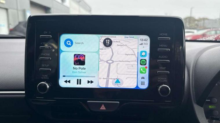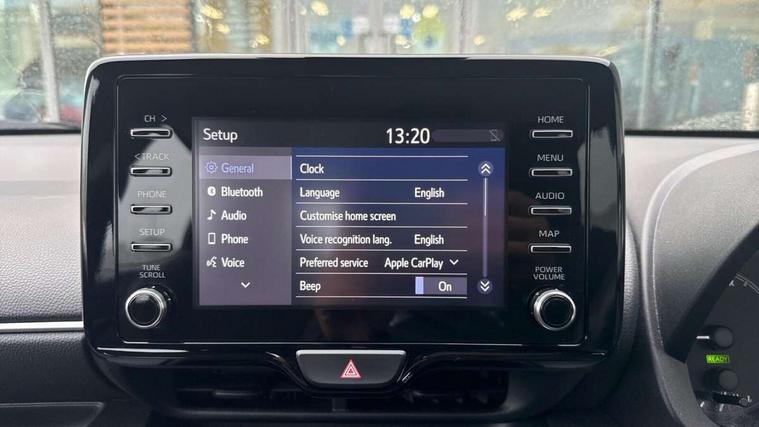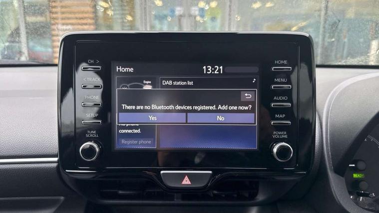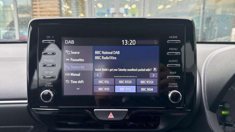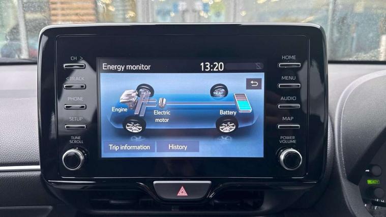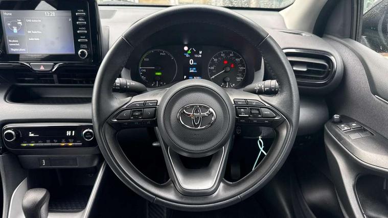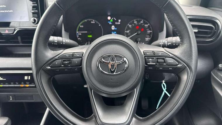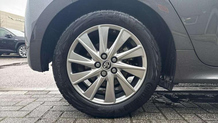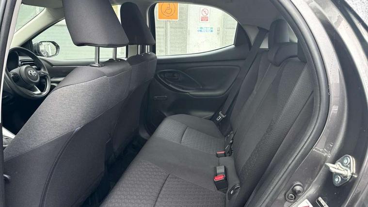 4.2" coloured TFT multi information display with analogue speedometer, Adaptive cruise control, Adjustable speed limit with speed warning, Bluetooth connectivity, E-call, Electric power steering, Hybrid energy display, Multi information display switches on steering wheel, Reversing camera, Smartphone integration with Apple CarPlay and Android auto, Tailgate, Voice recognition, Vehicle Stability Control (VSC), 4 speakers, 7" Multimedia display touch screen, Toyota Touch 2 with DAB, USB connection, Acoustic windscreen glass, Auto windscreen wipers, Automatic headlights, Body coloured door mirrors, Bulb indicators, Chequered front grille, Daytime running lights, Electric adjustable heated door mirrors, Follow me home headlights, Front auto power windows with anti jam protection, Halogen projector headlights, LED High mounted stop lamp, Manual headlight levelling, Rain sensor, Rear side wing doors, Rear spoiler, Rear wiper, Shark fin antenna, Turning signal integrated indicators in door mirrors, Variable front intermittent wipers, 3 adjustable rear headrests, 3 seat bench in 2nd row, 3 spoke leather steering wheel, 60/40 split folding rear seat, Active headrests, Adjustable boot height, Auto air conditioning, Coat hooks in rear grab handles, Cup holders (2 front & door), Data Communication Module (DCM) connected services, Fabric upholstery, Front armrest, Glovebox, Grey roof lining, Height adjustable driver's seat, Isofix seat fixing, Leather gearshift, Pollen filter, Shopping bag hooks, Single front passenger seat, Tilt/telescopic steering column, 3 point seatbelts on all rear seats, ABS+EBD+Brake assist, Electronic parking brake, Emergency brake light system (EBS), Front passenger airbag on/off switch, Front seatbelt reminder, Hill start assist control (HAC), Rear child proof door locks, Rear seat belt reminder, Supplemental Restraint System (SRS) 8 airbags: Driver & passenger's airbags, dual side curtain airbags, side impact airbags, front centre airbag, Toyota Safety Sense 2, Precollison + Night time Pedestrian & Cyclist Detection, Lane Trace Assist, Auto High Beam, Intelligent ACC & Road Sign Assist, Tyre pressure warning system, 2x Master key, Alarm/immobiliser, Remote powered central double locking doors, Soft touch instrument panel, Space saver spare wheel,