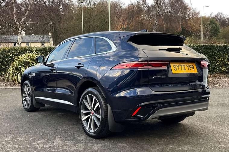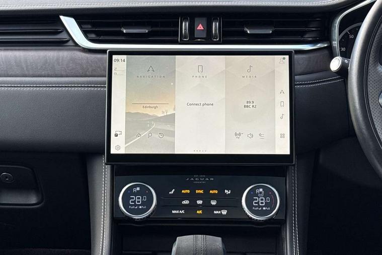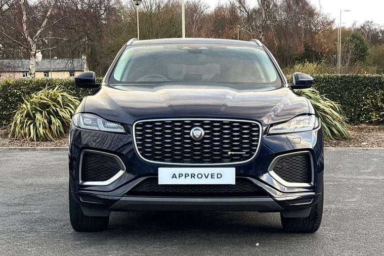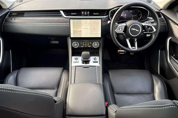 11.4" touchscreen, Adaptive cruise control with steering assist, Android Auto, Apple car play, Blind spot assist, Bluetooth connectivity, Clear exit monitor, Driver alert system, Driver condition monitor, eCall emergency call system, Eco driving style assistant, Electric power assisted steering, InControl remote, Jaguar Toggle shift selector, Lane departure warning system, Lane keep assist, Outside temperature gauge, Personalisation profile management, Pivi pro connected navigation system with app interface and media storage, Pro services and wifi hotspot, Push button starter, Rear collision monitor, Rear traffic monitor, Service interval indicator, Speed proportional steering, Start up sequence with movement in dials and lighting, Traffic sign recognition with adaptive speed limiter, Trip computer, Voice control system, 8 speed automatic transmission, Adaptive dynamics, All terrain progress control, All Wheel Drive (AWD), Configurable dynamics, Open differential with torque vectoring by braking, AM/FM radio, Bluetooth streaming, DAB Radio (Digital Audio Broadcasting), Dynamic volume control, InControl apps, InControl protect, iPod integration, 3 flash lane change indicators, Animated directional indicators, Approach Illumination, Auto dimming rear view mirror, Automatic headlights, Body colour door mirrors, Electric heated/power fold memory door mirrors with approach lights and auto dimming driver side, Electric windows with one touch open/close and anti trap, F-Pace and R Dynamic badge, Green tinted glass, Heated front windscreen + heated washer jets, Heated rear window with timer, Illuminated metal tread plates with Jaguar script, Jaguar script and leaper, LED High level third brake light, LED tail lights, Metal load space scuff plates, Non acoustic front windscreen, R Dynamic badge on side door, Rain sensor windscreen wipers, Rear fog lights, Rear metal tread plates, Rear side wing doors, Rear wiper, Trailer stability assist, Variable front intermittent wipers, 12V power point front, 3 rear headrests, 3 seat bench in 2nd row, Air distribution speed, Bright metal foot pedals, Centre armrest console, Centre console with side storage, Deletion loadspace storage rails, Door sill tread plates, Electrically adjustable steering column, Fold flat front seats, Front centre armrest with storage compartment, Front door storage space, Glovebox finisher with jaguar script, Heated steering wheel, Hooks in loadspace, Illuminated glovebox, Interior front door handles with separate locking switches, ISOFIX on outer rear seats, Jaguar sense, Luggage tie downs in loadspace, Mist sensing, Multifunction steering wheel, Overhead lighting console, Overhead stowage for sunglasses, Passive front head restraints, Premium cabin lighting, Premium carpet mats, R-Dynamic branded leather steering wheel, Rear air vents, Rear armrest with twin cupholders, Rear centre headrest, Rear door storage space, Reversible boot floor, Satin chrome gearshift paddles, Shopping bag hook, Single front passenger seat, Sunvisors with illuminated vanity mirrors, Twin front cupholders with cover, Online Pack with data plan - F-Pace, 355mm front brakes and 325mm rear brakes, 3x3 point rear seatbelts, ABS, All surface progress control (ASPC), Brake pad warning light, DSC - Dynamic Stability Control, Electric parking brake (EPB), Emergency brake assist, Front airbags with passenger seat occupant detector, Front and rear seatbelt reminder, Front side airbags, Full length side window curtain airbag, Hill launch assist, Power operated child locks, Torque vectoring brake, Traction control, Tyre pressure monitoring system, Immobiliser, Keyless entry, Keyless Start, Locking wheel nuts, Perimeter alarm, Remote central locking, Valet mode,