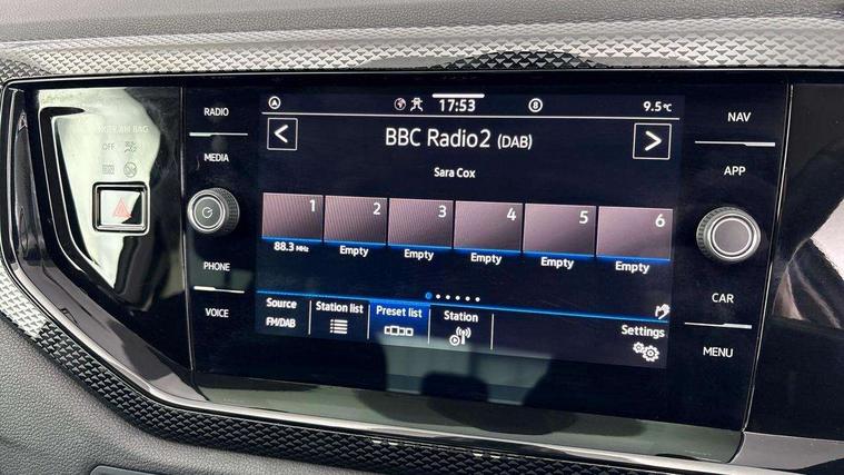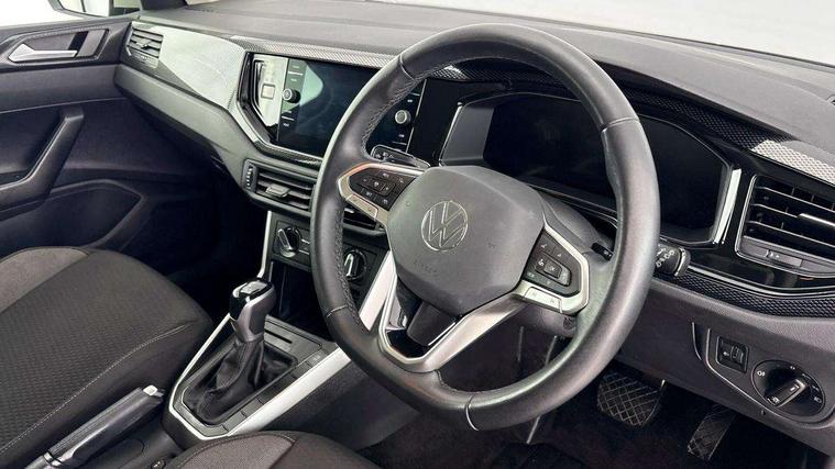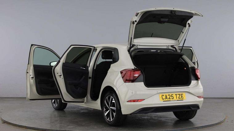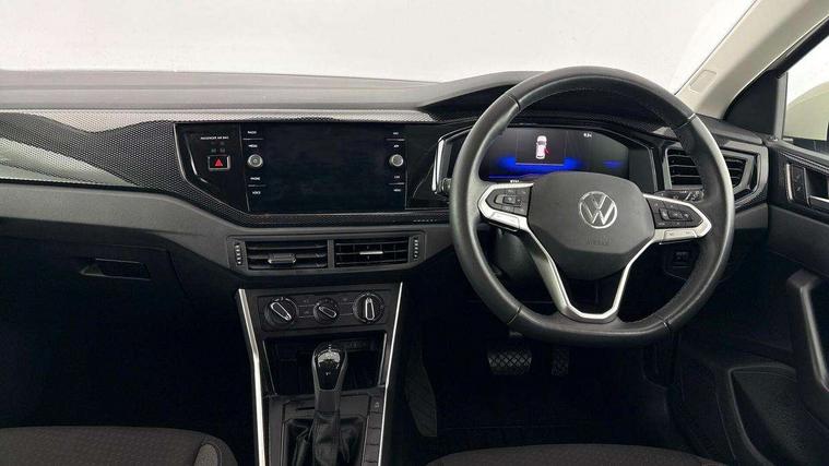 Advanced driver attention and drowsiness monitor, Bluetooth mobile phone interface, Dynamic road sign display, Emergency call service, Multifunction front facing camera for distance control, Park distance control, Power assisted speed sensitive steering, Predictive adaptive cruise control without follow-to-stop and speed limiter, Preparation for navigation system with media and internet package, Preparation for We connect and We connect plus, Rear view camera, Speedo and rev counter, electronic odometer, trip, service interval display and exterior temperature gauge, Standard rear axle, Travel Assist - Lane keeping system and traffic jam assist, Travel assist including emergency assist, Trip computer, Warning signal and warning light for front and rear seatbelts not fastened, Washer fluid level indicator, Wireless app connect, Front wheel drive, Rear shock absorpion, Start-stop system with battery regeneration (recuperation - energy recovery during braking), DAB Digital radio, Diversity antenna for FM reception, Front and rear 6 speakers, Automatic dimming interior rear view mirror, Automatic headlight control with LED separate daytime running lights with coming/leaving home function, Body colour bumpers with chrome inserts, Body colour door handles, Body colour door mirrors, Electric front windows, Engine badge deletion, Headlight range adjustment, Heat insulating and laminated safety glass windshield, LED Headlights, LED rear combination lamps, Power folding adjustable/heated exterior mirrors and front passenger exterior mirror lowering function, Rain sensor, Rear electric windows, Rear fog light, Rear side wing doors, Rear tinted glass from B-pillar backwards approx 65% tinted, Rear windscreen washer and wiper with interval delay, Third brake light, 12V power socket in centre console, 2 front and 2 rear reading lights with switch off delay and dimmer, 2 USB-C ports in the front, 2 USB-C charging sockets on the center console in the rear, 3 rear head restraints, 60/40 split folding rear seat and rear seat bench not split, Ceramique roof lining, Chrome plated radiator grille inserts, air vent surrounds and light switch surrounds, Door and side trim panel, Driver and front passenger seat height adjustment, Driver/passenger sunvisors with illuminated vanity mirrors, Front centre armrest, Front seat backrest storage pockets, Front standard seats, Handbrake lever handle in leather, Hartley/Thomas cloth upholstery, Headliner in recycled material, Isofix child seat preparation easy-fit (for two outer rear seats, and front passenger seat) compatible with I-size, Leather trimmed gear knob, Luggage compartment cover, Luggage compartment lighting, Removable luggage compartment floor, Single front passenger seat, Standard climatic zones, Standard pedal cluster, Three spoke leather wrapped multifunction steering wheel with shifting paddles, Light and vision pack - Polo, 3 point height adj front seatbelts + pretensioners, 3 point seat belt for centre rear seat, 3 point seatbelts, outer rear with ECE lable, ABS, Driver and front passenger airbag with front passenger airbag deactivation, Drivers and front passengers safety optimised head restraints, ESC (Electronic stability control) + EDL (Electronic Differntial lock) and ASR (Traction control), Extended and predictive pedestrian/ cyclist protection, Front assist with autonomous emergency braking (for Adaptive Cruise Control ACC up to 130 mph), Front curtain and side airbags with center airbag, Front disc brakes, Hill hold control, Manual child lock in rear doors, Rear drum brakes, Single tone horn, Tyre pressure loss indicator, Alarm with interior protection, Anti-theft alarm system with interior monitoring, backup horn, and towing protection, Anti-theft wheel bolts, Electronic engine immobiliser, Lava stone black gloss/matt decorative inserts in dash and front door panels, 16" Torsby alloy wheels, Low rolling resistance tyres,