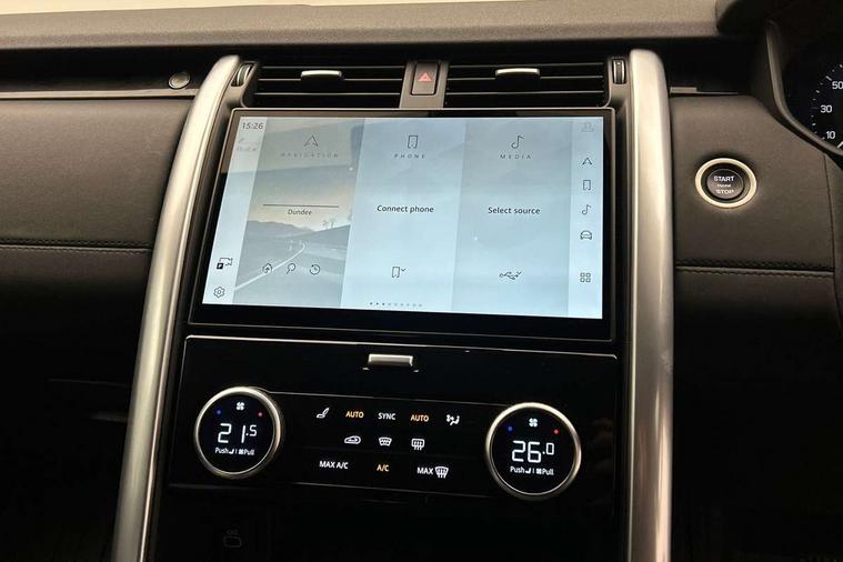 11.4" touchscreen, 3D surround camera, Adaptive cruise control, Blind spot assist, Driver condition monitor, Electric power assisted steering (EPAS), Front and rear parking aids, Interactive Driver display, Lane keep assist, Pivi pro connected, Power inner tailgate, Powered tailgate/boot lid, Rear collision monitor, Rear traffic monitor, Remote, Remote boot release, Speed proportional steering, Sport shift selector, Traffic sign recognition adaptive speed limiter, Trip computer, Tyre pressure monitor, Wade Sensing, Android Auto, Apple CarPlay, Digital Audio Broadcast radio-DAB, Dynamic volume control, Front and rear 12V with front USB incl. USB C in centre console, USB C in central stowage, USB A and C in UIP, 2 USB C, 1 USB A in R2 and 2 USB in R3, Acoustic laminated windscreen, Animated directional indicators, Auto dimming rear view mirror, Auto High Beam Assist, Automatic headlight levelling, Centre high mounted stop light, D300 badge, Electric heated/power fold memory door mirrors with approach lights and auto dimming driver side, Electric windows with one touch open/close and anti-trap, Heated rear window, Heated windscreen, LED tail lights, Obscured row 2 and row 3 windows, Premium LED headlights with signature DRL, Privacy glass, Puddle lights, Rain sensitive windscreen wipers, Rear fog lights, Rear wash wiper, Treadplates with metal inserts, Variable intermittent wiper, 18 way heated electric grained leather memory front seats with captains armrest + manual height adjust headrest + 4way power lumbar support, Central hinged twin lidded storage, Electric adjustable steering column, First and second row door bins, Fixed bulkhead behind row1, Footwell lights, Front passenger seat ISOFIX points, Glovebox storage, High sided rubber mats, In-facia storage, Loadspace cover, Loadspace hooks, Loadspace light, Loadspace rubber mat, Lockable glove box, Lower centre console storage, Luggage tie downs in loadspace, Multi function steering wheel, Overhead lighting console, Premium Non-Leather steering wheel, Shopping bag hook, Third row storage, Twin front cupholders with cover, Two zone climate control, Under floor stowage, Online pack with data plan - Discovery, Customer configurable autolock, Electronic traction control, Emergency braking, Front side airbags, Power operated child locks, Seat belt reminder, Immobiliser, Intrusion sensor, Keyless entry system, Locking wheel nuts, Perimeter and volumetric alarm, Remote central locking, 12V power sockets, ABS and EBA, Adaptive dynamics, Brake pre-fill technology, CBC - (Cornering brake control), Dynamic stability control, Electronic air suspension, Electronic brake force distribution (EBD), Front axle open differential, Gradient acceleration control, Hill Descent Control, Hill launch assist, Particulate filter (DPF), Push button start, Roll stability control, Torque vectoring brake, Trailer stability assist, All terrain tyres,