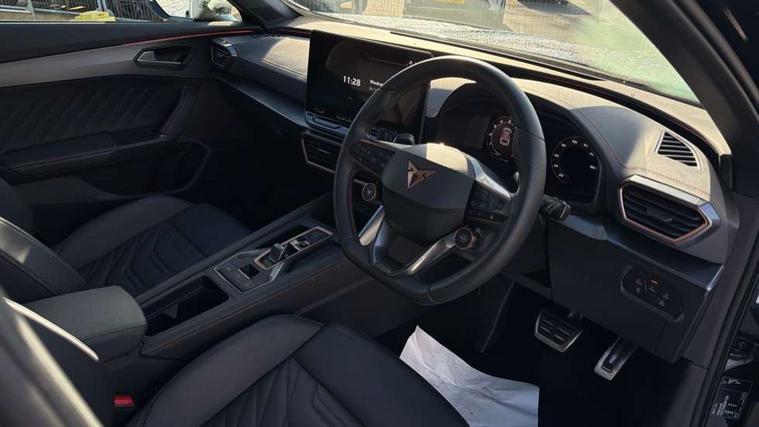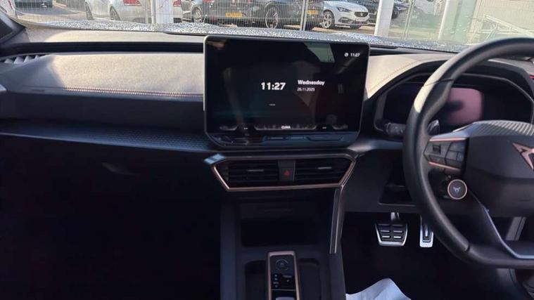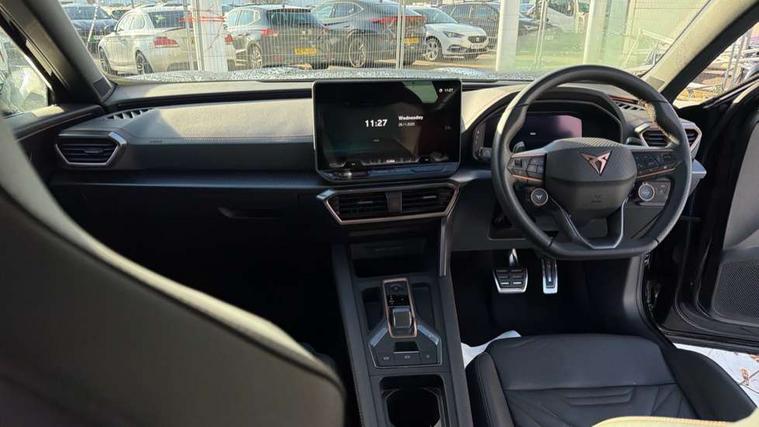 10.25" digital cockpit and configurable dashboard, Adaptive cruise control with follow-to-stop and speed limiter, Advanced driver alert system, Advanced lane assist with semi-automatic vehicle control in a medical emergency and traffic jam assist, Dynamic chassis control with driving profile selection (Comfort, Sport, CUPRA, Individual), Dynamic road sign display, Emergency steering support with turn assist, Forward collision warning with automatic braking, Full link phone integration, Intelligent park assist, RPM, trip computer, outside temp gauge, instrument light brightness, low fuel warning light, lights on reminder, gearshift indicator, Service interval indicator, Side and exit assist, Speed sensitive power steering, Start/stop system with regenerative braking, Top view camera, Virtual pedal and electric tailgate, Voice control system, Wired Android Auto, Wireless apple carplay, Wireless phone charger, Adaptive chassis control with continuous operation, CUPRA sport suspension, Electronic locking differential and dynamic traction support, 2 front and 2 rear USB type C sockets, Media system with navigation, 12.9" touchscreen display, voice control, DAB, steering wheel mounted controls, Auto dimming rear view mirror, Body colour door handles, Body coloured bumpers, Dark grey wing mirror, Daytime running light with automatic headlight control and coming home feature, Door panel ambient lighting, Dynamic headlight range control, Electric front/rear windows, Electrically adjustable heated and folding door mirrors with memory function, Gloss black roof rails and window surrounds, High beam assist, LED 3rd brake light, LED front fog lamps with cornering function, LED Taillights with dynamic indicator, Matrix LED headlights with multifunction camera, Rain sensing wipers, Rear diffuser with twin exhaust pipe on each side, Rear fog lights, Rear side wing doors, Rear wash/wipe, Tinted rear windows, Welcome lights (within exterior mirror housing), 12V socket, 2 front and 2 rear reading lights, 3 seat bench in 2nd row, 60/40 split rear bench seat with armrest and mechanical seat release, Black headlining, Black interior roof lining, Cupra sports pedals, Dust/pollen filter, Electrically adjustable front seats with lumbar support and memory function, Front and rear head restraints, Front centre armrest, Heated front seats, Heated supersports multifunction leather steering wheel with satellite buttons and gear shift paddles, Height/reach adjust steering wheel, Illuminated aluminium doorsteps, Illuminated interior front door sills, Illuminated sunvisor with mirror, Isofix, Leather dashboard, door insert and side trim panel, LED smart wraparound lighting, PVC/Leather upholstery, Satellite steering wheel, Single front passenger seat, Storage pockets on rear of front seats, Three zone climate control with control panel in rear, Variable luggage/load compartment floor, 3 point seatbelts on all rear seats, ABS, Brake control system - ESC and brake booster, Child proof door locks, Driver and front passenger airbags with front passenger airbag de-activation, Electronic parking brake, Front and rear disc brakes, Front side curtain airbags, Hill hold control, Pre-crash front and rear seat belt tensioner, window closure and hazard lights, Public e-call, Seat belt reminder for front and rear seats, Tyre pressure monitoring system, Anti theft alarm system, KESSY Advanced - Keyless start, keyless entry with SAFELOCK, Locking wheel bolts, Copper and aluminium interior detailing, 19" Artic machined sport black and silver alloy wheels, Breakdown and tool kit,