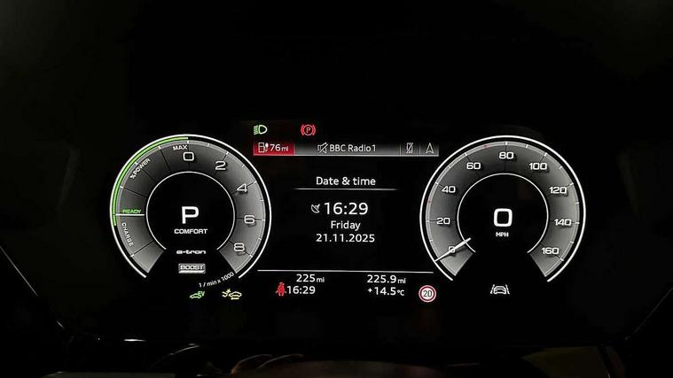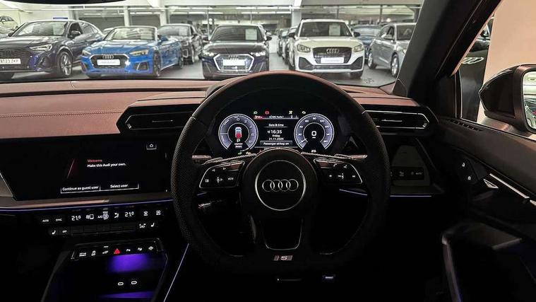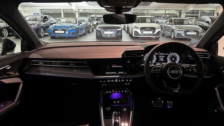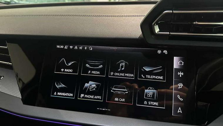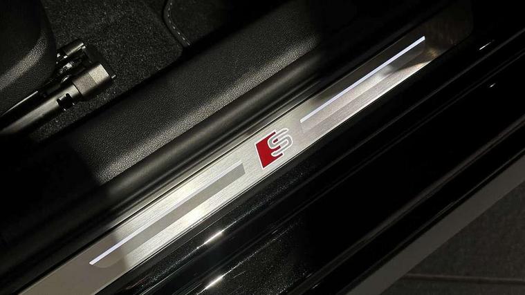 Adjustable speed limiter, Audi drive select, Audi smartphone interface with app store includes wireless Apple carplay, Android auto and Amazon alexa integration, Audi virtual cockpit plus - 12.3" full HD resolution dynamic digital instrument cluster, Automatic start/stop system with recuperation, Bluetooth interface, Camera based traffic sign recognition, Collision avoidance assistant, Cruise control, Distraction and Fatigue warning, e-Call (emergency call), Electromechanical power speed sensitive steering, Emergency assist, Lane departure warning system, MMI Navigation Plus with high resolution 10.1" colour touch screen display, Park Assist with parking system Plus, Service indicator, Trip computer, Voice control system with natural language interaction, 3 pin 10 amp domestic charging cable, CCS socket for DC charging, Charging cable for public charging, mode 3 (type 2), 32 A, Compact charging system, Industrial connector CEE 32 A, 230 V, length 1.6 m, Standard suspension, Type 2 socket for AC charging, Audi Phonebox light with wireless charging, Audi sound system - 10 loudspeakers including centre loudspeaker and subwoofer, DAB Digital radio, USB ports with charging function in the rear, Acoustic glass windscreen, All weather light, Aluminium window trim, Auto dimming frameless rear view mirror, Automatic dynamic range control, Body colour exterior mirrors, Chrome exhaust tailpipes, Dipped beam, main beam, position light and turning light, Electrically adjustable/heated/folding/auto dimming door mirrors with integrated LED indications + kerb view function for passenger side, Exterior model badging, Front and rear side air inlets in grained matt black with dark liquid chrome frame, Front electric windows, Front radiator grill in high gloss dark chrome, Heat insulating glass windscreen, Illuminated door sills with aluminium inserts at the front with S logo, Intersection light, LED 3rd brake light, LED brake lights, LED daytime running x3, LED headlights with LED rear lights and dynamic rear indicators, LED rear number plate lights, LED reverse light, LED tail lights, Light and rain sensors, Manoeuvring light, Motorway light, Privacy glass - dark tinted rear window, rear door and side windows, Rear diffuser and grill in grained matt black with inlay in dark liquid chrome, Rear electric windows, Rear side wing doors, Rear wiper, S line bumpers, S roof spoiler, Side S line emblems on front wings, Side sill trim in dark liquid chrome, Static cornering light, 12V socket and storage compartment in front centre console, 3 seat bench in 2nd row, 3 spoke flat bottomed leather multifunction sport steering wheel with gear shift paddles, 3-zone deluxe automatic air conditioning, 4 way electrically adjustable lumbar support for driver and front passenger, 40/20/40 split folding rear seat bench, Black cloth headlining, Black front and rear floor mats, Convenience auxiliary air conditioning, Front and rear centre armrest in artificial leather with contrasting stitching on armrests and instrument panel, Front and rear headrests, Heated front seats, Height and reach adjustable steering wheel, Manual boot compartment lid, Manually adjustable front seats, Rear centre armrest with cupholder, S badging on the steering wheel, Seat side bolsters, Single front passenger seat, Stainless steel pedals and front footrest in black, Twin leather upholstery with front sports seats S embossed logo, Aluminium interior elements pack - A3, Multi-coloured LED interior lighting package with Multi-coloured contour lighting of instrument panel - A3, 3x3 point rear seat belts, Acoustic vehicle alerting system, Driver and front passenger airbag with passenger airbag deactivation, Electronic Stabilisation Control (ESC) including ABS, ASR and EDL, First aid kit with warning triangle and 2 safety vests, Front side airbags with head airbags and interaction airbag, Hill hold assist, Pre-sense front with pedestrian and cyclist detection, Seatbelt monitoring, Tyre pressure loss indicator, Anti theft alarm, Anti-theft wheel bolts, Electronically operated child locks, Immobiliser, Remote central locking with safelock, Black dashboard, Inlay in dark aluminium spectrum, Tyre repair kit,