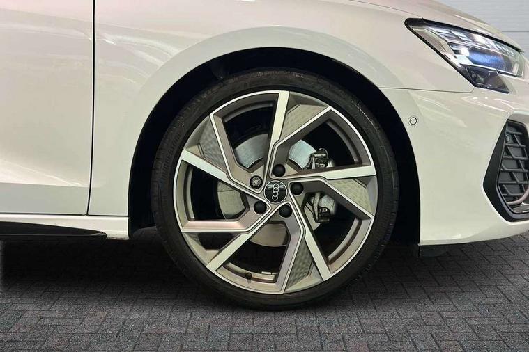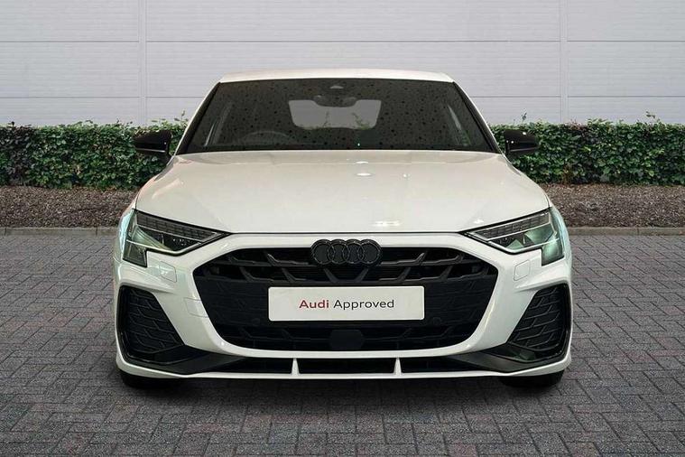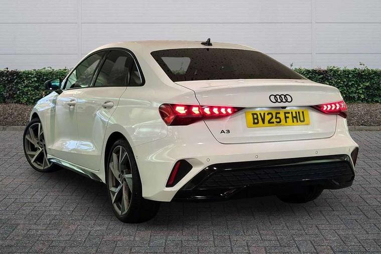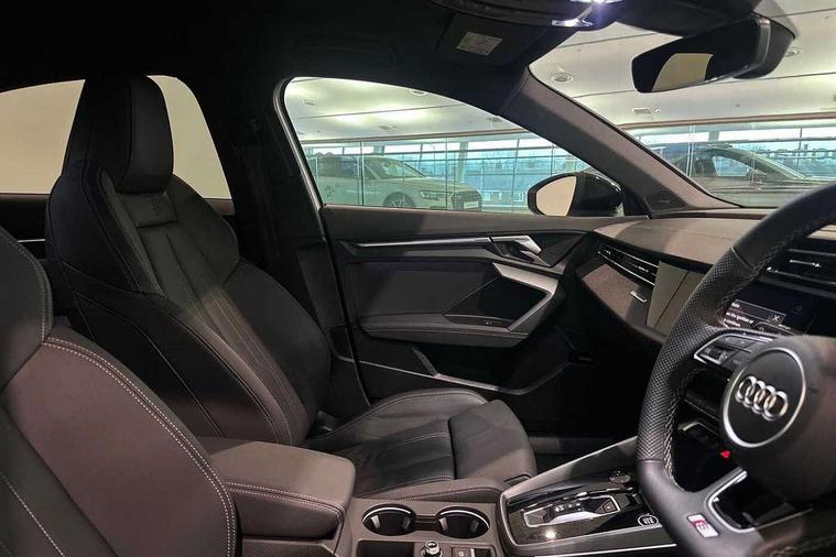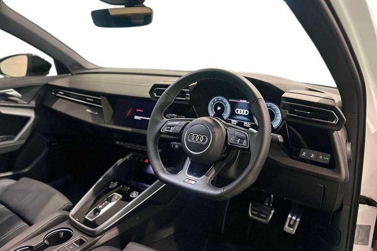 Adjustable speed limiter, Audi drive select, Audi smartphone interface with app store includes wireless Apple carplay, Android auto and Amazon alexa integration, Audi virtual cockpit plus - 12.3" full HD resolution dynamic digital instrument cluster, Automatic start/stop system with recuperation, Bluetooth interface, Camera based traffic sign recognition, Collision avoidance assistant, Cruise control, Distraction and Fatigue warning, e-Call (emergency call), Electromechanical power speed sensitive steering, Lane departure warning system, MMI Navigation Plus with high resolution 10.1" colour touch screen display, Park Assist with parking system Plus, Service indicator, Trip computer, Voice control system with natural language interaction, Sports suspension, Audi Phonebox light with wireless charging, Audi sound system - 10 loudspeakers including centre loudspeaker and subwoofer, DAB Digital radio, USB ports with charging function in the rear, Acoustic glass windscreen, Anthracite grey Audi rings (front and rear), Audi beam uses LEDs to project the Audi logo onto the ground as you exit your A3, Auto dimming frameless rear view mirror, Black accents front and rear bumpers, Black accents in the area of the Audi single frame grille, Black accents window trims strips, Electrically adjustable/heated/folding/auto dimming door mirrors with integrated LED indications + kerb view function for passenger side, Exterior model badging, Front electric windows, Heat insulating glass windscreen, Illuminated door sills with aluminium inserts at the front with S logo, LED 3rd brake light, LED daytime running lights, LED headlights with LED rear lights and dynamic rear indicators, Light and rain sensors, Privacy glass - dark tinted rear window, rear door and side windows, Rear boot, Rear electric windows, Rear side wing doors, 12V socket and storage compartment in front centre console, 3 seat bench in 2nd row, 3 spoke flat bottomed leather multifunction sport steering wheel with gear shift paddles, 3-zone deluxe automatic air conditioning, 4 way electrically adjustable lumbar support for driver and front passenger, 40/20/40 split folding rear seat bench, Black cloth headlining, Front and rear centre armrest in artificial leather, Front and rear centre armrest in artificial leather with contrasting stitching on armrests and instrument panel, Front and rear headrests, Front/rear floor mats, Heated front seats, Height and reach adjustable steering wheel, Manual boot compartment lid, Manually adjustable front seats, Rear cup holders, S badging on the steering wheel, Seat side bolsters, Single front passenger seat, Stainless steel pedals and front footrest in black, Twin leather upholstery with front sports seats S embossed logo, Aluminium interior elements pack - A3, Multi-coloured LED interior lighting package - A3 Black Edition, 3x3 point rear seat belts, Driver and front passenger airbag with passenger airbag deactivation, Electronic Stabilisation Control (ESC) including ABS, ASR and EDL, First aid kit with warning triangle and 2 safety vests, Front side airbags with head airbags and interaction airbag, Hill hold assist, Pre-sense front with pedestrian and cyclist detection, Seatbelt monitoring, Tyre pressure loss indicator, Anti theft alarm, Anti-theft wheel bolts, Electronically operated child locks, Immobiliser, Remote central locking with safelock, Inlays in black Impressum woven textile,