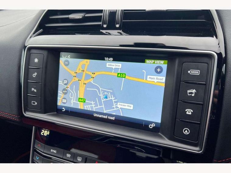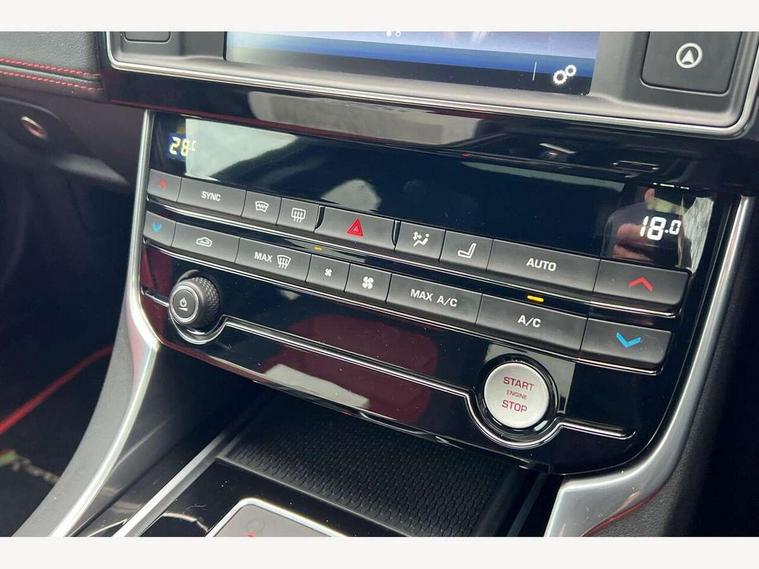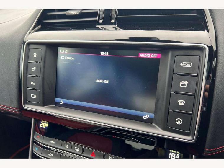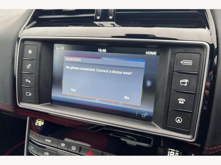 Bluetooth telephone connectivity, InControl remote, Jaguar Voice front, Lane departure warning system, Navigation system with HDD mapping, RDS/TMC + DVD player, Outside temperature gauge, Rear parking sensor, Service interval indicator, Servotronic PAS, Traffic sign recognition, Trip computer, Sports suspension, Auxiliary input socket, Bluetooth audio streaming, DAB digital radio module, Dynamic volume control, InControl app, InControl protect, Radio, Steering wheel mounted controls, USB/iPod connection, Approach lamps, Auto dimming rear view mirror, Automatic headlights, Body colour bumpers, Body colour door mirrors, Body coloured side sills, Electric front/rear windows with one touch/auto up/down, Green tinted heat insulating glass, Hazard warning lamps, Headlight washers, Heated rear windscreen, LED rear lights, Rain sensor windscreen wipers, Rear spoiler, 12V power point front/rear, 3 rear seat head restraints, Auxiliary heater, Door sill tread plates, Dual zone automatic climate control, Front centre armrest with storage compartment, Front storage compartment, Isofix child seat preparation, Jaguar sense, JaguarDrive selector, Jet headlining, Leather steering wheel, Lockable glovebox, Luggage tie-down hooks, Morzine headlining, Multifunction sports steering wheel, Overhead console with sunglasses holder, Perforated taurus sports leather upholstery, Rear air vents, Rear armrest with cupholder, Rear storage compartment, Shopping hook in boot, Storage compartment in front doors, Storage compartment in rear doors, Twin front cupholders, ABS, Anti-whiplash front headrests, Brake pad warning light, Driver/Front Passenger airbags, DSC - Dynamic Stability Control, Electronic parking brake, Emergency brake assist, Front and rear seatbelt reminder, Front passenger seat occupancy sensor, Hill start assist, Power child locks, Side airbags, Side curtain airbags, Three 3 point rear seatbelts, Torque vectoring brake, Traction control, Tyre pressure monitoring system, Driver's central locking switch, Immobiliser, Locking wheel nuts, Perimeter alarm, Remote central locking, Knurled Aluminium IP Finisher, Leather dashboard,