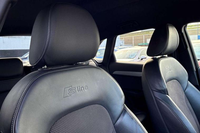 6.5" colour display screen, Audi drive select, Cruise control, Low washer fluid indicator, MMI - Multi Media Interface control system, On board computer, PAS, Remote electric boot opening/closing, Service interval indicator, Voice control system, Diesel particulate filter, Audi music interface, DAB digital radio module, Acoustic windscreen, Aluminium window surround, Auto dimming rear view mirror, Body colour door mirrors, Body coloured bumpers, Chrome exhaust tailpipe, Chrome fog light surround, Chrome grille, Coming home function, Door mirror integrated indicators, Front and rear electric windows, Front fog lights, Heated windscreen washer jets, High beam assist, LED daytime running lights, LED headlights with headlight washers, Light and rain sensor for auto activation of lights and windscreen wipers, Loading sill protector in stainless steel, Privacy glass, Rear wiper, S Line body styling, Sunband for windscreen, Towbar preparation, 12V socket in rear centre console, 3 spoke multi-function Q design steering wheel with paddle shift, Aluminium door sill trims, Black cloth headlining, Dual zone climate control, Electric front lumbar adjustment, Front and rear headrests, Front and rear velour floor mats, Front centre armrest with storage compartment and angle adjustment, Front sports seats, Height/reach adjust steering wheel, ISOFIX on front passenger and rear outer seats, Jack and tool kit, Perforated leather gearknob, Retractable luggage cover, Split fold rear seat, Under floor storage in luggage area, 3x3 point rear seatbelts, ABS+Electronic Brake force Distribution, Curtain airbags, Driver and passenger airbags, Driver and passenger side airbags, EDL + ASR, Electrically operated child locks on rear doors, Electromechanical parking brake, ESP, First aid kit, Front passenger airbag deactivation, Seatbelt warning light, Tyre pressure monitoring system, Warning triangle, Locking wheel bolts, Remote central locking, Thatcham category 1 alarm + immobiliser, Matt brushed aluminium fascia and door trim inlays,