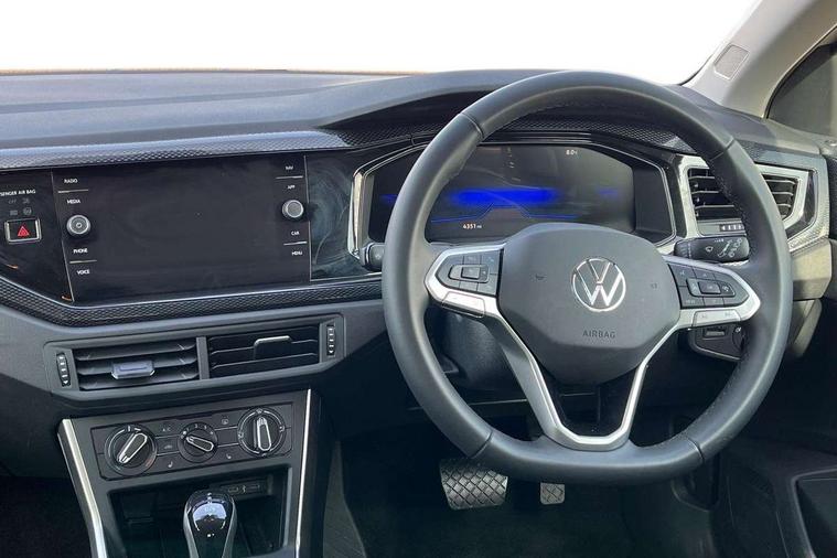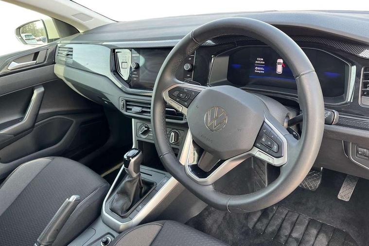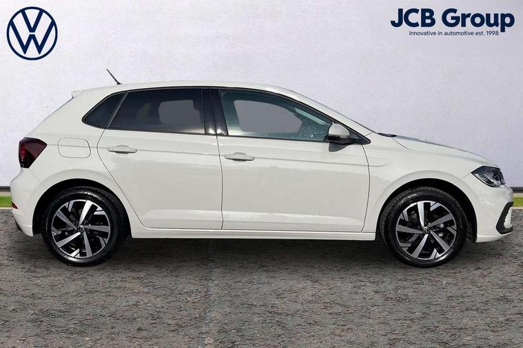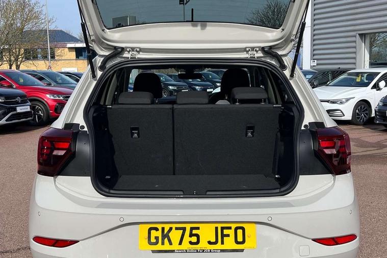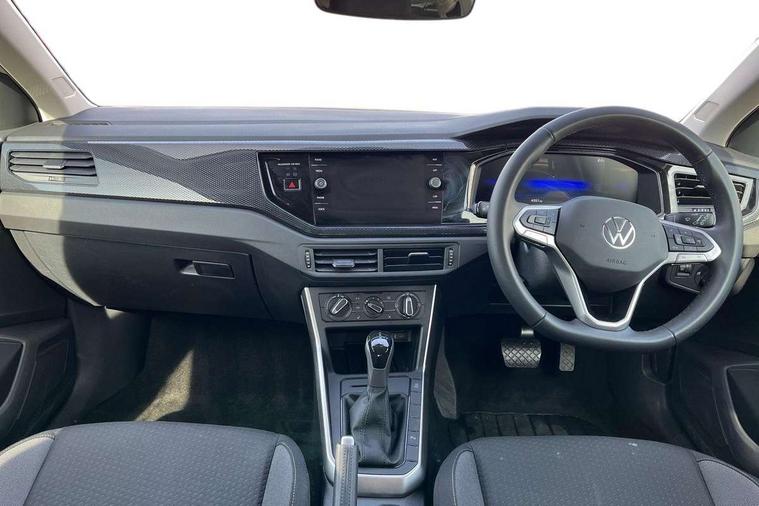 Advanced driver attention and drowsiness monitor, Bluetooth mobile phone interface, Dynamic road sign display, Emergency call service, Mobile phone preparation with inductive charging function, Multifunction front facing camera for distance control, Power assisted speed sensitive steering, Predictive adaptive cruise control without follow-to-stop and speed limiter, Preparation for navigation system with media and internet package, Preparation for We connect and We connect plus, Rear view camera, Speedo and rev counter, electronic odometer, trip, service interval display and exterior temperature gauge, Standard rear axle, Travel Assist - Lane keeping system and traffic jam assist, Travel assist including emergency assist, Trip computer, Warning signal and warning light for front and rear seatbelts not fastened, Washer fluid level indicator, Wireless app connect, Front wheel drive, Rear shock absorpion, Start-stop system with battery regeneration (recuperation - energy recovery during braking), DAB Digital radio, Diversity antenna for FM reception, Automatic dimming interior rear view mirror, Automatic headlight control with LED separate daytime running lights with coming/leaving home function, Body colour bumpers with chrome inserts, Body colour door handles, Body colour door mirrors, Electric front windows, Engine badge deletion, Headlight range adjustment, Heat insulating and laminated safety glass windshield, LED Headlights, LED rear combination lamps, Power folding adjustable/heated exterior mirrors and front passenger exterior mirror lowering function, Rain sensor, Rear electric windows, Rear fog light, Rear side wing doors, Rear tinted glass from B-pillar backwards approx 65% tinted, Rear windscreen washer and wiper with interval delay, Third brake light, 12V power socket in centre console, 2 front and 2 rear reading lights with switch off delay and dimmer, 2 USB-C ports in the front, 2 USB-C charging sockets on the center console in the rear, 3 rear head restraints, 60/40 split folding rear seat and rear seat bench not split, Ceramique roof lining, Chrome plated radiator grille inserts, air vent surrounds and light switch surrounds, Door and side trim panel, Driver and front passenger seat height adjustment, Driver/passenger sunvisors with illuminated vanity mirrors, Front centre armrest, Front seat backrest storage pockets, Front standard seats, Handbrake lever handle in leather, Hartley/Thomas cloth upholstery, Headliner in recycled material, Isofix child seat preparation easy-fit (for two outer rear seats, and front passenger seat) compatible with I-size, Leather trimmed gear knob, Luggage compartment cover, Luggage compartment lighting, Removable luggage compartment floor, Single front passenger seat, Standard climatic zones, Standard pedal cluster, Three spoke leather wrapped multifunction steering wheel with shifting paddles, Light and vision pack - Polo, 3 point height adj front seatbelts + pretensioners, 3 point seat belt for centre rear seat, 3 point seatbelts, outer rear with ECE lable, ABS, Driver and front passenger airbag with front passenger airbag deactivation, Drivers and front passengers safety optimised head restraints, ESC (Electronic stability control) + EDL (Electronic Differntial lock) and ASR (Traction control), Extended and predictive pedestrian/ cyclist protection, Front assist with autonomous emergency braking (for Adaptive Cruise Control ACC up to 130 mph), Front curtain and side airbags with center airbag, Front disc brakes, Hill hold control, Manual child lock in rear doors, Rear drum brakes, Single tone horn, Tyre pressure loss indicator, Alarm with interior protection, Anti-theft alarm system with interior monitoring, backup horn, and towing protection, Anti-theft wheel bolts, Electronic engine immobiliser, Lava stone black gloss/matt decorative inserts in dash and front door panels, 16" Torsby alloy wheels, Low rolling resistance tyres,