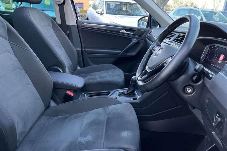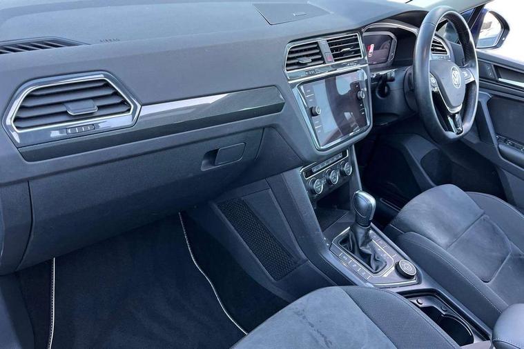 Active information display, Adaptive cruise control, App-Connect, Bluetooth phone integration system, Car-Net Security and Service, Coasting function, Distance control assist, Drive mode selector, Driver profile selection, Fatigue detection system, Front assist, radar sensor controlled distance monitor, city emergency braking + predictive pedestrian protection, Instrument cluster, Lane assist, Low washer fluid warning light, Outside temperature display, Service interval indicator, Speed limiter, Start/Stop function, Warning lights, Misfuel prevention device for diesel engine, XDS electronic differential lock, 2x USB sockets in front, 4 X 20 watt output, DAB Digital radio, SD card slot, Simultaneous pairing of 2 compatible mobile devices, SMS functionality - read, compose and send SMS messages using touch-screen display, Title and cover art display, 3D effect cherry red LED rear tail lights, Auto dimming interior mirror, Automatic activation of hazard warning lights, Black door protector with chrome inserts, Body colour door handles, Body colour door mirrors, Body coloured bumpers, Chrome side body trim, Chrome side window surrounds, Chrome trimmed radiator grille, Coming/leaving home lighting function, Dusk sensor + auto driving lights, Electric folding door mirrors, Electric heated + adjustable door mirrors, Electric panoramic sunroof with sunblind, Front air intake with chrome strip, Front and rear electric windows, Heated rear window, High level 3rd brake light, LED headlights with dynamic light assist daytime running lights and cornering front fog lights, LED rear number plate lights, Rain sensor windscreen wipers, Rear tinted glass from B-pillar backwards approx 65% tinted, Rear windscreen washer and wiper with interval delay, Side door sills with chrome inserts, Side skirts and rear bumper with chrome insert, Silver rear diffuser trim, Silver roof rails, Silver under body guard, Windscreen wipers/ intermittent wipe + 4 position delay, 12V Accessory socket in centre console, 3 rear headrests, 3 zone climate control, 4 load lashing points, 40:20:40 split folding rear seats, Bag hook in luggage compartment, Foldable passenger seatback, Front + rear carpet mats, Front centre armrest with 12v socket, Front centre armrest with storage + rear 2 air vents + cupholders, Front seat back storage pockets, Front seatback folding tables, Height/reach adjust steering wheel, Illuminated driver/passenger vanity mirrors, Illuminated scuff plates, Instrument lighting white adjustable panel illumination, Interior light with delay, Isofix Preparation 2 Rear child seats, Leather gear knob, Load through provision with 2 cupholders when folded, Lockable cooled glovebox, Luggage compartment lighting, Luggage compartment side storage, Map pockets on front seats, Passenger seat height adjuster, Passenger underseat drawer, Rear cupholders, Removable luggage cover, Sliding/reclining rear seats, Storage compartment in driver's door, Storage compartment in passenger's door, Storage compartment in rear doors, Storage tray on dashboard, Sunglasses storage, Variable boot floor, Ambient lighting pack - Tiguan, Winter pack - Tiguan/Tiguan Allspace, 3 rear 3 point seatbelts, ABS+EBD+Brake assist, Active bonnet, Active pedestrian safety system, Curtain airbags, Driver/Front Passenger airbags, Driver/Passenger whiplash optimised head restraints, Drivers knee airbag, DTC - Drag torque control, Electronic parking brake with auto hold, ESP with EDL + ASR, First aid kit, Front side airbags, Front ventilated disc brakes and rear disc brakes, Head airbag system, Height adjustable front 3 point seatbelts + pretensioners, Hill hold control, Passenger airbag deactivate switch, Passenger knee airbag, Proactive preventive occupant protection, Rear side airbags, Rigid safety cell with front and rear crumple zones, Seatbelt warning lamp and buzzer, Two tone horn, Warning triangle, Alarm with interior protection, Electronic engine immobiliser, Remote central locking with 2 remote folding keys, Chrome door trim inserts, Piano black interior trim,