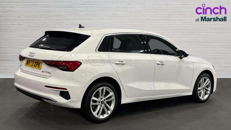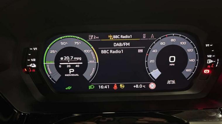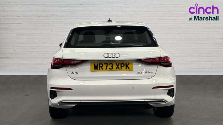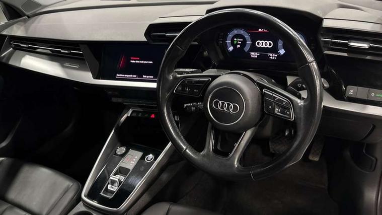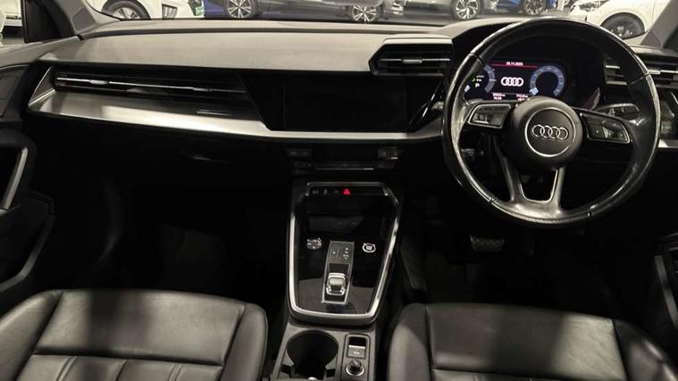 Audi drive select (Auto, Comfort, Dynamic, Efficiency and Individual), Audi smartphone interface, Audi Virtual Cockpit - 10.25" digital and colour instrument cluster, Automatic start/stop system with recuperation, Bluetooth interface, Camera based traffic sign recognition, Collision avoidance assistant, e-Call (emergency call), Electromechanical power speed sensitive steering, Lane departure warning system, MMI Navigation Plus with high resolution 10.1" colour touch screen display, Service indicator, Trip computer, Voice control system with natural language interaction, 3 pin 10 amp domestic charging cable, 3.6 kw On-board charger, Standard suspension, Type 2 mode 3 32 amp charging cable, Type 2 socket for AC charging, 2xUSB-C connection with data and charging functions, 6 passive loudspeakers, DAB Digital radio, 3rd brake light, Acoustic glass windscreen, Aluminium window trim, Auto dimming frameless rear view mirror, Body colour exterior mirrors, Body colour roof spoiler, Electrically adjustable/heated/folding/auto dimming door mirrors with integrated LED indications + kerb view function for passenger side, Front electric windows, LED daytime running lights, LED headlights and halogen rear lights, Light and rain sensors, Rear electric windows, Rear side wing doors, Rear window, rear door windows and rear side windows in clear glass, Rear wiper, 12V socket and storage compartment in front centre console, 3 seat bench in 2nd row, 3 spoke leather multifunction steering wheel with paddle shift, 4 way electrically adjustable lumbar support for driver and front passenger, 60/40 split folding rear seat bench, Dual zone electronic climate control, Front and rear headrests, Front centre armrest, Front door sill trims with aluminium inlay, Front/rear floor mats, Height and reach adjustable steering wheel, Interior lighting - Front and rear roof module including reading lights, glove compartment light and right hand side, Interior lighting - glove compartment light and right hand side, Luggage compartment floor covering, Manual boot compartment lid, Manually adjustable front seats, Routine cloth upholstery with front sports seats, Seat side bolsters, Single front passenger seat, Steel grey cloth headlining, Aluminium interior elements pack - A3 Sportback, LED interior lighting pack - A3 Sportback, Sport styling pack - A3 Sportback, 3x3 point rear seat belts, Driver and front passenger airbag with passenger airbag deactivation, Electronic Stabilisation Control (ESC) including ABS, ASR and EDL, First aid kit with warning triangle and 2 safety vests, Front side airbags with head airbags and interaction airbag, Pre-sense front with pedestrian and cyclist detection, Seatbelt monitoring, Tyre pressure loss indicator, Anti theft alarm, Anti-theft wheel bolts, Electronically operated child locks, Immobiliser, Remote control central locking, Inlays with silk effect paint in platinum grey, Tool kit, Tyre repair kit,