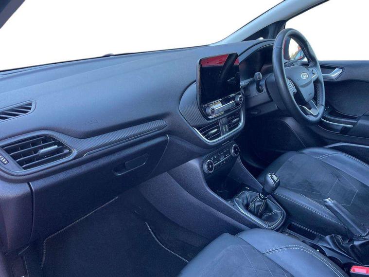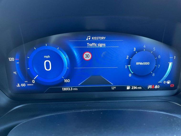 12.3" Full digital cluster, Driver alert system, Electric power steering, Ford easy fuel, Ford SYNC 3 Nav with DAB radio, 8" touch screen, voice control, emergency assist, Apple CarPlay/Android auto, 2x USB, 6 speaker, Ford pass connect, Rear parking distance sensors, Rear view camera, Selectable drive modes (Normal, Sport, Track), Speed sign recognition, Trip computer, Wrong way alert, Standard suspension, Auto high beam, Body colour bumpers, Body coloured electrically operated with side indicators, Electric front windows/one touch facility, Front titanium scuff plates, High gloss chrome surround with satin grille insert, LED Night signature to rear lights, LED third brake light, Quickclear heated windscreen, Rain sensing wipers and auto dimming rear view mirror, Rear privacy glass, Rear side wing doors, Rear wiper, 3 seat bench in 2nd row, 4 way manually adjustable passenger seat, Adjustable head restraints, Centre console with opening armrest, 2x cupholders, 12v and USB, Drivers and Passenger lumbar support, EATC - Electronic Auto Temperature control, Front floor mats in velour, Leather gaiter, LED ambient lighting (Ice blue), Manual 4-way driver seat adjust, Sensico partial premium leather upholstery with metal grey stitching, Sensico wrapped steering wheel, Single front passenger seat, NCAP Pack - Fiesta, Winter pack [GTBAB]- Fiesta, 3 point seatbelts on all rear seats, Electronic stability control with hill start assist, Manual child lock in rear doors, Tyre pressure monitoring system, Ford keyfree system with Keyless entry and keyless start, MyKey system, Remote central locking, Thatcham alarm with power door dead locks, 17" 10 spoke alloys with pearl grey machined finish,