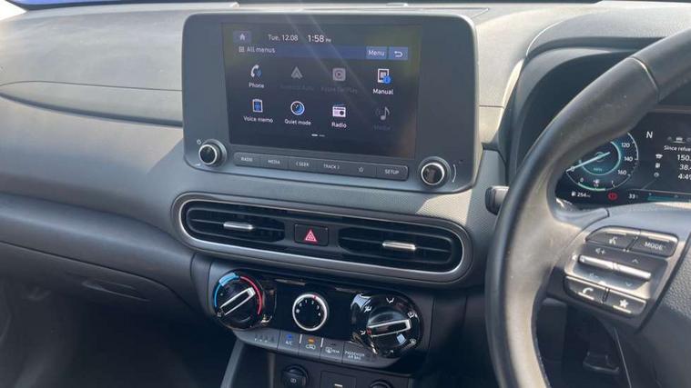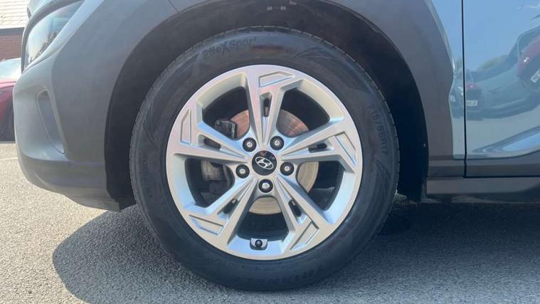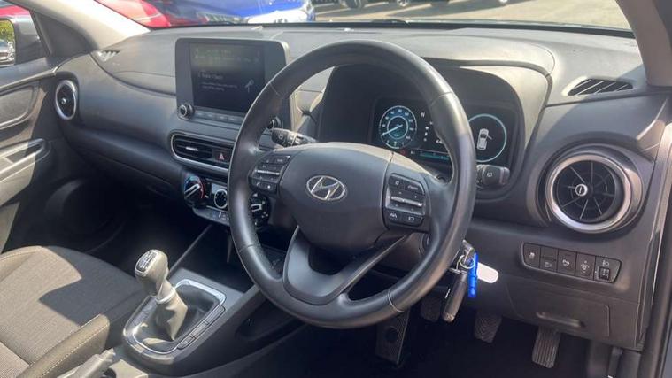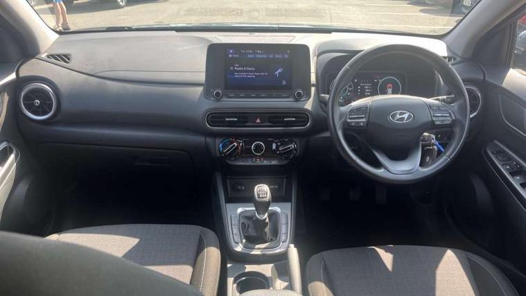 8" Touchscreen display audio + smart device integration, Bluetooth connectivity, Cruise control + speed limiter, Digital clock, Driver attention warning, Driver supervision instrument cluster with 10.25" LCD display, eCall emergency call system, Forward collision avoidance assist with pedestrian detection, Lane follow assist, Lane keep assist, Leading vehicle departure alert (LVDA), Parking system with rear camera and guidance system, PAS, Phone connection with apple carPlay and android auto, Rear parking sensor, Roadside assistance, Windscreen washer fluid sensor and warning indicator, 6 speed intelligent manual transmission, 6 speakers (2 front, 2 tweeters, 2 rear), Front USB ports, RDS and Digital DAB, Steering wheel mounted audio/phone controls, Automatic headlights with dusk sensor, Body colour door mirrors and handles, Door mirror integrated indicators, Electric front/rear windows with drivers one touch/anti-trap, Electrically adjustable and heated door mirrors, Halogen headlights, Halogen rear lights, LED daytime running lights, Positioning Lights - LED, Rain sensor, Rear roof spoiler with integrated LED brake light, Rear side wing doors, Rear wiper, Roof rails, Tinted glass with front door glass and windscreen with shade band, 12V power outlet in front console, 3 seat bench in 2nd row, 60/40 split folding rear seat, Adjustable head restraints, Air conditioning, Centre interior light, Cloth upholstery, Door scuff plate, Driver's seat height adjustment, Driver/passenger sunvisors and illuminated vanity mirrors, Front interior light, Front passenger seat manual adjustments, Height/reach adjustable steering column, Isofix rear child seat fastenings, Leather wrapped steering wheel and gear knob, Luggage compartment lighting, Luggage hooks, Metal paint effect interior door handles, Parcel shelf, Rear centre console with air vents, Single front passenger seat, Sunglasses holder, Vertical adjustment rear head restraints, Trailer wiring package - Kona, Airbags - front, front side and curtain airbags, Anti-lock brake system (ABS), Childproof rear door locks, Downhill brake control, EBD + Brake Assist, Electronic stability control, Fasten seatbelt reminder, Fixed 3 point for second row centre passenger seatbelt, Front seatbelt pretensioners, Height adjustable front seatbelts, Hill start assist control (HAC), Manual parking brake, Passenger airbag deactivate switch, Rear seat alert, Traction control, Tyre pressure monitoring system, Alarm/immobiliser, Deadlocks, Folding key, Locking wheel nuts, Remote central locking, 17" Alloy wheels,
