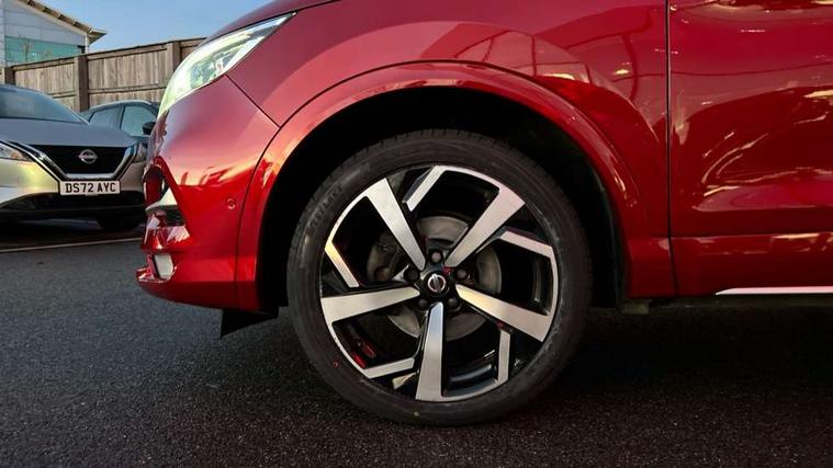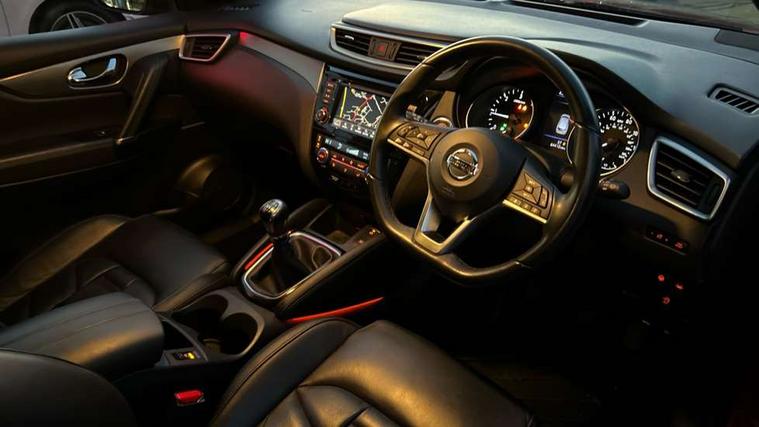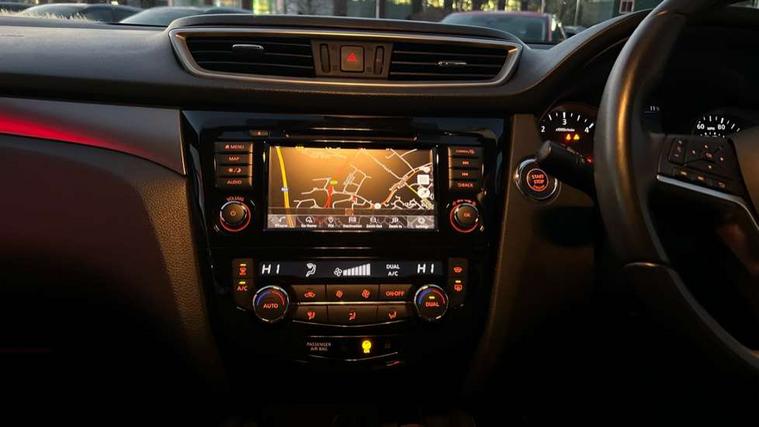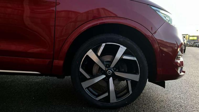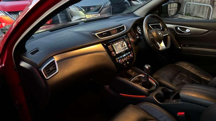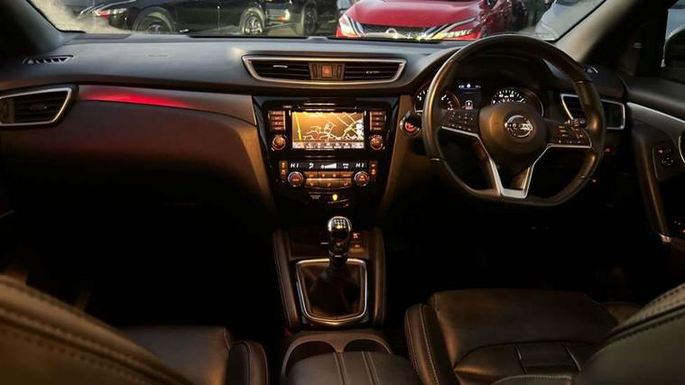 Advanced drive assist display 5'' TFT coloured screen, Android Auto, Apple CarPlay preparation, Bluetooth connectivity, Electric speed sensitive power steering, Front parking sensors, Intelligent around view monitor, Intelligent parking assist, Lane departure warning system, Nissan connect evo 7" touchscreen navigation and entertainment system, Normal or sport selectable steering, Outside temperature sensor, Push button starter, Rear parking sensors, Rear view camera, Service interval indicator, Smartphone integration, Stop/start system, Tomtom connected services, Traffic sign recognition, Trip computer, Voice control system, Diesel particulate filter, AM/FM radio, CD audio system, Aux-in socket, Bose premium 8 speaker system, DAB Digital radio, Rear USB connection, Steering wheel mounted audio controls, USB port, Anti dazzle rear view mirror, Auto wipers, Body coloured door handles, Chrome window surround, Daytime running lights dip function when turn signal applied, Electric folding door mirrors, Electric front and rear windows with one touch illuminated window controls, Electric front/rear windows, Electrically adjustable door mirrors, Front fog lights, Front/rear full painted bumper/side silver finisher, Gloss silver door mirror caps, Halogen headlights, Heated door mirrors, High beam assist, Intelligent auto headlights, LED indicators in door mirrors, Matt silver roof rails, One touch 4x auto windows with illuminated switches, Panoramic sunroof with one touch shade, Privacy glass, Rear roof spoiler, Rear wiper with reverse link, Shark fin antenna, Underbody vortex generators, 2 X front 12v power sockets, 3 height adjustable rear headrests, 60/40 split folding rear seat, Ambient lighting, Ambient lighting in centre console, Boot lighting, Centre console storage box/armrest, Chrome interior door handles, Configurable luggage board system, Dark headlining, Dual zone climate control, Electric 4-way lumbar support for drivers seat, Electrically adjustable driver seat, Electrically adjustable passenger seat, Front and rear door pockets with bottle holders, Front and rear seat belt pre-tensioners with load limiters, Height adjustable front headrests, Individual rear seat reading lights, ISOFIX restraints on outer rear seats x2, Leather D shaped steering wheel, Leather gear lever, Leather knee pad, Manual lumbar support on passenger seat, Map reading lamp, Memory for drivers seat/door mirrors, Monoform front seats with plastic backboard, One touch electric shade, Parcel shelf stow function under luggage board, Pollen filter, Rear armrest with 2 cupholders, Synthetic leather wrapped door handle with contrasting stitching, Tilt/telescopic adjustable steering wheel, Drive assist package - Qashqai, Heat package - Qashqai, Safety shield plus pack - Qashqai, 6 airbags - Driver, front passenger, curtain and side airbags, ABS, ESP, EBD and brake assist, Auto hold function, Child locks on rear doors, Electronic parking brake, Front and rear seat belt warning, Front passenger airbag deactivation, Height adjustable front seatbelts, Hill start assist, Intelligent emergency braking with pedestrian recognition, Three 3 point rear seatbelts, Tyre pressure monitoring system, Anti-theft immobiliser, Intelligent Key, Remote central locking, Thatcham Cat.1 alarm, Carbon graphite dash trim, Tyre puncture repair kit,