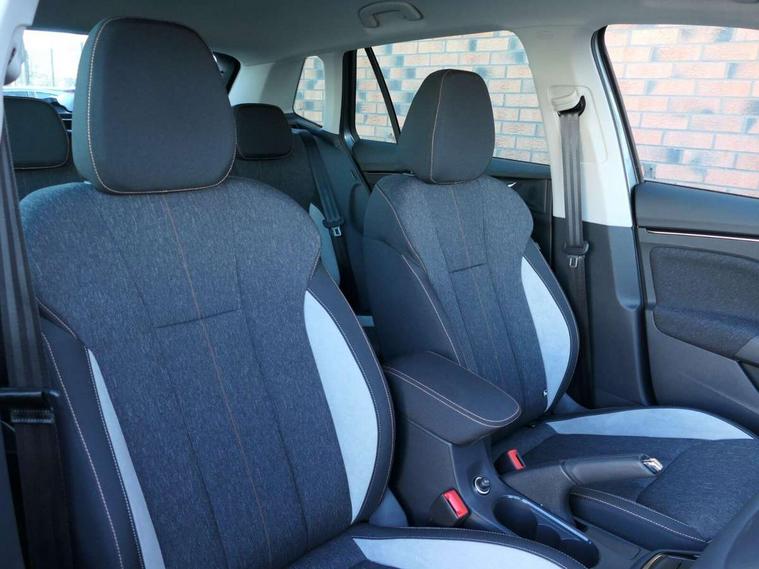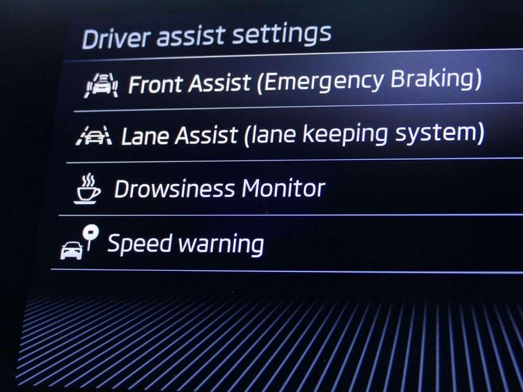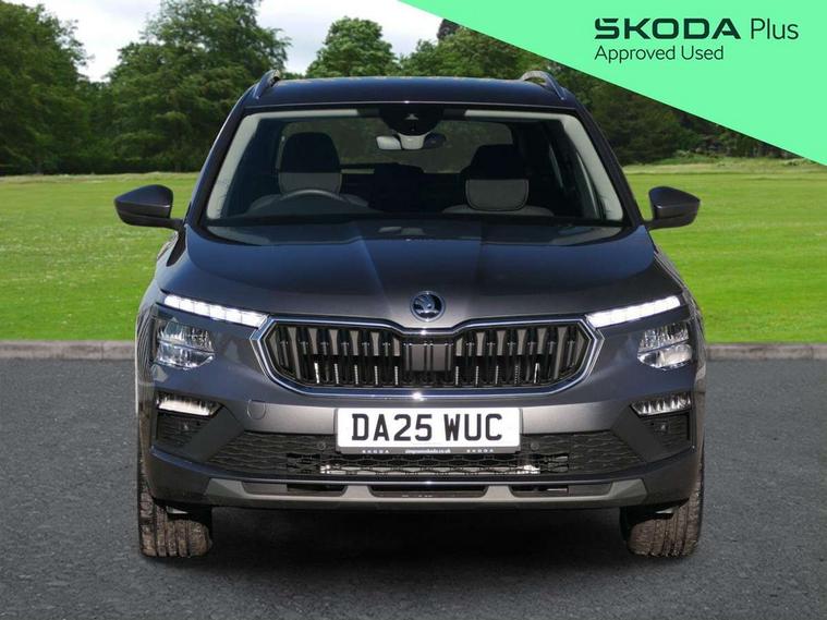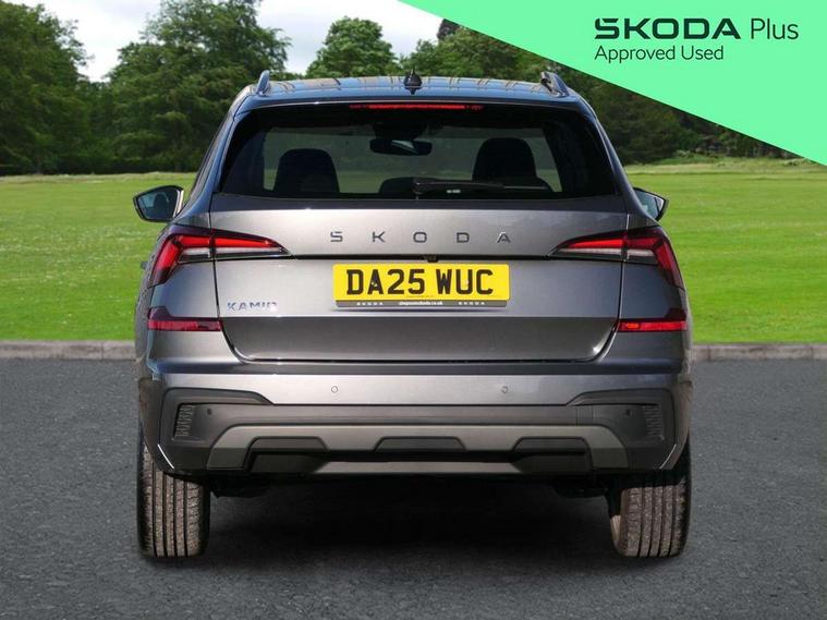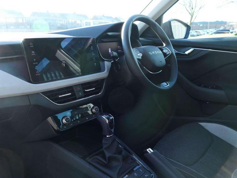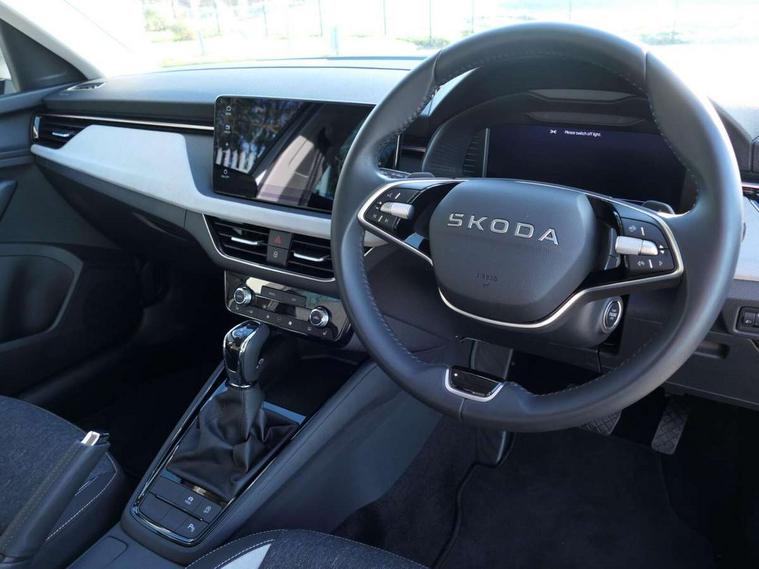 Advanced driver attention and drowsiness monitor, Bluetooth system, E-call, Front assist system, PAS, Rear parking sensors, Rear view camera, Service indicator, Speed limiter, Traffic sign recognition, Virtual cockpit with 10.25" display, Voice control system, Wireless smartlink, 4 USB C ports, 8 Speakers, 9.2" Skoda navigation display, DAB Digital radio, Auto dimming rear view mirror, Automatic headlight control with coming home and leaving home feature, Body colour bumpers, Body colour door mirrors and handles, Chrome grille surround, Chrome roof rails with chrome window surround, Front and rear electric windows, Heated rear window, LED daytime running lights, LED high beam, LED low beam, LED third brake light, Light sensors, Privacy glass, Rear side wing doors, Rear wiper, Ticket holder inside windscreen, 12V socket in luggage compartment, 3 seat bench in 2nd row, Accent black door inserts, Ambient lighting in white/red, Cargo elements, Chrome inner door handles, Copper hotstamping, Driver and passenger sun visors with vanity mirror, Dual zone climate control, Front and rear roof lights, Front centre armrest, Front head restraints, Glove compartment with illumination, Height adjustable driver seat, Height adjustable front passenger seat, Ice scraper, Inner circulation control with pollen filter, ISOFIX on front passenger seat, Isofix preparation for back seats, Leather gearknob and handbrake lever, Lodge cloth upholstery, Manual lumbar support for front seats, Net package and top tether hooks in boot space, Net under rear shelf, Overhead glasses storage compartment, Pocket on the back of both front seats include mobile phone pockets, Rake/reach adjustable steering wheel, Reading lights, Rear centre armrests, Single front passenger seat, Suedia grey decor inserts, Textile floor mats, Third rear headrest, Top tether for front passenger seat, Umbrella in driver's door, Convenience pack - Kamiq, 3x3 point rear seatbelts, Airbags - driver and front passenger, Disc brakes, ESP, Extended and predictive pedestrian/cyclist protection, Front passenger airbag deactivation switch, Front side airbags with curtain airbags, Hill hold control, Manual leather parking brake, Manual rear child locks, One tone horn, Seatbelt reminder for driver an co-driver, Traction control, Tyre pressure monitor, Anti-theft alarm system with interior monitoring, backup horn, towing protection and remote central locking with SAFE system, Anti-theft wheel bolts, Electronic engine immobilizer,