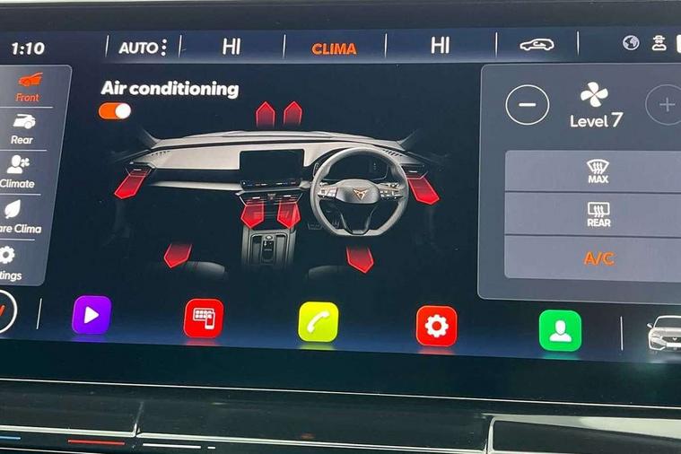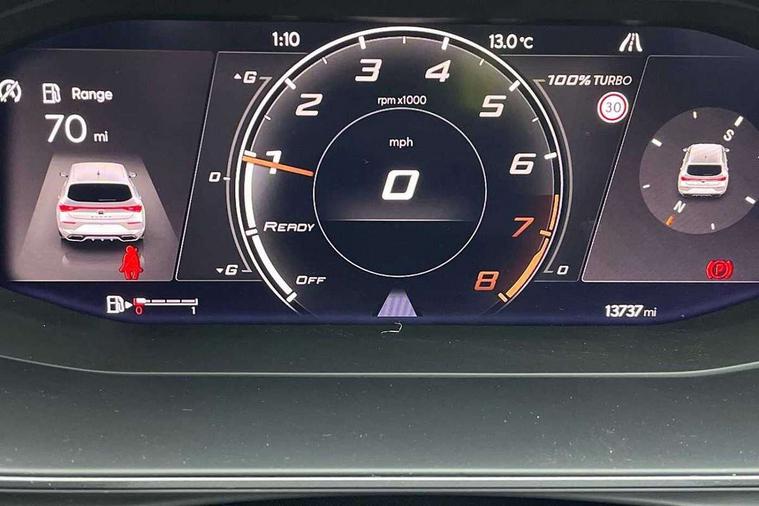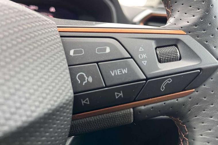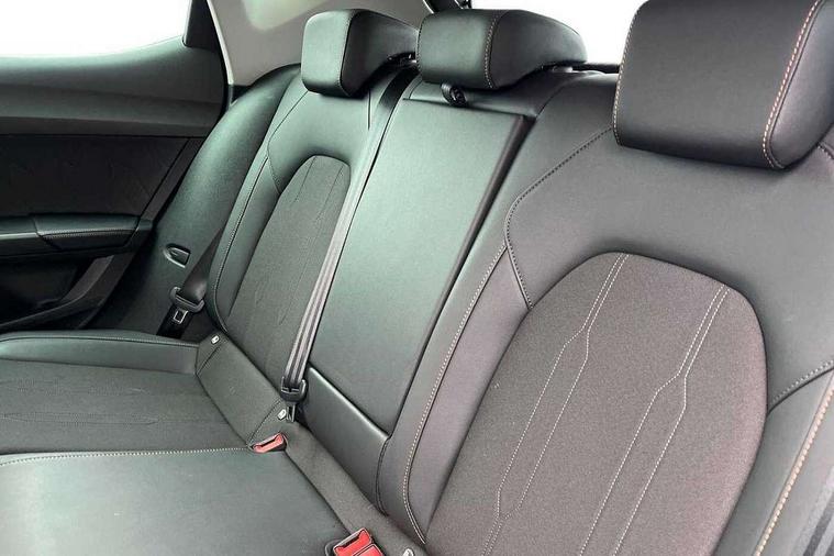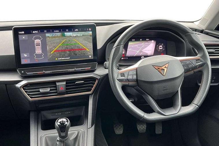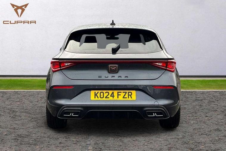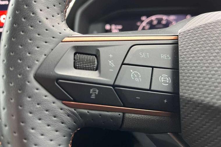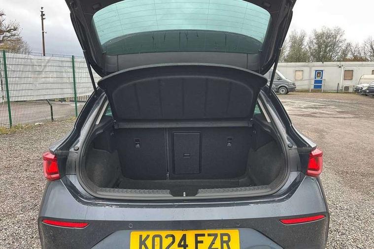 CUPRA drive profile selection with (Comfort/Sport/Individual), throttle response and gearshift mode, Digital cockpit, E-call, Electro mechanical speed sensitive power steering, Four x USB Type C ports (2 in front and 2 in rear), Front assist with forward collision warning braking reaction to vehicles, pedestrians and cyclists, Full link smartphone integration with Mirror Link, wireless Apple CarPlay and wired Google Android Auto, Lane assist, Lockable tailgate, Park assist (inc front/rear parking sensors), Rear view camera, RPM, trip computer, outside temp gauge, instrument light brightness, low fuel warning light, lights on reminder, gearshift indicator, Service interval indicator, Start/stop system with regenerative braking, Wireless phone charger, Sports suspension, Auxiliary input socket, Auto dimming rear view mirror, Body colour door handles, Body coloured bumpers, Cupra sports bumpers, Dark tinted rear windows, Electric front/rear windows, Electrically adjustable, heated and folding door mirrors, LED front fog lamps with cornering function, LED headlights with dynamic turn signals, tail lights, rear fog lights with rear coast to coast lighting, Rain sensing wipers, Rear diffuser with twin exhaust pipe on each side, Rear side wing doors, Rear wash/wipe, Separate daytime running light with automatic headlight control and coming home feature, Third brake light, 12v power supply in centre console, 3 seat bench in 2nd row, 5 headrests, 60/40 split rear bench seat with armrest, Ambient lighting with glovebox, footwell and single monocolour, Cupra Leather flat bottomed, perforated steering wheel, Driver/passenger manual seat height adjustment, Folding boot cover, Front and rear reading lights X 4, Front centre armrest, Front seats manual lumbar adjustment, Grey headlining, Height/reach adjust steering wheel, Illuminated interior front door sills, ISOFIX points in outer rear seats with top tether anchorage points, Jack and tool kit, PVC/Cloth upholstery with copper stitching, Single front passenger seat, Sports seats, Sunvisors with illuminated mirror, Three zone climate control, Media system plus with navigation pack - Leon Cupra, Safety and driving pack (M) - Cupra leon, 3 point seatbelts on all rear seats, ABS, Brake control system - ESC and brake booster, Child proof door locks, Cupra black brake calipers, Driver and front passenger airbags with front passenger airbag de-activation, front side and curtain airbags, Electronic parking brake, Extended safety system - seat belt tensioner, window closure and hazard lights, Hill hold control, Rear disc brakes, Seat belt reminder for front and rear seats, Tiredness recognition system, Tyre pressure monitoring system, Anti theft alarm system with interior monitoring in cab, backup horn and towing protection, KESSY Advanced - Keyless start, keyless entry, Locking wheel bolts, Chrome and copper interior detailing, 18" Machined sport black and silver alloy wheels with 92Y tyres,