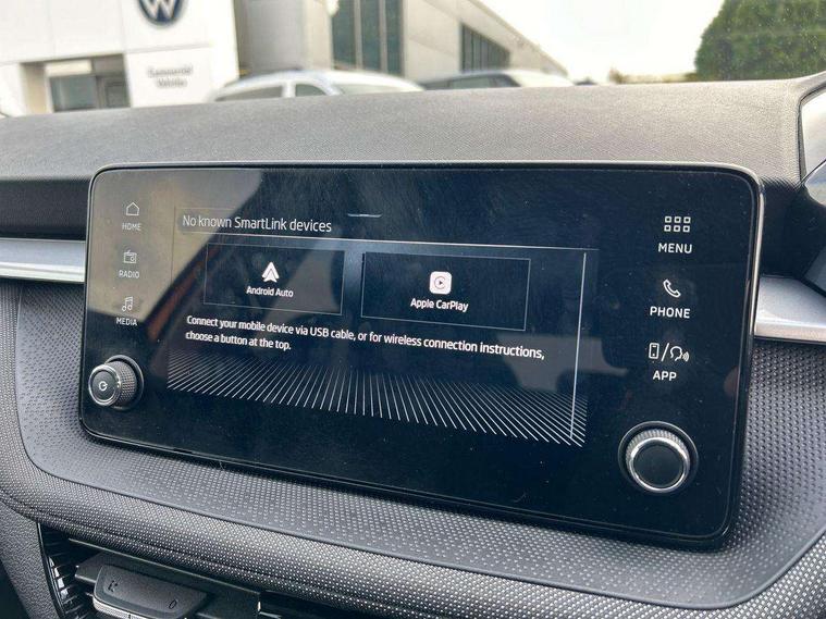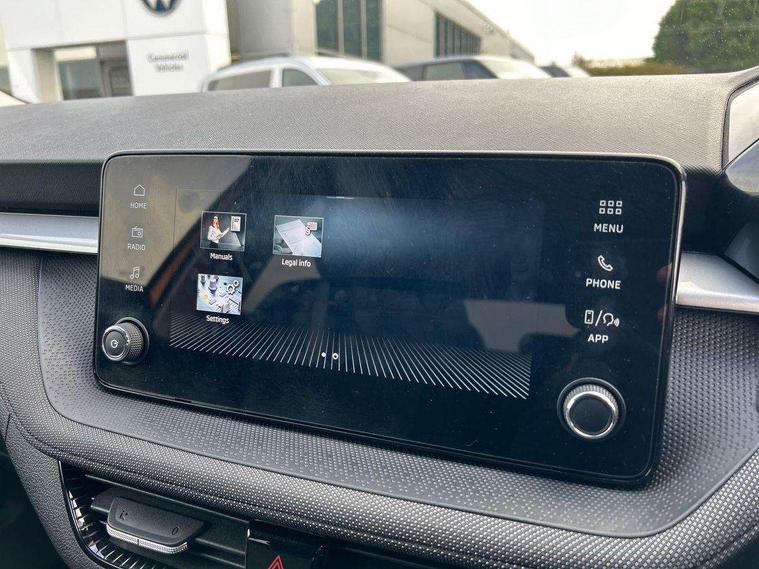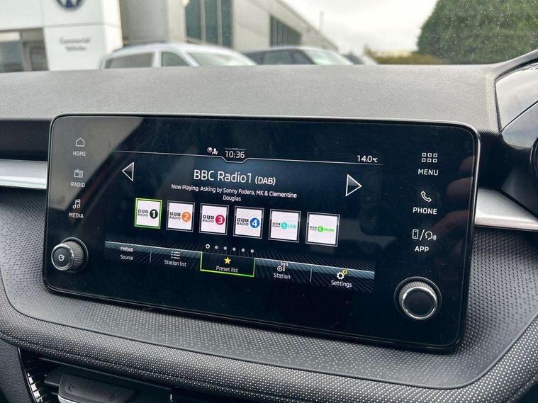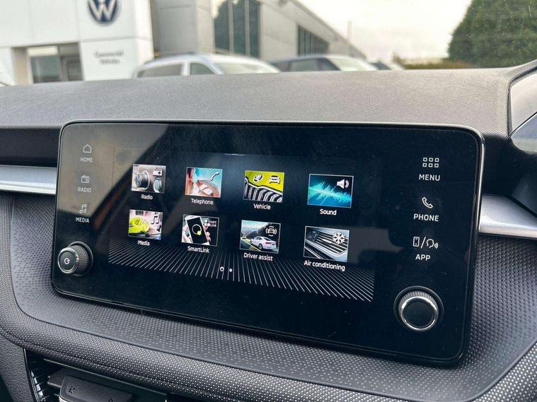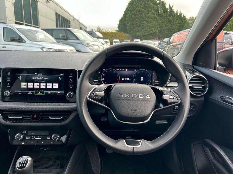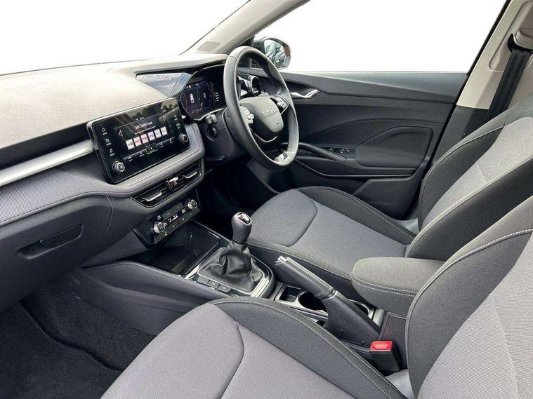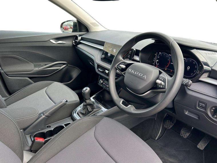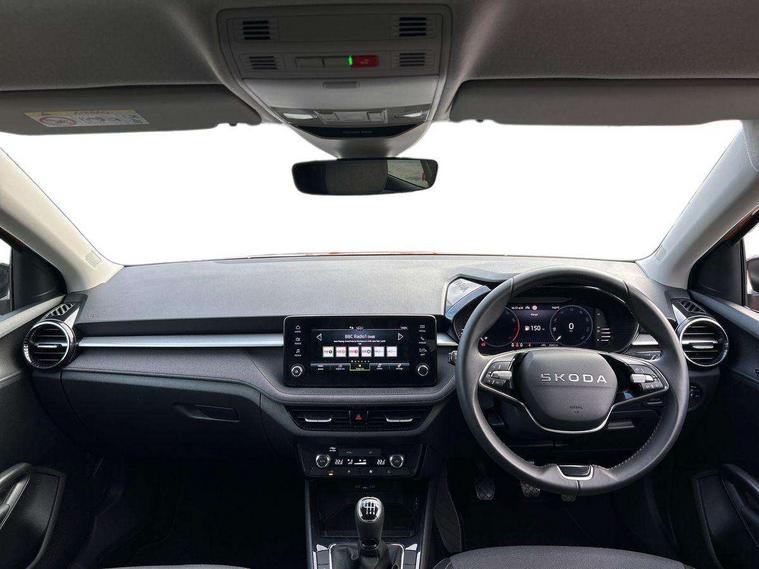 Advanced driver attention and drowsiness monitor, Bluetooth connection, Electromechanical power steering, Exterior temperature gauge, Service interval indicator, Traffic sign recognition, Virtual cockpit with 10.25" colour display, Wireless SmartLink for Apple CarPlay and Android Auto, 6 Speakers (4 in front and 2 in rear), Auxiliary socket for external MP3 player, DAB digital radio reception, Auto dimming rear view mirror, Body coloured bumpers, Door mirror integrated indicators, Front and rear electric windows, Front window wiper intermittent control, Headlight range control - Automatic, Ice scraper in fuel cap, LED 3rd brake light, LED daytime running lights with coming and leaving home feature, LED rear lights, Privacy glass, Rear LED fog light, Rear side wing doors, Rear window wiper with washing nozzles, Roof mounted spoiler, SKODA tailgate lettering in chrome, Unique dark chrome design logo on alloy wheels, 2 reading lights in front and 2 reading lights in rear, 3 rear headrests, Backrest split and folding, Central console with removable cup holder and storage box, Chrome handbrake release button, Dual zone air conditioning with climatronic electronic control, Fabric upholstery, Front centre armrest, Gearshift knob/handle in leather, Grain satin black interior door handles, Hand brake lever handle in leather, Height adjustable front headrests, Height adjustable front seats, Height adjustable steering wheel, ISOFIX and TopTether anchorage points to the outer rear seats, ISOFIX and TopTether on the front passenger seat, Luggage compartment lighting, Manually adjustable lumbar support in front seats, Pollen filter, Rear seat bench unsplit, Single front passenger seat, Skoda lettering on steering wheel, Storm grey headlining, Sun visors with mirror and airbag label on passenger side, Textile floor mats, Ticket holder, Umbrella in drivers door, 3-point height adjustable front seats belts with pretensioner and force limiter, Automatic warning lights in case of crash, Driver and passengers airbag with switch off function, e-Call+, ESC including ABS, MSR, ASR, EDS, HBA and XDS, Front and rear seat belt warning, FRONT ASSIST (AEB City and AEB Inter Urban), Front side airbags, Head airbags, One tone horn, Pedestrian protection, Three rear 3-points safety seat belts with pretensioner and force limiter including stop function for outer rear seat belts, Tyre pressure monitoring system, Anti-theft alarm system including immobiliser, interior monitoring, backup horn, and towing protection, Central locking with radio remote control, interior controls, SAFE function and 2 foldable keys, Black painted air vents, Grain satin black central console cover, Metallic grey upper decorative trim, Satin black door and side trim panel in front, Textile Kota grey lower decorative inserts, Anti-theft wheel bolts protection, Super-low rolling resistance tyres,