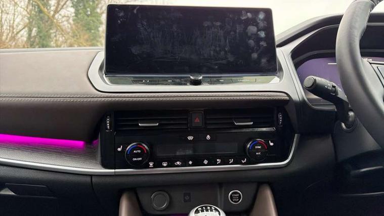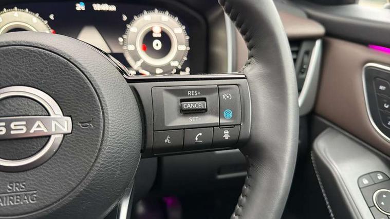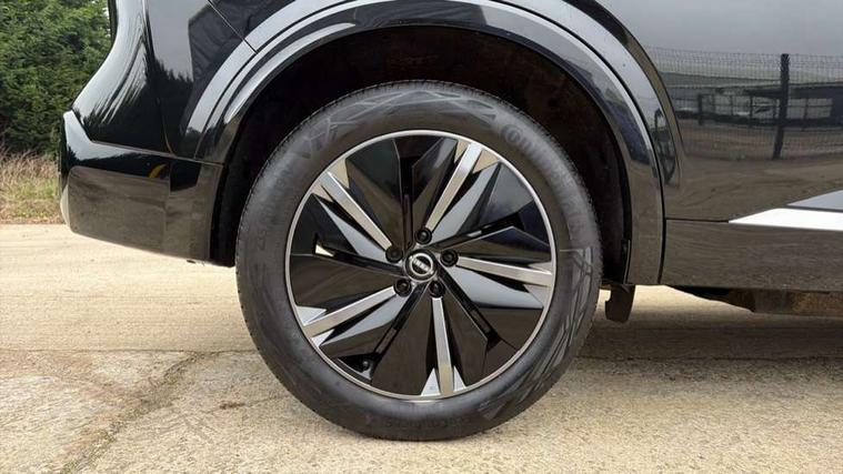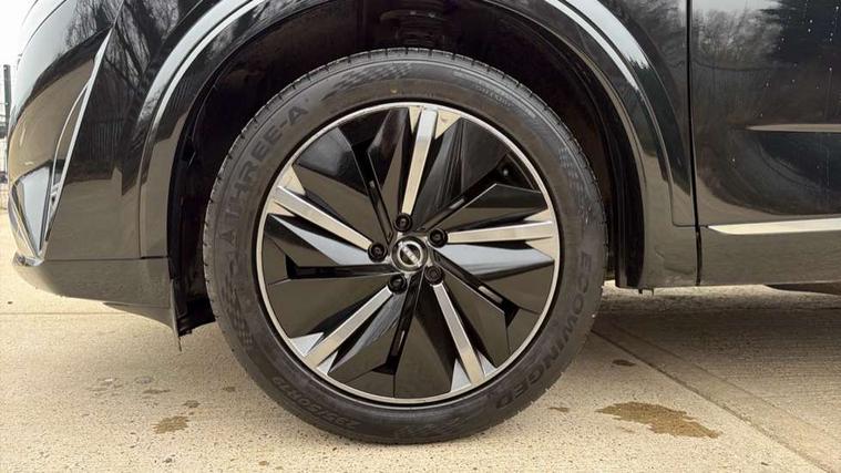 2 front USB-C ports, 2 rear USB-C ports, 360 degree Intelligent around view monitor with moving object detection, Advanced windscreen head up display, Blind spot warning, Drive assist, Drive assist custom mode, Drive modes (sport, normal, eco), Driver drowsiness and attention warning, Electric speed sensitive power steering, Emergency and breakdown call, Emergency lane keep assist, Emergency Stop Signal (ESS), Engine start/stop button, Event data recorder, Front and rear parking sensors, Full Digital 12.3" TFT Digital Combimeter, Google virtual personal assistance, Hands free power tailgate, Idle stop/start system, In-car WIFI hotspot, Intelligent Cruise control (ICC), Intelligent driver alert system, Intelligent forward collision warning, Intelligent lane intervention, Intelligent speed assist, Lane departure warning system, Nissan connect 12.3 inch touchscreen infotainment system, Nissan connect navigation with google maps, Nissan connect services 2.0 (Google Automotive System), Outside temperature sensor, Rear cross traffic alert, Remote control services - door locks, lights, horn and car locator, Reversing detection, Traffic sign recognition with legal speed adjustment, Trip computer, Wireless Apple CarPlay/Android Auto, Wireless charging pad, Limited slip differential, 6 speakers, AM/FM audio system with DAB, Bluetooth audio streaming, Auto dimming frameless rear view mirror, Auto rear wiper when reversing, Body colour mirror caps, Body coloured door handles, Bodyside mouldings, Chrome side window finisher, Electric auto folding door mirrors, Electrically adjustable and heated door mirrors with LED turn indicator, Follow me home headlights, High beam assist, Intelligent auto headlights, LED 3rd brake light, LED daytime running lights, LED headlights with adaptive driving beam, LED rear lights, LED sequential turn lights, One touch front and rear electric windows with remote opening and closing, One touch passenger window, Partially body coloured bumpers, Rain sensing wipers, Rear privacy glass, Rear roof spoiler, Rear side wing doors, Rear styling plate, Reverse tilting door mirrors, Shark fin antenna, Silver roof rails, Splash free rain sensing wipers, Super RED rear LED lights, Super UV and infrared cut glass, Thermaclear heated windscreen, 12v power socket in dashboard and luggage, 3 bench rear seats in 2nd row, 3 rear headrests, 60/40 split folding rear seat bench, Chrome interior door handles, Dark headlining, Driver and passenger sunvisors with illuminated vanity mirrors, Driver seat back pocket, Dual zone automatic climate control with pollen filter, Electrically adjustable driver seat, Electrically adjustable lumbar support for driver, Fixed Glass roof with electric sunshade, Front centre console and armrest, Front cupholders, Front door with bottle holders, Heated front seats, Heated steering wheel, Height adjustable front headrests, Height adjustable passenger seat, Leather shift knob, Luggage board system, Luggage space lighting, Manual adjustable lumbar support for passenger, Multifunction steering wheel, Passenger seat back pocket, Quilted/PVC upholstery, Rear door bottle holders, Rear seat armrest with 2 cupholders, RGB ambient light (Full area coverage), Single front passenger seat, Smooth leather steering wheel, Tilt/telescopic adjustable steering wheel, Two rear isofix child seat anchorage points with top tether, 3x3 point rear seatbelt pretensioners + load limiters, ABS with EBD and brake assist, Autonomous emergency braking, Child locks on rear doors, Curtain and front side, far side airbags, Driver and passenger airbags, Driver, passenger and 2nd row rear seat belt reminder, Electric handbrake with auto hold function, Front seatbelt pretensioners + load limiters, Height adjustable front seatbelts, Hill start assist, Intelligent blind spot intervention, intelligent front emergency braking, Intelligent rear automatic braking, Tyre pressure monitoring system, Vehicle dynamic control, Engine immobiliser, Intelligent key with walk away lock and approach unlock functions, Remote central door locking with deadlocking, Thatcham alarm, 19" Diamond cut alloy wheels, Tyre puncture repair kit,