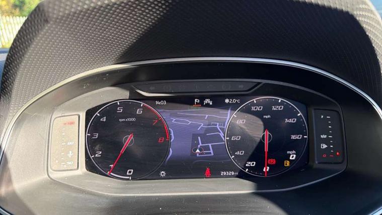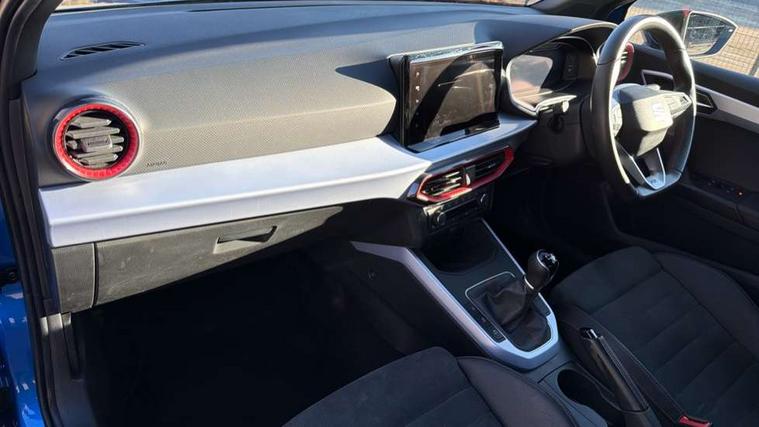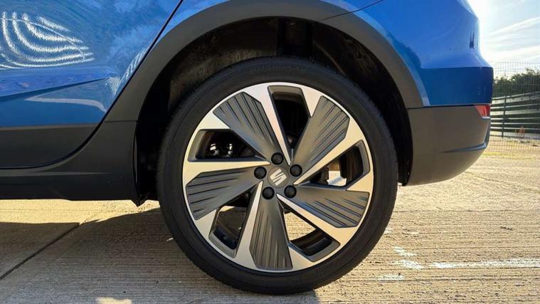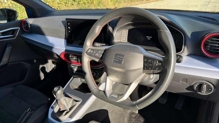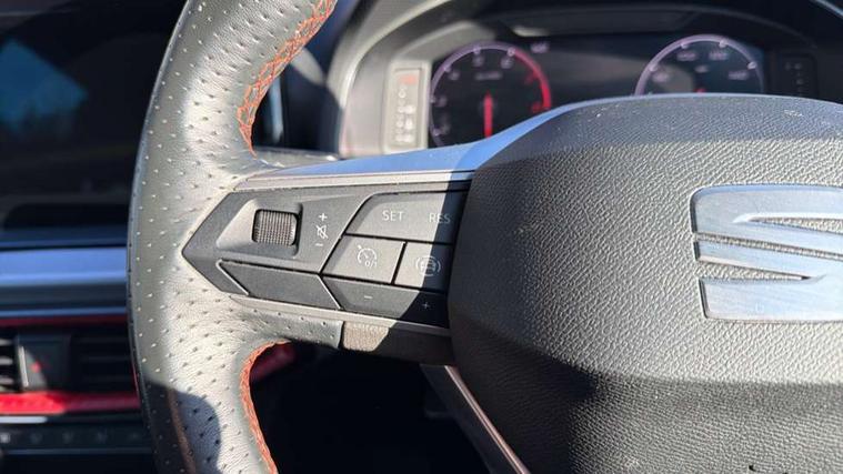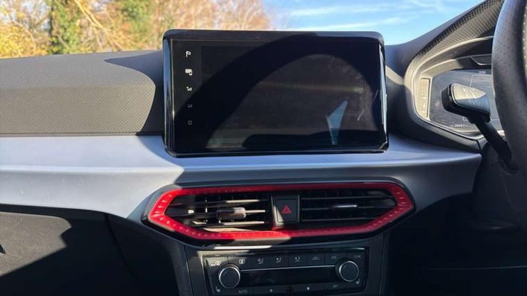 'Lights On' Reminder warning buzzer, 10" Digital cockpit, Digital clock, E-call, Electric speed sensitive power steering, Full Link Smartphone Integration with Mirror Link, Apple Car Play, Google Android Auto with USB Type C cable for Apple and Android compatibility, Low fuel warning light, Outside temperature display, Rear parking sensor, RPM counter, Seat connect with safety, service, remote and online, SEAT Drive profile - Four different models normal-sport-eco-individual, steering response, throttle response, Trip computer, Wireless phone charger, 9.2" colour touchscreen with navigation system, voice control and USB port (type c), Bluetooth interface for hands free and audio streaming, DAB digital radio and AM/FM radio, Steering wheel mounted audio controls, Anti theft roof antenna, Auto dimming interior rear view mirror, Automatic activation of hazard warning lights, Body coloured bumpers, Body coloured door handle inserts, Chrome roof rails and window surrounds, Dark tinted rear windows, Electric front/rear windows, Electrically adjustable, heated and folding door mirrors, Front fog lights with cornering function and rear fog light, FULL LED automatic headlights with dynamic headlight range control, coming and leaving home, LED daytime running lights, LED rear tail lights and licence plate lights, Protective side mouldings, Rain sensing wipers, Rear side wing doors, Rear spoiler, Rear window wash/wipe, Roof colour door mirrors, Third brake light, Twin exhaust pipe styling hidden exhaust pipe, Visible VIN plate, Windshield wiper with intermittent control and potentiometer, 2 cupholders, 3 seat bench in 2nd row, 60/40 split folding rear seat, Aircare filter, Black interior roof, Double boot floor, Driver sunvisor with covered mirror + card holder, Dual zone climate control, Front comfort seats, Front courtesy light with front reading lights, Front seat back storage pockets, Gear shift indicator, Heated front seats, Height adjustable front seats, Height/reach adjustable steering column, Illuminated boot, Instrument lighting with brightness control, Interior ambient lighting, Interior light in footwell, central console and door panel, ISOFIX points in outer rear seats with top tether anchorage points, Microsuede cloth upholstery, Passenger sunvisor with vanity mirror, Perforated flat bottomed leather steering wheel/gear knob/handbrake with red stitching and FR logo, Single front passenger seat, Two front and three rear height adjustable headrests, Interior chrome pack - Arona, 3 point seatbelts on all rear seats, ABS, Active front headrests, Child locks on rear doors, Driver and front passenger airbags with front passenger airbag de activation, front side and curtain airbags, Electronic stability control, Emergency Brake Assist (EBA) and front assist, Front and rear seatbelt reminder, Hill hold control, Multi-Collision braking, Tiredness recognition system, Traction control, Tyre pressure monitoring system, Alarm with back-up horn, Electronic engine immobiliser, Locking wheel bolts, Remote central locking + deadlocks, Tow away protection, Titan black dashboard, 18" Performance Cosmo grey matt alloy wheels,