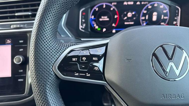 Adaptive cruise control ACC stop and go including speed limiter, App-Connect incl. App-Connect Wireless for Apple CarPlay and Android Auto, Bluetooth phone integration system, Digital Cockpit Pro - Active info display, Distance control assist, Driver alert system, Driver profile selection, Dynamic road sign display, eCall emergency call system, Electromechanical speed sensitive power steering, Engine start/stop button, Lane keeping system Lane Assist, Lights on warning, Multifunction front facing camera, Outside temperature display, Premium multifunction display with multi colour display, Remote control boot opening, Rev counter, Revision / skills operating concept travel assistant, Service interval indicator, Speed limit display, Start/stop system with regenerative braking, Trip computer, Warning sound and light for doors and tailgate open, Battery regeneration during braking, Diesel particulate filter, Misfuel prevention device for diesel engine, Selective Catalytic Reduction, XDS electronic differential lock for improved traction and handling, 2 USB-C ports in the front, 1 USB-C charging socket on the center console in the rear, 4 X 20 watt output, 8 Speakers, Diversity antenna for FM reception, Radio, SD card slot, Simultaneous pairing of 2 compatible mobile devices, SMS functionality - read, compose and send SMS messages using touch-screen display, Title and cover art display, Auto dimming interior rear view mirror, Automatic headlight control system, Black roof rails, Body colour door handles, Body coloured bumpers in R Line style, Body coloured door mirrors with integrated indicators, Chrome moldings on the side windows, Coming/leaving home lighting function, Dynamic headlight range control, Front and rear electric windows, Heated rear window, High level 3rd brake light, Laminated safety glass windshield, heat and sound insulating, LED headlamps with LED separate daytime running light and dynamic cornering light, LED rear combination lamps, LED rear number plate lights, License plate carrier in front and rear, Poor weather light and cornering light, Privacy glass for rear side windows and rear window, R Line body kit, R Line side sills, Rain sensor windscreen wipers, Rear exhaust tailpipe, Rear fog lamp, Rear side wing doors, Rear spoiler in R style, Rear windscreen washer and wiper with interval delay, Side and rear windows in heat insulating glass, Trailer Stability Programme, Unique R Line badging, Windscreen wipers/ intermittent wipe + 4 position delay, 12V outlet in center console rear and in luggage compartment, 12V outlet in front and tray, 2 cup holders in front, 2 LED front reading lights, 2 LED rear reading lights, 3 bench rear seats in 2nd row, 3 rear headrests, 4 load lashing points, 40:20:40 split folding rear seats, Air Care Climatronic 3 zone automatic climate control with enhanced air filter and controls in the rear, Backrest release for left front seat, Black headlining, Brushed stainless steel pedals and footrest, Carpet mats in front and rear with decorative stitching in Gray, Climate control unit rear with touch function, Door and side trim panel in foam film, insert in leatherette, Front centre armrest, Front footwell illumination, Front seats head restraints (x-adjustment), Height adjustable front seats, Height/reach adjust steering wheel, Instrument lighting white adjustable panel illumination, Interior light with delay, Isofix Preparation 2 Rear child seats, Leather gear knob, Lockable cooled glovebox, Luggage compartment lighting, Luggage net, Rear bench seat asymetrically split folding, longitudinally movable and folding with load-through hatch and center armrest, Remote unlocking for rear seat backrest, Removable luggage cover, Removable rear headrests, Safety optimised front head restraints, Single front passenger seat, Sliding/reclining rear seats, Standard rear seat release, Storage compartment in driver's door, Storage compartment in passenger's door, Storage compartment in rear doors, Storage compartments in luggage area left and right, Storage tray on dashboard, Sun visors with illuminated vanity mirrors, Top front comfort seats, Variable boot floor, height adjustable and removable, Ambience pack - Tiguan R Line, Driver assistance pack plus - Tiguan DSG, Park assist pack - Tiguan, 3 point seat belt for centre rear seats, 3 point seat belts with seat belt pretensioners for the outer rear seats, Active bonnet, Curtain airbags for front and rear passengers, Driver/Front Passenger airbags, Drivers knee airbag, Electronic parking brake with auto hold, Electronic Stability Control with driver steering recommendation, ABS, ASR, EDL, EDTC and trailer stabilization, Front assist with autonomous emergency braking (for Adaptive Cruise Control ACC up to 130 mph), Front disc brakes, Front passenger airbag deactivation, Front side airbags, Height adjustable front 3 point seatbelts + pretensioners, Hill hold control, Manual child proof rear door locks, Pedestrian monitoring system, Power assisted brakes, Proactive passenger protection system in combination with front assist, Rear disc brakes, Rigid safety cell with front and rear crumple zones, Two tone horn, Warning sound and light for front seat belts if unfastened, Anti theft alarm system with interior monitoring, backup horn and towing protection, Anti theft wheel bolts, Electronic engine immobiliser, 20" Misano black with diamond turned surface alloy wheels with Airstop tyres, Tool kit,