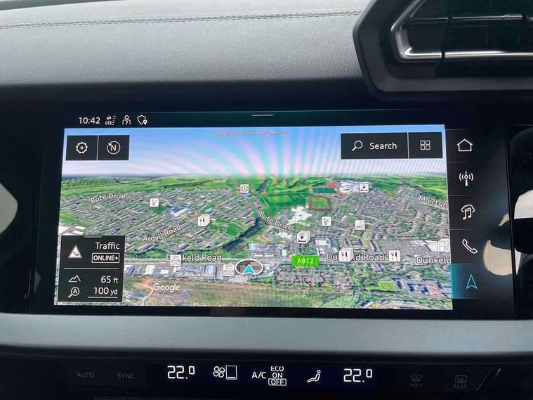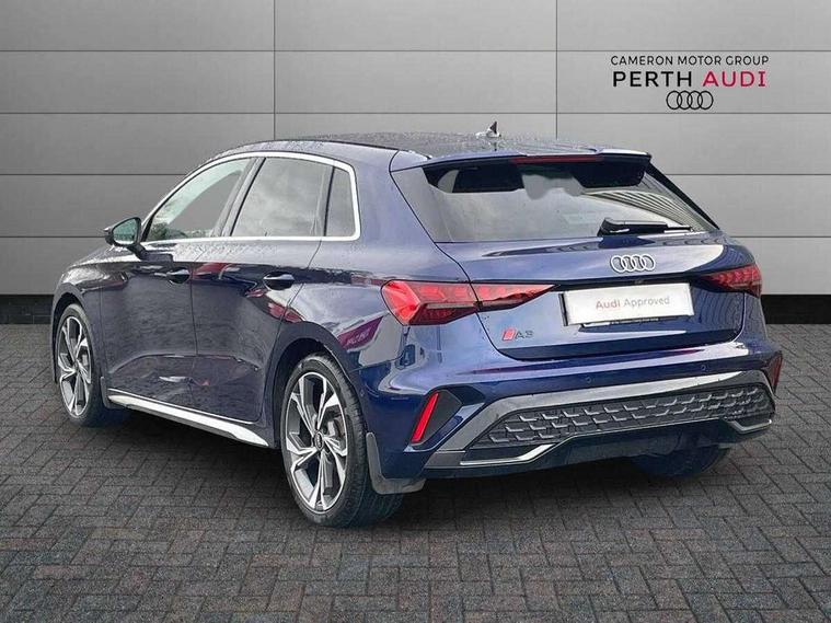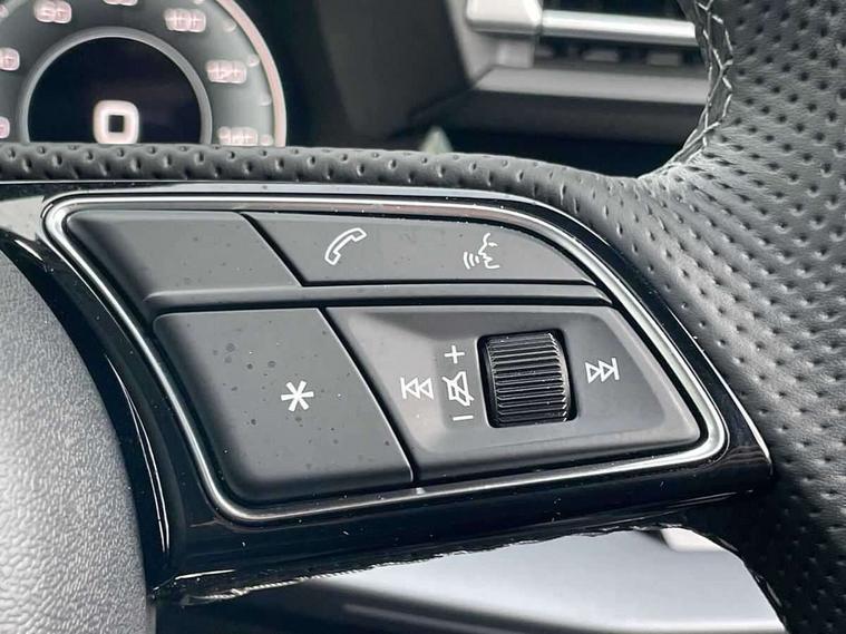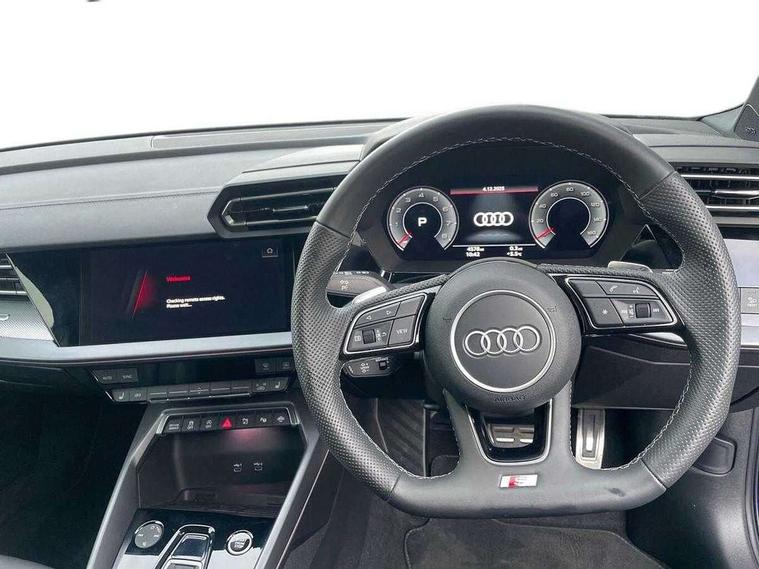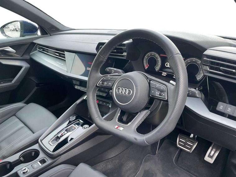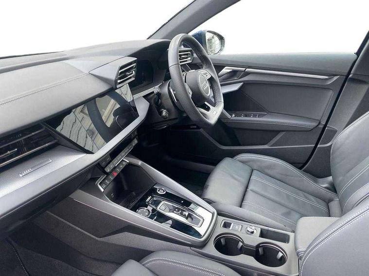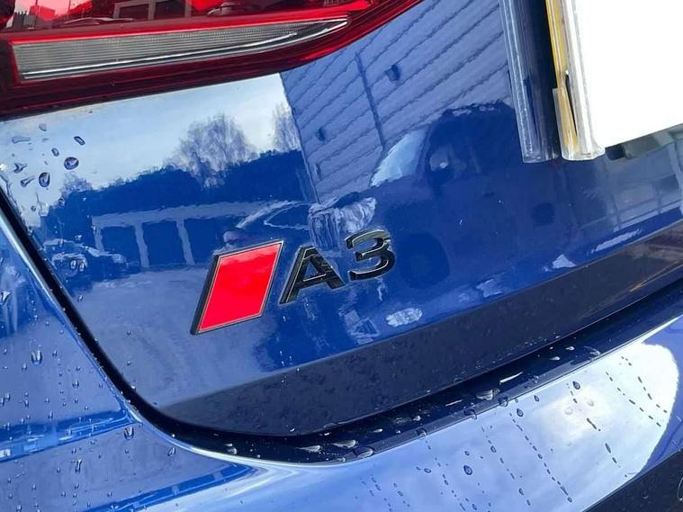 Adjustable speed limiter, Audi drive select, Audi smartphone interface with app store includes wireless Apple carplay, Android auto and Amazon alexa integration, Audi virtual cockpit plus - 12.3" full HD resolution dynamic digital instrument cluster, Automatic start/stop system with recuperation, Bluetooth interface, Camera based traffic sign recognition, Collision avoidance assistant, Cruise control, Distraction and Fatigue warning, e-Call (emergency call), Electromechanical power speed sensitive steering, Lane departure warning system, MMI Navigation Plus with high resolution 10.1" colour touch screen display, Park Assist with parking system Plus, Service indicator, Tailgate, Trip computer, Voice control system with natural language interaction, Sports suspension, Audi Phonebox light with wireless charging, Audi sound system - 10 loudspeakers including centre loudspeaker and subwoofer, DAB Digital radio, USB ports with charging function in the rear, Acoustic glass windscreen, Aluminium window trim, Auto dimming frameless rear view mirror, Body colour exterior mirrors, Chrome exhaust tailpipes, Electrically adjustable/heated/folding/auto dimming door mirrors with integrated LED indications + kerb view function for passenger side, Exterior model badging, Front and rear side air inlets in grained matt black with dark liquid chrome frame, Front electric windows, Front radiator grill in high gloss dark chrome, Heat insulating glass windscreen, Illuminated door sills with aluminium inserts at the front with S logo, LED 3rd brake light, LED daytime running lights, LED headlights with LED rear lights and dynamic rear indicators, Light and rain sensors, Privacy glass - dark tinted rear window, rear door and side windows, Rear diffuser and grill in grained matt black with inlay in dark liquid chrome, Rear electric windows, Rear side wing doors, Rear wiper, S line bumpers, S roof spoiler, Side S line emblems on front wings, Side sill trim in dark liquid chrome, 12V socket and storage compartment in front centre console, 3 seat bench in 2nd row, 3 spoke flat bottomed leather multifunction sport steering wheel with gear shift paddles, 3-zone deluxe automatic air conditioning, 4 way electrically adjustable lumbar support for driver and front passenger, 40/20/40 split folding rear seat bench, Black cloth headlining, Front and rear centre armrest in artificial leather, Front and rear headrests, Front/rear floor mats, Heated front seats, Height and reach adjustable steering wheel, Manual boot compartment lid, Manually adjustable front seats, Rear cup holders, S badging on the steering wheel, Seat side bolsters, Single front passenger seat, Stainless steel pedals and front footrest in black, Twin leather upholstery with front sports seats S embossed logo, Aluminium interior elements pack - A3 Sportback, Multi-coloured LED interior lighting package - A3, 3x3 point rear seat belts, Driver and front passenger airbag with passenger airbag deactivation, Electronic Stabilisation Control (ESC) including ABS, ASR and EDL, First aid kit with warning triangle and 2 safety vests, Front side airbags with head airbags and interaction airbag, Hill hold assist, Pre-sense front with pedestrian and cyclist detection, Seatbelt monitoring, Tyre pressure loss indicator, Anti theft alarm, Anti-theft wheel bolts, Electronically operated child locks, Immobiliser, Remote central locking with safelock, Dash & door Inlay in dark aluminium Spectrum,
