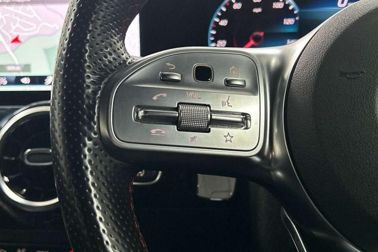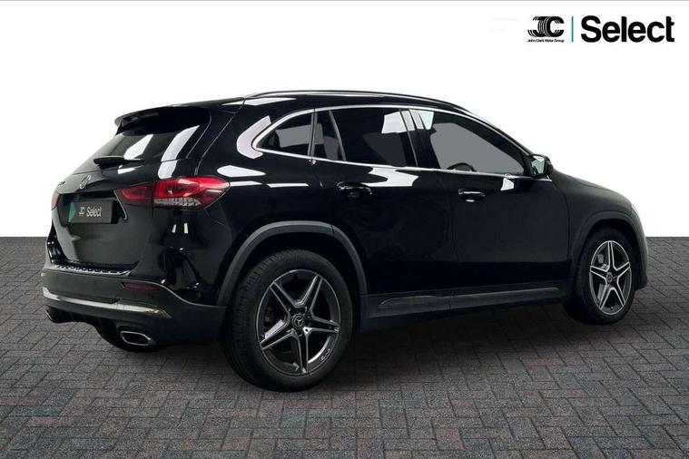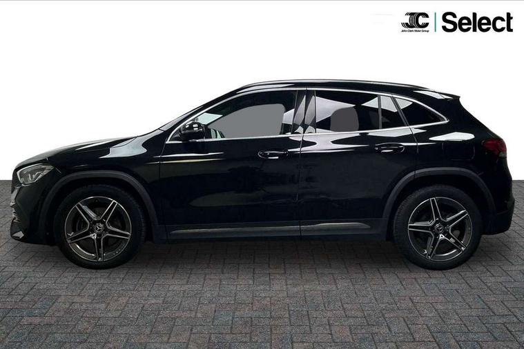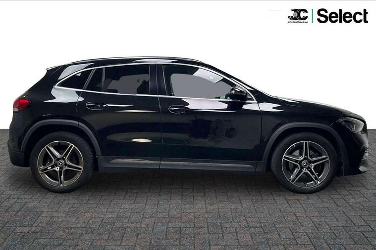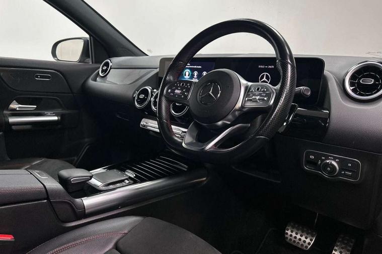 10.25 inch touchscreen central media display, 10.25" Digital instrument cluster display screen, Active lane keeping assist, Attention assist, Cruise control + speed limiter, Direct steering, DYNAMIC SELECT with a choice of driving modes (ECO, Comfort, Sport and Individual), ECO start/stop function, Fluid level warning indicator for fuel, oil, coolant and washer fluid, Hard-disk navigation, Hey Mercedes Voice activation, Lamp failure indicator, Mercedes me connect including emergency call system, accident recovery, breakdown and maintenance management, Mercedes me remote services, Multi function trip computer, Outside temperature gauge, Owners manual and service booklet in English, Pre-installation of private car share, Radio aerial integrated into front and rear windshields, Service indicator (ASSYST), Smartphone integration with Apple CarPlay and Android auto, Speed limit assist, Status display for rear seat belts in instrument cluster, Lowered comfort suspension, Rear axle multi-link, 2 USB ports (type C) in rear stowage compartment and one in front of center console, Bluetooth connectivity including audio streaming, DAB Digital radio, MBUX multimedia system, Media interface, Mercedes-Benz sound system - 100W, Adaptive brake lights, Aerial for GPS, Aluminium roof rails, AMG front and rear apron, AMG specific/dual flow exhaust pipes in chrome (non-functional), Automatic headlamp activation, Beltline strips and weather strip in chrome, Black grained claddings with chrome parts, Body colour bumpers, Body colour door handles, Body colour door mirrors, Car wash function, Dark privacy glass from B-pillar backwards, Electric front windows, Electric rear windows, Electrically adjustable and heated door mirrors with integrated LED indicators, Front bumper with underride guard in high gloss chrome, Heated glass rear windscreen + timer control, Heated windscreen wash system, Interior mirror with black reading lamps and frameless, LED high performance headlamps with integrated LED daytime running lights, LED tail lights in two piece design, LED third brake light, Matt titanium grey front and rear apron trim, Rain sensor windscreen wipers, Rear fog lights, Rear side wing doors, Rear wiper, Roof spoiler, Single lamella raditor grille with chrome dotted diamond grille and inlay, 12V power socket in centre console, 3 seat bench in 2nd row, 3 spoke multifunction sports steering wheel in nappa leather with flattened bottom and perforated grip area, 40:20:40 split folding rear seat backrests, Adjustable head restraints, Air conditioning - Two zone thermotronic luxury automatic climate control with display, Ambient lighting in front headrests, AMG floor mats in black with AMG lettering in front, Artico man-made leather/Microfibre Dinamica upholstery with red contrast stitching, Auto Mercedes-Benz child seat recognition sensor, Black roof lining, Brushed door pulls in silver chrome, Courtesy light in boot, Front centre armrest with stowage, Galvanished gear shift paddles on steering wheel, Heated front seats, illuminated door sills with changeable cover, Illuminated glovebox, Interior lighting - 64 colour Ambient lighting, Leather trimmed gearknob, Luggage net on driver/front passenger seat backrest, Manually height and reach adjustable steering column, Multi-gesture touchpad control on center console, Single front passenger seat, Sports pedals in brushed stainless steel with black rubber studs, Sports seats, Stowage compartment in centre console, Stowage compartment with retractable cover, Sunvisors with illuminated vanity mirrors, Twin front cup holders, Two outer rear seat isofix and top tether child seat fixing points, AMG body styling pack - GLA, Comfort seat pack - GLA Class, Interior lighting with light and sight pack - GLA, Load compartment pack - GLA, Mirror pack - GLA Class, Parking pack - GLA, 3 rear 3 point seatbelts, ABS with Brake Assist, Active bonnet pedestrain safety measure which detects an impact and raises bonnet by 65mm, Active brake assist includes forward collision warning system with autonomous braking, Adaptive brake assist with hold function and hill start assist, Bonnet with power domes, Brake pad wear warning indicator, Childproof locks manually operated for rear doors and electrically operated for rear power windows, Crash responsive emergency lighting, Driver and passenger head and side airbags, Drivers knee airbag, Dual stage driver/passenger airbags, Electronic parking brake, ESP curve dynamic assist, ESP with ASR, Front and rear seatbelt reminder, Front brake callipers with Mercedes Benz logo lettering on front, Front brake discs internally ventilated and perforated, Front passenger seat occupancy sensor, Sports braking system, Tyre pressure monitoring system, Warning triangle and first aid kit, Window airbags, Alarm system with immobiliser and interior protection -Thatcham category 1, Keyless Go starting function, Remote central locking and crash sensor with emergency opening function, Urban guard vehicle protection, Vehicle key with decorative surround in chrome, Carbon structure trim, Chrome air vent surrounds, 19" AMG 5 twin spoke light alloy wheels painted in high gloss black with high sheen finish, Summer tyres, Tirefit tyre sealant kit,