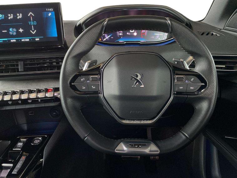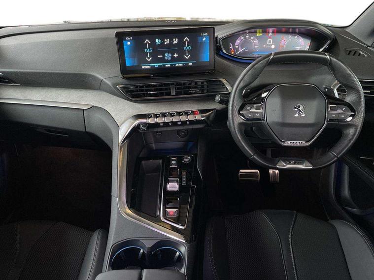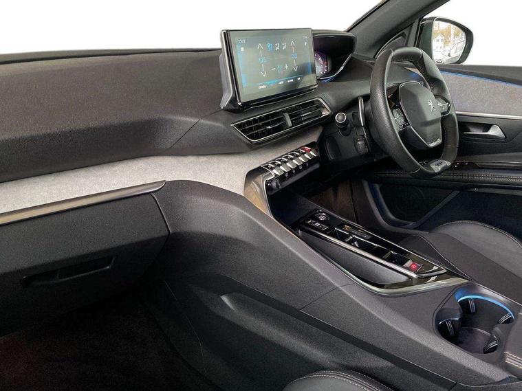 3D connected navigation with 10" HD touchscreen + voice recognition system, Blind spot detection system, Bluetooth telephone facility, Drive modes select (Eco, normal and sport), Driver Attention Alert level 3, Driving Time Warning (DAA1), Emergency services call system, Extended traffic sign recognition, Exterior temperature indicator with ice warning, Lane departure warning system, Lane Keeping Assistance (LKA) with road edge detection, Mirror screen with Apple CarPlay and Android auto, Multi function trip computer, PEUGEOT i-Cockpit with compact sports steering wheel, PEUGEOT i-Cockpit with configurable 12.3" Head-up digital instrument panel, PEUGEOT SOS and assistance, Rear parking sensor, Rear passenger USB charging sockets (x2) (type A), Speed limit recognition and recommendation, Dynamic stability control and electronic anti-skid system, DAB Digital radio, USB socket in front centre console, 2 X Rear number plate lights, Auto self levelling headlights, Automatic hazard light activation upon heavy brake application, Automatic triggered rear windscreen wiper in reverse gear, Black with chrome detailed front wing trim, Body colour door handles, Body colour rear roof spoiler with stainless steel edging trim, Body protectors (wheel arches + protection at bottom of doors) in black, Dark tinted rear side windows + tailgate window, Diamond Black door mirror shells, Electric heated folding door mirrors, Front windscreen wiper with magic wash cleaning system, Full LED headlights with fog mode, Gloss black B and C pillar and aerodynamic deflector trim, Gloss black front bumper air scoops, Gloss black rear cluster connecting strip, Gloss black windscreen trim, GT emblems on tailgate, Headlights left on audible warning, Heated rear windscreen with integrated antenna, High beam assist, LED daytime running lights in fang style, LED front indicator, LED side indicator lights integrated into door mirrors, LED third brake light, One touch electric front/rear windows with pinch protection, Rear LED Peugeot signature 'Claw Effect' lights with clear lens and scrolling LED direction indicators, Rear side wing doors, Twin exhaust effect trim, 1/3 to 2/3 split folding rear seats, 12V Sockets in dashboard, rear cabin and load area, 2 cupholders in front centre console, 2 x Rear reading spotlights, 2x Rear coat hooks, 3x Isofix child seat fittings in the front passenger and outer rear seats, 4 Grab handles retractable and damped, Aikinite stitching in armrest, gear lever and dashboard facia, Aluminium pedals, Blue ambient lighting for connecting zone, Blue ambient lighting to front door panels, central cup holders, Blue ambient lighting to headup instrument panel, Centre front armrest with butterfly wing opening and illuminated storage compartment, Driver seat manual adjustment (longitudinal and back rest angle), Dual zone automatic climate control, e-Toggle compact gear selector, Electric power steering with reach and rake adjustable steering column, Flocked front door pocket interior with blue ambient lighting, Flocked glovebox interior, Foldable front passenger seat with picnic table, Footwell illumination, Front interior light with 2 reading spotlights and rear interior light with timer, Front seat back map pockets, Gear shift indicator, Illuminated glove box, central storage area and load area, Illuminated vanity mirrors, Individual left and right controls in boot for seat folding, LED interior lighting in storage spaces and load area, LED roof interior lighting, Mistral floor mats with Aikinite contrast stitching, Mistral full grain perforated leather steering wheel with aikinite stitch detail and satin chrome 'GT' emblem, Rear armrest with ski flap and two cup holders, Rear bench seat with central armrest and ski hatch, Rear centre console ventilation system, Roof lining - Mistral black, Satin chrome dashboard trim, Satin chrome digital instrument panel, Satin chrome front door panel recess trim, Satin chrome interior door handles, Satin chrome scorpion's tail and toggle switch trim, Seatbelt not fastened audible and visual alert for front seats, Seatbelt unfastened on the move audible and visual alert for front and rear seats, Two position boot floor, Drive assist plus pack with front parking sensors - 3008, Visibility pack - 3008 GT, 3x Rear three-point retractable seatbelts with force limiters in the outer rear seats, ABS (Anti-lock Braking System) with EBD (Electronic Brakeforce Distribution) and EBA (Emergency Braking Assistance), Adaptive driver and front passenger airbags with passenger airbag deactivation function, Driver and front passenger side airbags, Electric child locking functionality on rear windows and doors, Electric parking brake, Front and rear curtain airbags, Front optimised safety headrests and 3 x rear retractable headrests with height adjustable, Front three point retractable seatbelts height adjustable with pre tensioners and force limiters, Front ventilated disc brakes and rear disc brakes, Hill start assist, Two tone horn, Automatic door locking when moving off, Electronic immobiliser, key operated exterior door lock from the left hand door, Perimetric and volumetric alarm with lift and tilt sensor, Peugeot Open and Go System, Remote control central locking with two plip keys, Michelin e-primacy 225/55 R18 102V class A+ tyres, Tyre repair and inflation kit,