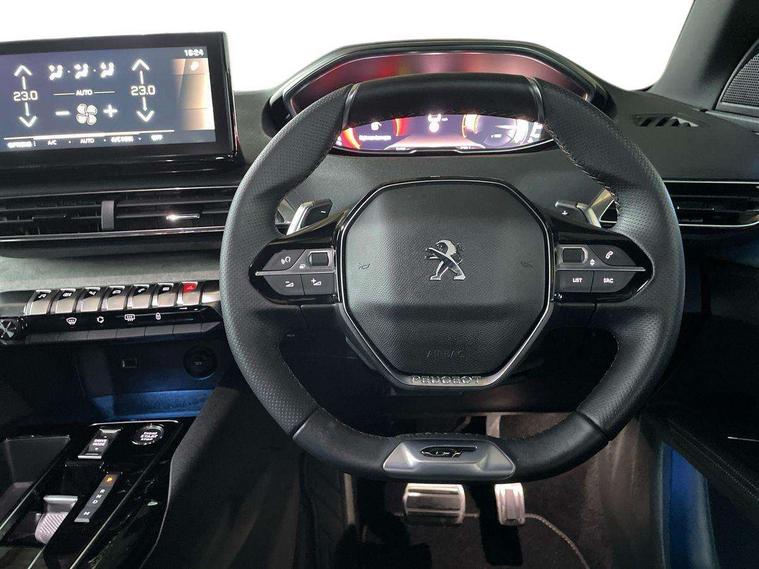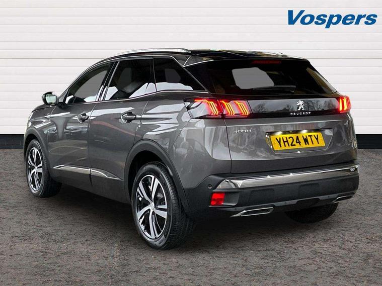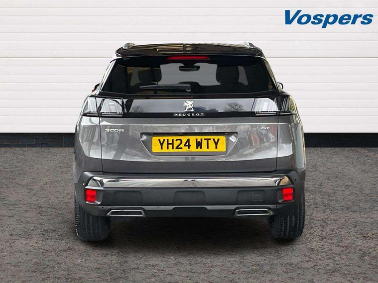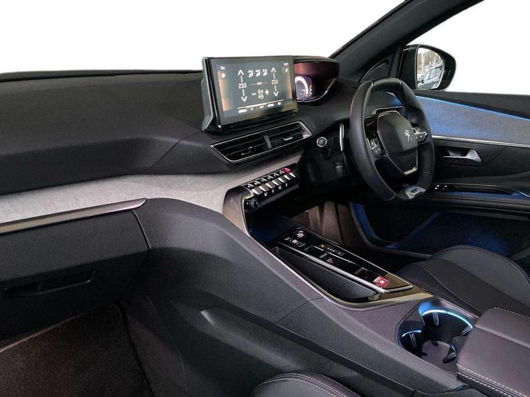 3D connected navigation with 10" HD touchscreen + voice recognition system, Blind spot detection system, Bluetooth telephone facility, Drive modes select (Eco, normal and sport), Driver Attention Alert level 3, Driving Time Warning (DAA1), Emergency services call system, Extended traffic sign recognition, Exterior temperature indicator with ice warning, Lane departure warning system, Lane Keeping Assistance (LKA) with road edge detection, Mirror screen with Apple CarPlay and Android auto, Multi function trip computer, PEUGEOT i-Cockpit with compact sports steering wheel, PEUGEOT i-Cockpit with configurable 12.3" Head-up digital instrument panel, PEUGEOT SOS and assistance, Rear parking sensor, Rear passenger USB charging sockets (x2) (type A), Speed limit recognition and recommendation, Dynamic stability control and electronic anti-skid system, DAB Digital radio, USB socket in front centre console, 2 X Rear number plate lights, Auto self levelling headlights, Automatic hazard light activation upon heavy brake application, Automatic triggered rear windscreen wiper in reverse gear, Black with chrome detailed front wing trim, Body colour door handles, Body colour rear roof spoiler with stainless steel edging trim, Body protectors (wheel arches + protection at bottom of doors) in black, Dark tinted rear side windows + tailgate window, Diamond Black door mirror shells, Electric heated folding door mirrors, Front windscreen wiper with magic wash cleaning system, Full LED headlights with fog mode, Gloss black B and C pillar and aerodynamic deflector trim, Gloss black front bumper air scoops, Gloss black rear cluster connecting strip, Gloss black windscreen trim, GT emblems on tailgate, Headlights left on audible warning, Heated rear windscreen with integrated antenna, High beam assist, LED daytime running lights in fang style, LED front indicator, LED side indicator lights integrated into door mirrors, LED third brake light, One touch electric front/rear windows with pinch protection, Rear LED Peugeot signature 'Claw Effect' lights with clear lens and scrolling LED direction indicators, Rear side wing doors, Twin exhaust effect trim, 1/3 to 2/3 split folding rear seats, 12V Sockets in dashboard, rear cabin and load area, 2 cupholders in front centre console, 2 x Rear reading spotlights, 2x Rear coat hooks, 3x Isofix child seat fittings in the front passenger and outer rear seats, 4 Grab handles retractable and damped, Aikinite stitching in armrest, gear lever and dashboard facia, Aluminium pedals, Blue ambient lighting for connecting zone, Blue ambient lighting to front door panels, central cup holders, Blue ambient lighting to headup instrument panel, Centre front armrest with butterfly wing opening and illuminated storage compartment, Driver seat manual adjustment (longitudinal and back rest angle), Dual zone automatic climate control, e-Toggle compact gear selector, Electric power steering with reach and rake adjustable steering column, Flocked front door pocket interior with blue ambient lighting, Flocked glovebox interior, Foldable front passenger seat with picnic table, Footwell illumination, Front interior light with 2 reading spotlights and rear interior light with timer, Front seat back map pockets, Gear shift indicator, Illuminated glove box, central storage area and load area, Illuminated vanity mirrors, Individual left and right controls in boot for seat folding, LED interior lighting in storage spaces and load area, LED roof interior lighting, Mistral floor mats with Aikinite contrast stitching, Mistral full grain perforated leather steering wheel with aikinite stitch detail and satin chrome 'GT' emblem, Rear armrest with ski flap and two cup holders, Rear bench seat with central armrest and ski hatch, Rear centre console ventilation system, Roof lining - Mistral black, Satin chrome dashboard trim, Satin chrome digital instrument panel, Satin chrome front door panel recess trim, Satin chrome interior door handles, Satin chrome scorpion's tail and toggle switch trim, Seatbelt not fastened audible and visual alert for front seats, Seatbelt unfastened on the move audible and visual alert for front and rear seats, Two position boot floor, Drive assist plus pack with front parking sensors - 3008, Visibility pack - 3008 GT, 3x Rear three-point retractable seatbelts with force limiters in the outer rear seats, ABS (Anti-lock Braking System) with EBD (Electronic Brakeforce Distribution) and EBA (Emergency Braking Assistance), Adaptive driver and front passenger airbags with passenger airbag deactivation function, Driver and front passenger side airbags, Electric child locking functionality on rear windows and doors, Electric parking brake, Front and rear curtain airbags, Front optimised safety headrests and 3 x rear retractable headrests with height adjustable, Front three point retractable seatbelts height adjustable with pre tensioners and force limiters, Front ventilated disc brakes and rear disc brakes, Hill start assist, Two tone horn, Automatic door locking when moving off, Electronic immobiliser, key operated exterior door lock from the left hand door, Perimetric and volumetric alarm with lift and tilt sensor, Peugeot Open and Go System, Remote control central locking with two plip keys, Michelin e-primacy 225/55 R18 102V class A+ tyres, Tyre repair and inflation kit,