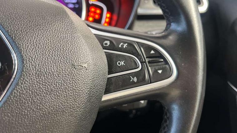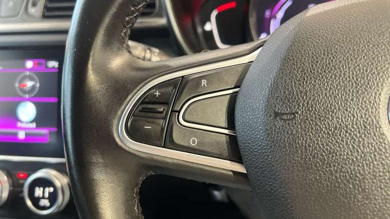 Blind spot warning with lateral sensors, Cruise control + speed limiter, Digital speedometer with 7 TFT screen, Door/boot open warning light, Eco mode, Exterior temperature indicator, Gear change indicator, Hands free parking system with 360 degree parking sensors, Lane departure warning system, Low fuel level warning light, Multi function trip computer, Oil level gauge, Over speed and traffic sign recognition, PAS, R-Link 2 Multimedia system + 7" touchscreen, TomTom + West European Map, DAB/FM/AM radio, bluetooth + hands free, USB/AUX, voice control, Rev counter, Smartphone integration, Bose sound system with 7 speakers/digital amplifier + 1 Subwoofer, Fingertip controls for audio system, Two rear USB sockets, Adamantium front and rear skid plates, Auto dimming rear view mirror, Automatic headlights, Automatic high/low beam, Automatic windscreen wipers with variable speed adjustment, Body colour door handles, Body coloured bumpers, Body coloured door mirrors, Bodyside mouldings with chrome inserts, Chrome fog light surround, Chrome front grille, Chrome roof rails, Chrome window surround, Electric adjustable/heated/folding door mirrors, Extra tinted glass in rear windows and tailgate, Fixed panoramic glass sunroof, Flank protection, Front and rear electric windows, Front and rear towing rings, Heated rear windscreen, Integrated C shape indicators with side repeaters, Integrated fuel filler cap, LED daytime running lights, LED front fog lamps with cornering function, LED high and low beam headlights with LED turn indicators, Rear wiper, Shark fin antenna, Side and boot kick plates, 12v socket in front, 3 height adjustable rear headrests, 3 seat rear bench, 60/40 split folding rear seat, Accessory power point, Adjustable dashboard illumination, Air recirculation system, Centre rear armrest with cup holder, Driver and front passenger seat cushion extension, Driver sunblind with illuminated mirror and ticket holder, Driver's seat with lumbar adjustment, Driver/passenger reading lights, Dual zone automatic climate control, Easy life quick folding rear seat, Electric adjust driver's seat, Front courtesy lights, Front footwell illumination, Front/rear floor mats, Heated front seats, Height adjustable front headrests, Height adjustable passenger seat, Height/reach adjust steering wheel, Illuminated boot, Illuminated centre console, ISOFIX child seat anchorage points attached on outer rear seats, Leather steering wheel, Multi positional boot floor, Pollen filter, Rear courtesy lights, Rear passenger air vents, Sliding front centre armrest, Storage glovebox, ABS/EBD, Advanced emergency braking system, Driver/passenger 2 stage auto adaptive airbags, Electronic parking brake, ESP with ASR and UCL (understeer control logical), Front and rear curtain airbags, Front lateral airbags, Front seat belts warning, Height adjustable front seatbelts with double pretensioners, Hill start assist, Passenger airbag deactivation system, Rear seatbelt warning indicator, Side impact protection, Three point rear center seatbelt, Traction control, Tyre pressure monitor, 3 Button retractable key, Anti-drill door locks/ignition barrel, Deadlocks, Insurance approved Cat 1 alarm system, Insurance Approved Immobiliser, Key card hands free with walk away lock function, RAID (Renault Anti-Intruder Device) with automatic door locking, Remote central locking, 19" Poseidon diamond cut alloy wheels,