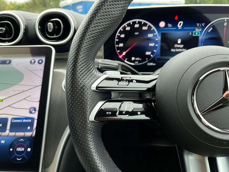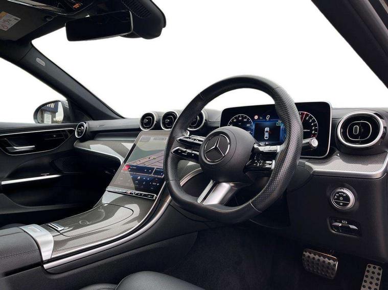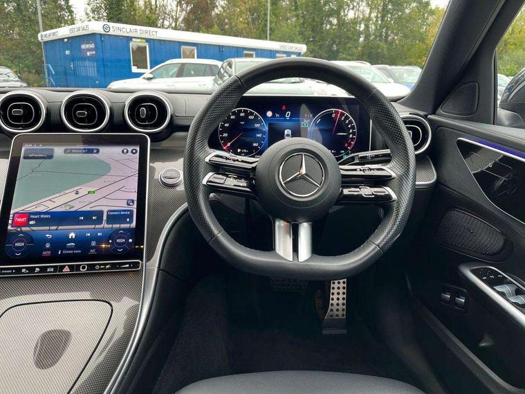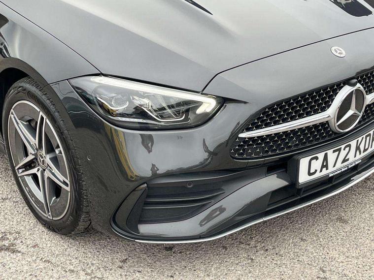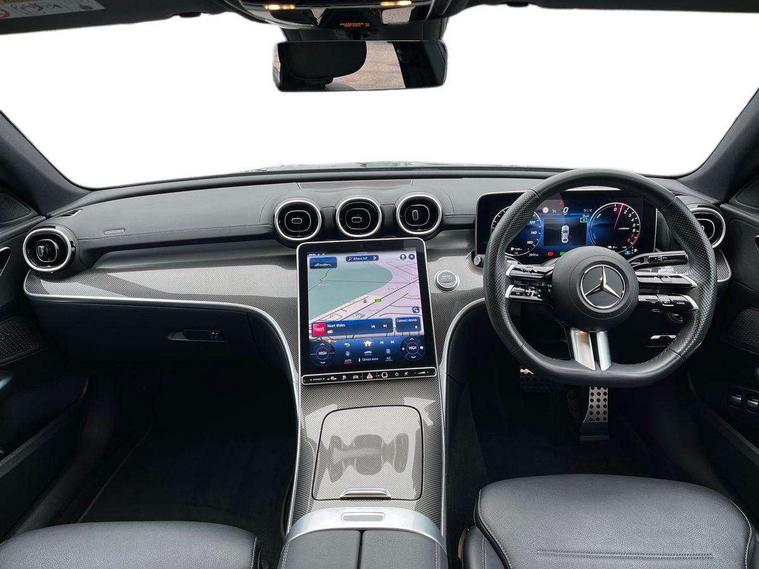 11.9" high resolution multimedia colour display, 12.3" digital instrument cluster display, Acoustic ambient protection, Active blind spot assist, Active brake assist plus, Active lane keeping assist, AMG DYNAMIC SELECT with a choice of driving modes (Slippery, Comfort, Sport, Sport+, Individual), Attention assist, Cruise control with speedtronic variable speed limiter, E-call, Extended MBUX functions, Finger print sensor, Fluorescent jacket for driver, MBUX navigation premium, MBUX voice control activated by keywords "Hey Mercedes", Mercedes connect me, Mercedes me remote services, Outside temperature gauge, Pre-installation for digital key transfer, Remote boot release, Service indicator (ASSYST), Smartphone integration, Sports direct steer speed sensitive steering, Status display for rear seat belts in instrument cluster, 11 kW AC onboard charger, 5m charging cable for household socket (mode 2), 5m charging cable for wall box/public charging stations(mode 3), 66l fuel tank with increased capacity, 9G TRONIC 9 speed automatic transmission, Agility control sports suspension and lowered by 15 mm, Petrol Particulate Filter, Sporty engine sound system, DAB Digital radio, MBUX multimedia system, Adaptive brake lights, Adaptive high beam assist, AMG body styling front apron, rear apron and side skirts, AMG front bumper with sporty air intakes and chrome elements, AMG rear bumper with high gloss chrome elements, AMG side skirts in vehicle colour, B-pillar trim in glossy black, Body coloured bumpers, Body coloured door mirrors, Chrome beltline trim, Daytime running lights, Electric windows with one touch opening/closing and obstruction sensors, Electrically adjustable and heated door mirrors, Green tinted glass, LED high performance headlamps, LED Indicators, LED tail lights, LED third brake light, Powerdomes on bonnet, Privacy glass, Radiator diamond grille with integrated Mercedes Benz star and louvre silver with chrome pins, Radio aerial integrated into rear window, Rain sensor with automatic windscreen wiper activation, Rear boot, Rear side wing doors, Side windows surround in polished aluminium, Two visible exhaust pipes integrated into rear bumper, 3 seat bench in 2nd row, 3 spoke flattened bottom AMG multifunction steering wheel in black nappa leather with chrome inserts and perforated leather in grip area, 40:20:40 split folding rear bench seat, AMG sports seats, Artico man-made leather upholstery, Audio and onboard settings control on multifunction steering wheel, Auto Mercedes-Benz child seat recognition sensor, Black air vents with silver chrome elements, Black floor mats with AMG lettering, Black roof liner, Door trim elements high gloss black with silver chrome surroundings and switches, Double cupholder in centre console, Folding rear seat backrest, Front and rear head restraints, Front centre armrest with storage compartment, Front door sills with Mercedes Benz lettering, Gearshift paddles on steering wheel, Heated front seats, Illuminated glove compartment stowage, Manually height and reach adjustable steering column, Overhead control unit in high gloss black, Rear top tether child seat ISOFIX attachment, Single front passenger seat, Sports pedals with stainless steel surfaces and rubber studs, Sunvisors with illuminated vanity mirrors, THERMATIC 2 zone automatic climate control, Interior lighting package - C Class, Mirror pack - C Class, Parking package with reversing camera - C Class, Seat comfort pack - C Class, Stowage space pack - C Class, USB package - C Class, 3 rear 3 point seatbelts, Active bonnet pedestrian safety measure which detects an impact and raises bonnet, Adaptive brake system with HOLD function and brake drying in the wet, Anti-lock braking system (ABS), Black seat belts, Brake calipers with Mercedes-Benz lettering + perforated front brake discs, Child proof door locks, Drivers knee airbag, Drivers pelvis airbag, Dual stage driver/passenger airbags, Electric parking brake, Electronic Stability Programme (ESP), Front centre airbag between driver and front passenger seats, Front side airbags, Larger brake discs on front axle, Rear seatbelt warning indicator, Sports braking system with perforated front disc brakes, Tyre pressure monitoring system, Warning triangle and first aid kit, Window airbags for driver, front passenger and rear passenger, Central locking with interior switch, automatic locking and crash sensor with emergency opening function, Chrome surround in electric key, URBAN GUARD vehicle protection (Thatcham Category 1) consisting of break-in, anti-theft alarm system (ATA), interior monitoring and tow-away protection, Artico man-made leather dashboard with contrast stitching, Centre console trim in metal weave, 18" AMG 5 spoke design aerodynamically optimised alloy wheels painted in tantalite grey with high sheen finish, Summer tyres, TIREFIT with tyre inflation compressor,