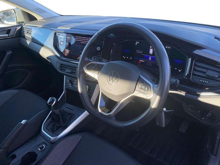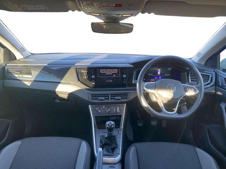 Adaptive cruise control without follow-to-stop and speed limiter, Bluetooth mobile phone interface, Driver alert system, Emergency call service, Front assist system, Power assisted speed sensitive steering, Preparation for We connect and We connect plus, Speedo and rev counter, electronic odometer, trip, service interval display and fuel gauge, Standard rear axle, Travel Assist - Lane keeping system and traffic jam assist, Travel assist including emergency assist, Trip computer, Warning signal and warning light for front and rear seatbelts not fastened, Washer fluid level indicator, Wireless app connect, Front wheel drive, Rear shock absorpion, Start-stop system with battery regeneration (recuperation - energy recovery during braking), DAB Digital radio, Diversity antenna for FM reception, Front and rear 6 speakers, Automatic dimming interior rear view mirror, Body colour bumpers, Body colour door handles, Body colour door mirrors, Electric front windows, Heat insulating darkened glass in side and rear windows, Heat insulating glass windscreen, Power folding adjustable/heated exterior mirrors and front passenger exterior mirror lowering function, Rain sensor, Rear electric windows, Rear fog light, Rear side wing doors, Rear windscreen washer and wiper with interval delay, Third brake light, 12V power socket in centre console, 2 front and 2 rear reading lights, 2 USB-C ports in the front, 2 USB-C charging sockets on the center console in the rear, 3 rear head restraints, 60/40 split folding rear seat and rear seat bench not split, Ceramique headliner, Chrome plated radiator grille inserts, air vent surrounds and light switch surrounds, Door and side trim panel, Driver and front passenger seat height adjustment, Driver/passenger sunvisors with illuminated vanity mirrors, Front centre armrest, Front seat backrest storage pockets, Front standard seats, Handbrake lever handle in leather, Hartley/Thomas cloth upholstery, Isofix child seat preparation easy-fit (for two outer rear seats, and front passenger seat) compatible with I-size, Leather trimmed gear knob, Luggage compartment cover, Luggage compartment floor, Luggage compartment lighting, Multifunction steering wheel, Single front passenger seat, Standard pedal cluster, Light and vision pack - Polo, 3 point height adj front seatbelts + pretensioners, 3x3 point rear seatbelts, ABS, Driver and front passenger airbag with front passenger airbag deactivation, Drivers and front passengers safety optimised head restraints, ESC (Electronic stability control) + EDL (Electronic Differntial lock) and ASR (Traction control), Extended and predictive pedestrian/ cyclist protection, Front curtain and side airbags with center airbag, Front disc brakes, Hill hold control, Manual child lock in rear doors, Rear drum brakes, Single tone horn, Tyre pressure loss indicator, Alarm with interior protection, Anti-theft alarm system with interior monitoring, backup horn, and towing protection, Anti-theft wheel bolts, Electronic engine immobiliser, Lava stone black gloss/matt decorative inserts in dash and front door panels, Low rolling resistance tyres,