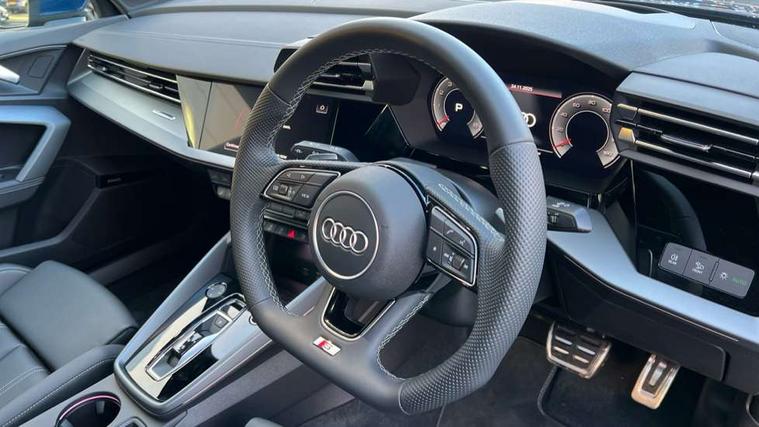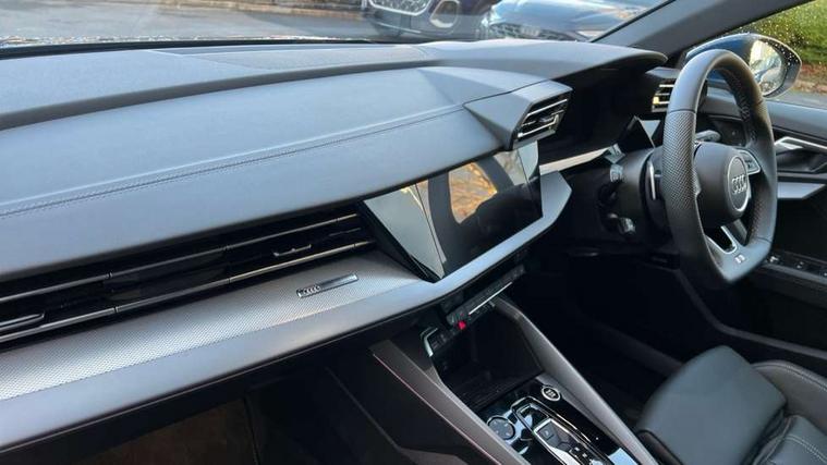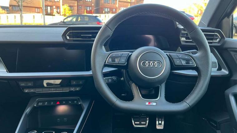 Adjustable speed limiter, Audi drive select, Audi smartphone interface with app store includes wireless Apple carplay, Android auto and Amazon alexa integration, Audi virtual cockpit plus - 12.3" full HD resolution dynamic digital instrument cluster, Automatic start/stop system with recuperation, Bluetooth interface, Camera based traffic sign recognition, Collision avoidance assistant, Cruise control, Distraction and Fatigue warning, e-Call (emergency call), Electromechanical power speed sensitive steering, Emergency assist, Lane departure warning system, MMI Navigation Plus with high resolution 10.1" colour touch screen display, Park Assist with parking system Plus, Service indicator, Trip computer, Voice control system with natural language interaction, Sports suspension, Audi Phonebox light with wireless charging, Audi sound system - 10 loudspeakers including centre loudspeaker and subwoofer, DAB Digital radio, USB ports with charging function in the rear, Acoustic glass windscreen, All weather light, Aluminium window trim, Auto dimming frameless rear view mirror, Automatic dynamic range control, Body colour exterior mirrors, Chrome exhaust tailpipes, Dipped beam, main beam, position light and turning light, Electrically adjustable/heated/folding/auto dimming door mirrors with integrated LED indications + kerb view function for passenger side, Exterior model badging, Front and rear side air inlets in grained matt black with dark liquid chrome frame, Front electric windows, Front radiator grill in high gloss dark chrome, Heat insulating glass windscreen, Illuminated door sills with aluminium inserts at the front with S logo, Intersection light, LED 3rd brake light, LED brake lights, LED daytime running x3, LED headlights with LED rear lights and dynamic rear indicators, LED rear number plate lights, LED reverse light, LED tail lights, Light and rain sensors, Manoeuvring light, Motorway light, Privacy glass - dark tinted rear window, rear door and side windows, Rear boot, Rear diffuser and grill in grained matt black with inlay in dark liquid chrome, Rear electric windows, Rear side wing doors, S line bumpers, Side S line emblems on front wings, Side sill trim in dark liquid chrome, Static cornering light, 12V socket and storage compartment in front centre console, 3 seat bench in 2nd row, 3 spoke flat bottomed leather multifunction sport steering wheel with gear shift paddles, 3-zone deluxe automatic air conditioning, 4 way electrically adjustable lumbar support for driver and front passenger, 40/20/40 split folding rear seat bench, Black cloth headlining, Black front and rear floor mats, Front and rear centre armrest in artificial leather with contrasting stitching on armrests and instrument panel, Front and rear headrests, Heated front seats, Height and reach adjustable steering wheel, Manual boot compartment lid, Manually adjustable front seats, Rear centre armrest with cupholder, S badging on the steering wheel, Seat side bolsters, Single front passenger seat, Stainless steel pedals and front footrest in black, Twin leather upholstery with front sports seats S embossed logo, Aluminium interior elements pack - A3, Multi-coloured LED interior lighting package with Multi-coloured contour lighting of instrument panel - A3, 3x3 point rear seat belts, Driver and front passenger airbag with passenger airbag deactivation, Electronic Stabilisation Control (ESC) including ABS, ASR and EDL, First aid kit with warning triangle and 2 safety vests, Front side airbags with head airbags and interaction airbag, Hill hold assist, Pre-sense front with pedestrian and cyclist detection, Seatbelt monitoring, Tyre pressure loss indicator, Anti theft alarm, Anti-theft wheel bolts, Electronically operated child locks, Immobiliser, Remote central locking with safelock, Black dashboard, Inlay in dark aluminium spectrum,