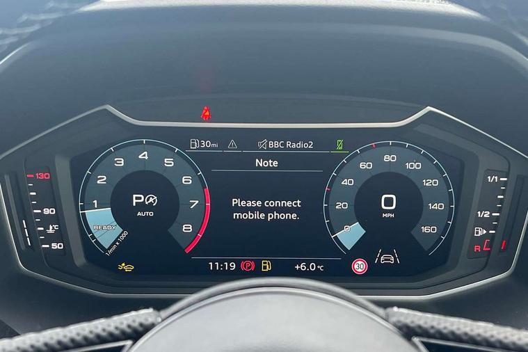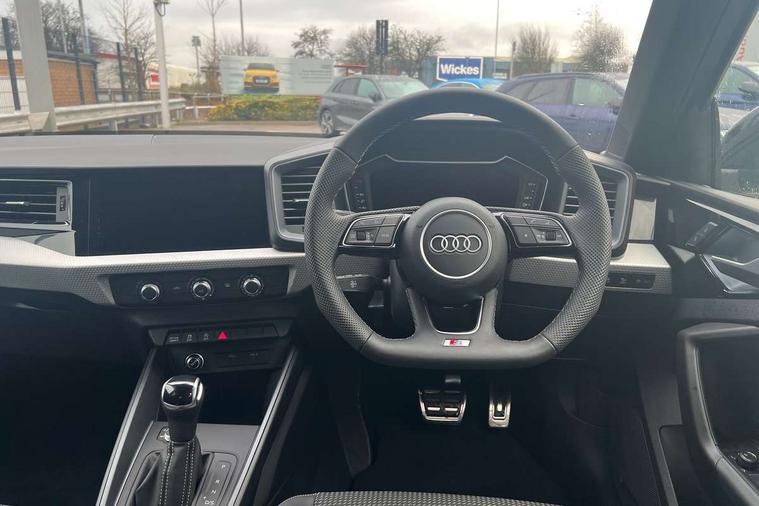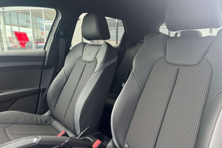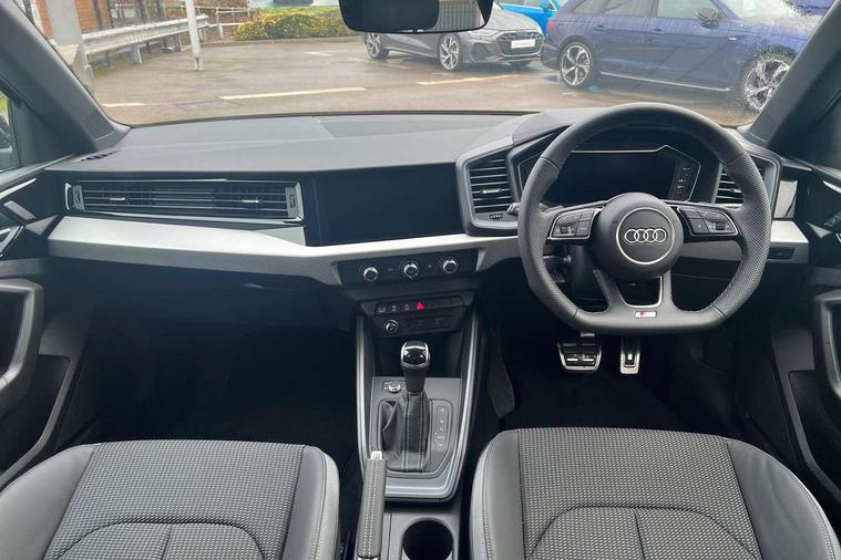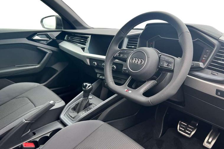 10.25" Digital instrument cluster display classis style instrument dials + speed, odometer, time, outside temperature, telephone menu + fuel level warning, Advanced driver attention and drowsiness monitor, Audi connect emergency call and service, Audi drive select, Audi remote connect and control, Bluetooth interface, Camera based traffic sign recognition, Cruise control, Driver's information system, Electromechanical power steering, Lane departure warning system, Rear parking sensor, Service interval indicator, Smartphone interface, Speed limiter, Start stop system with recuperation, Voice control system, Washer fluid level indicator, Sports suspension, 2 x USB type C connection points, 6 loudspeakers, DAB Digital radio, MMI radio plus with 10.1" colour MMI display screen and MMI touch, Auto dimming rear view mirror, Black door mirror housings, Black side skirts, Body coloured bumpers, Door sill trims with aluminium inlays and logo, Electric front and rear windows, Electrically adjustable, heated, folding door mirrors with integrated LED side indicator, Front side air inlets in grained matt black and C frame in anthracite black, Front wing badges, Headlight cleaning system, Heat insulating glass windscreen and side windows, Heated rear windscreen, High level LED brake light, LED daytime running lights, LED headlights with range control LED rear lights + dynamic rear indicators, Light and rain sensors, Privacy glass, Radiator grille and rear diffuser in matt anthracite black, Radiator protective grille frame in matt aluminium silver, Rear fog lights, Rear side wing doors, Rear wiper, Side front spoiler lips in grained matt black, 12V socket in centre console with two cup holders, 3 rear seats with headrests, 3 seat bench in 2nd row, 3 spoke flat bottomed multi-function plus leather steering wheel with S badging, grips in preforated leather, contrast stitching and paddle shift, 40:60 Split folding rear seat or fully collapsed, Black carpets, Black cloth headlining, Front and rear velour black floor mats with contrast stitching in fine silver, Front head restraints, Front passenger seat, Height and reach adjustable steering wheel, Interior lighting includes roof module, front and rear reading lights and right luggage compartment lighting, ISOFIX child seat mounting for front passenger and outer rear seats including top tether attachment point of outer rear seats, Leather gear knob with aluminium trim, Leather handbrake grip, Manual air conditioning, Manual height adjustable for driver and front passenger seat, Manually adjustable lumbar support in front seats, Stainless steel pedals, Ambient lighting package - A1, Black styling pack - A1 Sportback Black Edition, Luggage compartment pack - A1, 3x3 point rear seatbelts, Audi pre-sense front with pedestrain and cyclist recognition, Brake assist function, Driver and front passenger airbag with front side and head airbags, Electronic Stability Control including ABS, EBD, ASR and EDL, Front passenger airbag deactivation switch, Hill hold assist, Manual rear child locks, Seatbelt height adjustment for front seats, Seatbelt monitoring, Tyre pressure loss indicator, Warning triangle and first aid kit, Anti theft alarm, Anti theft wheel bolts, Immobiliser, Remote control key with safelock, Aluminium trim for control switches, air vents and digital instrument cluster, Black dashboard, Silver grey inlays polygon structure in diamond paint finish, Structured grey accent surfaces insert of air vents, interior door handle recesses and centre console in quartz paint finish,