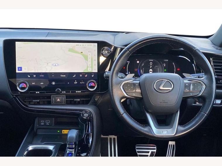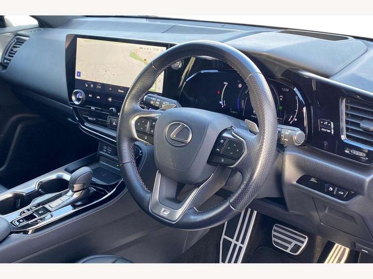 360 degree panoramic view monitor, 5 Driving modes EV/Normal/Eco/Sport/Sport S+, 7" display in instrument binnacle, Blind spot monitoring with rear cross traffic alert, Bluetooth telephone connectivity, eCall emergency system, Electric speed sensitive power steering, Head up Display, Intelligent parking sensors - 4 front and 4 rear, Lane change flasher function, Lexus link connect - Cloud based navigation, cloud based voice assistant, always online, 14" HD touchscreen, embedded nav and faster CPU, Push button starter, Reversing camera with back guidelines, Service interval indicator, Tazuna cockpit with 7" improved meters display, 10" HUD and capacitive touch steering wheel switches, Wireless Apple CarPlay and wired Android Auto, Wireless Smartphone charger, 6.6 kW onboard charger, All Wheel Drive (AWD), AVS - Adaptive variable suspension, Hybrid automatic transmission, Sports suspension with lateral performance dampers, Vehicle Dynamics Integrated Management (VDIM), Vehicle Stability Control (VSC), 10 speakers, 4 USB ports - 2 front, one USB C, 2 rear USB C, DAB Digital radio, 4 eye LED headlight with adaptive high beam, Auto dimming interior rear view mirror, Automatic headlights, Black roof rails, Double hidden exhaust pipes, F SPORT exterior styling - Black mesh front grille, enhanced side rockers, metallic front bumper, badging, black outside mirror covers, Front and rear one touch power windows, with anti-jam protection, Headlight cleaners, Heated, auto-folding, auto-dimming outside mirrors with reverse tilt function and turn indicators, Illuminated door handles with puddle light, LED brake lights and rear lights with emergency brake signal, LED cornering lights, LED daytime running lights, LED front fog lights, LED Indicators, Power back door with kick sensor, Privacy glass, rear doors and tailgate, Rain sensor windscreen wipers, Rear side wing doors, Rear wiper, 12V accessory port centre console and luggage compartment, 2 cupholders in front centre console, 2 way electrical lumbar adjustment for driver, 2 x fixed shopping bag hooks in boot, 2 x sun visors with vanity mirror and lamp, 3 seat bench in 2nd row, 4 x tie down hooks in the boot, 60/40 split folding rear seat, 8 way driver/passenger electrically adjustable front seats, Adjustable rear seat backrest, Card holder installed in driver and passengers sun visors, Centre armrest with storage box, Driver seat memory function, Dual zone climate control air conditioning system with humidity sensor, F Sport aluminium sports pedals, F SPORT leather gearlever, F SPORT seats - Leather upholstery, Front and rear head restraints, Front and rear textile carpet mats, Front passenger seat, Heated and ventilated front seats, Heated rear seats, Heated steering wheel, LED ambient lighting, LED interior illumination, Power adjustable F SPORT leather steering wheel with paddle shifts, Rear centre armrest with 2 cupholders, Whiplash Injury Lessening (WIL) feature (active headrest) for seats, 2 x Isofix child rear seat restraints, 3 point ELR front seatbelts with pretensioners, 3x3 point rear seat belts, ABS, Adjustable seat belt anchor points, Driver and front passenger 2 stage airbag, Driver/front passenger side airbags, Drivers knee airbag, E-Latch with safe exit assist, EBD + Brake Assist, ECB (Electronically Controlled Brake System), Electronic parking brake, Front and rear curtain shield airbags, Front center airbag, Front passenger seat cushion airbag, Hill assist control, Lexus safety system - dynamic radar cruise control, pre collision system day and night, lane tracing assist, road sign, OTA, Manual rear child locks, Passenger airbag cut-off device, Traction control, Tyre pressure warning, 2 x remote key fobs, Anti-theft system with alarm, intrusion sensor, glass breakage sensor, tilt sensor and engine immobiliser, Locking wheel nuts, Smart keyless entry, Speed sensitive auto door locking, Two motion door lock with double lock, VIN Window etching, Aluminium inlays,