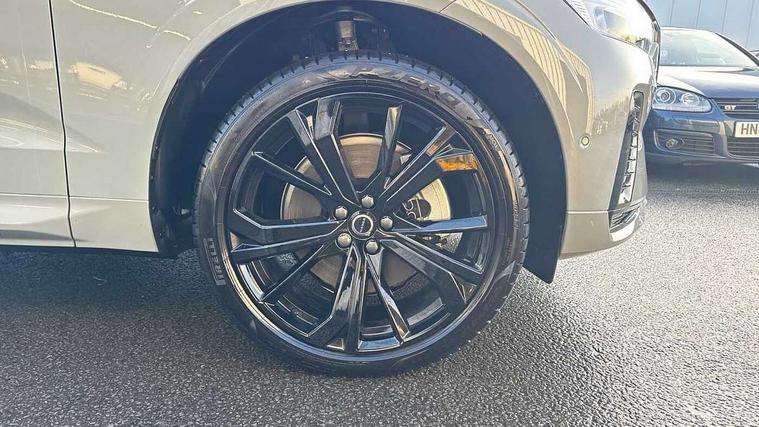 11.2" centre console touch screen, 12.3" Progressive Driver Display, 360 degree surround view parking camera with side proximity sensors, Adaptive cruise control, Adjustable steering wheel force, Android auto (Wired), Apple carplay (wired), Bluetooth handsfree system, Driver alert control with lane keeping aid, Emergency services call system, Front and rear park assist, Google Automotive Services, Intelligent speed assistance, Oncoming Lane Mitigation, PAS, Power operated tailgate with handsfree opening and closing, Service interval indicator, Speed limiter, Speed sensitive steering, Trip computer, Volvo cars services with app, Volvo on call with App, Wireless/Inductive Mobile Phone Charging, 8 speed automatic transmission with start/stop + manual change functions, DAB Digital radio, Premium Sound by Harman Kardon, dirac unison, dolby pro logic II surround sound, 13 speakers/600W output and fresh air subwoofer, Steering wheel remote infotainment controls, Adaptive brake lights with high level LED brake lights, Auto dimming interior + exterior mirrors, Automatic headlight levelling system, Automatic LED Headlights + Active high beam incorporating daytime running lights, Dark tinted windows for rear side windows and cargo area, Electric adjustable/heated/auto power folding door mirrors, Electric front+rear windows, Front aluminium tread plates, Heated front windscreen, High gloss black door mirrors and window surround, High gloss black front and rear bumper decoratives, High gloss black front grille, Surround, Strikethrough and Ironmark, High gloss black rear model, engine and volvo logo badges, Home safe and approach lighting, Integrated roof rails in high gloss black, Puddle lights, Rain sensor with automatic windscreen wiper activation, Rear side wing doors, Rear wiper, Roof antenna, Roof spoiler, Tinted windscreen, Visible VIN plate, 12V socket in front tunnel console and luggage compartment, 3 seat bench in 2nd row, 3 Spoke tailored steering wheel with chrome trim, 4 Zone electronic climate control, A-pillar parking ticket holder, Air purifier particulate matter (PM) 2.5 filter, B Pillar ventilation, Bright metal luggage scuff plate, Centre console cupholders and storage, Charcoal floor mats, Contour sports seats with nappa soft leather/textile upholstery, Front and rear courtesy lights, Front and rear door pocket illumination, Front cupholder illumination, Front footwell illumination, Front reading lights, Front seat cushion extensions, Glovebox compartment with illumination, Head restraints for all seats, Heated front seats, Heated steering wheel, Height/reach adjustable steering column, Illuminated luggage compartment, Illuminated vanity mirrors + ticket holder, Inner door release handle illumination, ISOFIX attachment on outer rear seats, Load cover, Load protection net, Multi directional lumbar support, Power driver seat with memory + exterior mirrors memory, Power height adjustable passenger seat, Power passenger seat with memory, Rear armrest with cupholder, Rear footwell and front and rear side step illumination, Rear reading lights, Rear seat concealed storage, Single front passenger seat, Tailgate illumination and ambient door lighting, Underfloor stowage compartment, Versatile split folding rear seat - 60/40, Driver assist pack without Adaptive cruise control - XC60, 5 three point seatbelts, City safety with steering support with Pedestrian + cyclist + front collision warning with full auto brake and rear auto brake, Drivers knee airbag, Dual stage driver/passenger airbags, Electronic parking brake with auto hold, First aid kit, Front seats SIPS airbags, Hill descent control - Off-road drive mode, Hill start assist, IC (Inflatable Curtains) - Full Length, Passenger airbag cut-off device, Power child locks on rear doors, Road sign information display, Run off Road Mitigation, Run off Road Protection, Seatbelt reminder and pretensioners, SIPS (Side Impact Protection System), Slippery road and hazard light alert, Stability and Traction Control with Spin control, Engine Drag Control and Corner Traction Control, Tyre pressure monitoring system, Vehicle deceleration control with Anti-lock Brake System, Electronic Brake Distribution and Emergency Brake Assist, Warning triangle, WHIPS whiplash protection system - front, Anti-theft alarm including immobiliser/volume sensor + level sensor, Key integrated remote control central locking + fuel flap with deadlocking system and auto open/close power windows, Keyless Drive (includes Keyless Entry and Keyless Start), Locking wheel nuts, Private locking for tailgate, 21" 5 Double spoke high gloss black alloy wheels, Summer tyres,