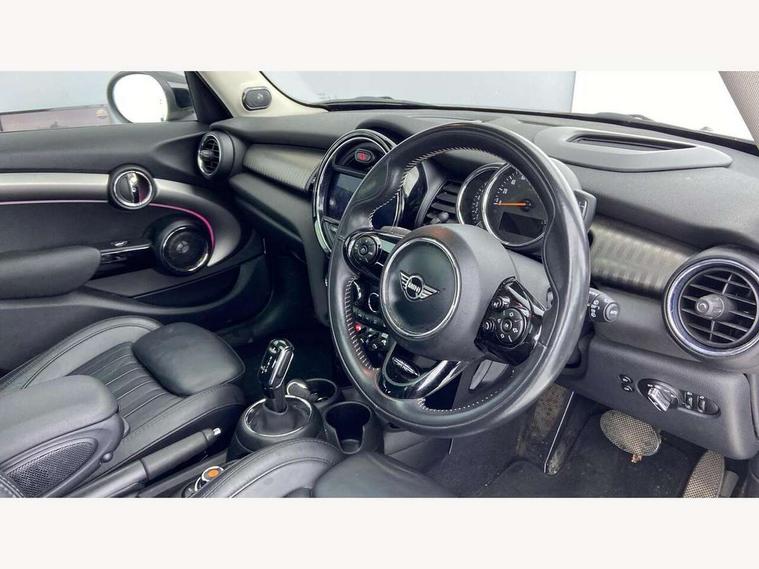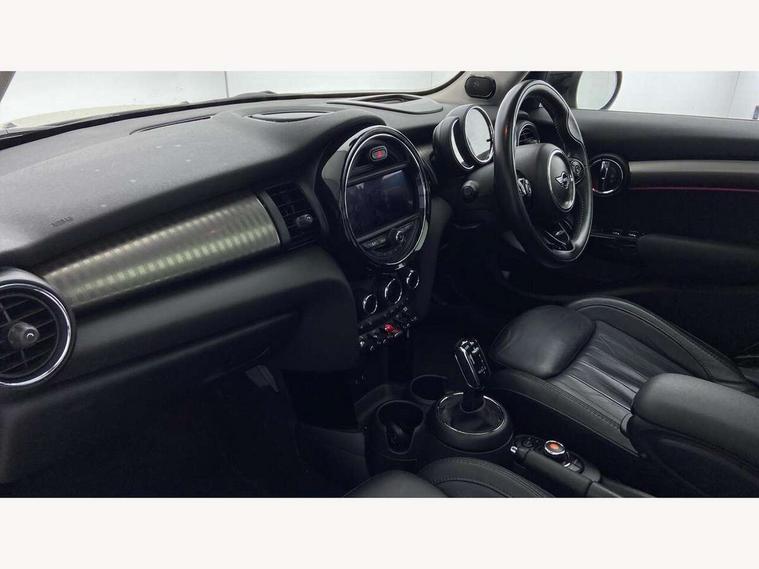 Automatic start/stop function with brake energy recuperation, Compatible mobile phone bluetooth with audio streaming, Electro-mechanical speed dependant steering assistance, Instrument cluster, Mini E-call, MINI TeleServices, On board computer, Service interval indicator, Double Vanos system, Fully variable valve control, High precision injection, Steptronic transmission with double clutch, 6.5" touchscreen with LED ring, FM tuner and DAB digital radio, Automatic headlight activation switch, Body colour fuel filler cap, Chrome border high gloss black slats radiator grille, Chrome line exterior, Dynamic brake lights, Electric front+rear windows, Heated rear window, Heated windscreen washer jets, LED headlight with closed ring and daytime driving lights, Left exhaust tailpipe with chrome finisher, Metal door sill strips with MINI imprint, Model logo Cooper on right of tailgate, Radiator grille bars, tailgate handle, lower front grille grating, rear central fog light in chrome, Rain sensor window wipers, Rear fog lights, Rear LED lights with union jack design, Rear window wiper, Side scuttle panel with integrated indicator, Sun/heat protection glass, White indicator lenses, 12V Accessory socket in centre console, 4 lashing eyes in luggage compartment, 60/40 split folding rear seat, Air vents, gear lever base, speakers in doors, door handles in chrome, Chrome interior highlights, Cupholders, Front and rear head restraints, Front and rear isofix with front passenger airbag deactivation, Glove compartment, Height and length steering column adjustment, Interior lighting with 12 basic colours selectable via toggle switch in roof, Leather gearshift lever and handbrake gaiters, LED reading lights, vanity mirror lights, front foot well light and spotlight on front seats, Manual air conditioning, Mechanical seat adjustment, driver seat height adjust, forward/back and front seats backrest, Mini logo projection on floor from drivers exterior mirror, MINI Yours leather steering wheel with silver contrasting stitching with MINI Yours badge, Multifunction steering wheel, Storage compartments in doors, Sunvisors with vanity mirrors, 3 point seatbelts on all five seats, 6 Airbags - front, side, head and seat belt tensioners, Anti-lock braking system (ABS), DSC - Dynamic Stability Control, Front and rear disc brakes, Hill start assist, Single tone fanfare horn, Tyre pressure monitoring system, Alarm system with tilt sensor, monitoring doors, bonnet interior and tailgate, Electronic vehicle immobiliser, Start/stop toggle with keyless go, Chrome line interior, Tool kit,