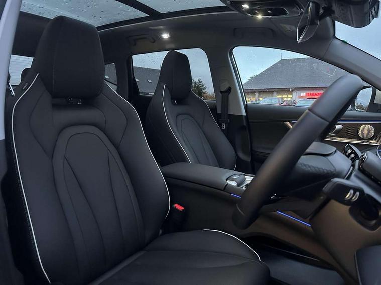 12.3" LCD central console infotainment display, 12.3" LCD instrument cluster, 3 driving modes Normal, Eco, Sport, 540 degree surround view camera, Adaptive cruise control, Blind spot detection, Cloud-based voice assistant, DAI Forward Departure System, E-call safety system, Electric power steering, Emergency lane keep assist, Front and rear parking sensors, Front collision warning, Hands free tailgate, ICA - integrated cruise assist, Intelligent elude system, Lane departure prevention, Lane departure warning, Multiple collision defence system, Power tailgate, Rear cross traffic alert, Remote engine start, Remote HVAC start, Speed limit reminder, Traffic jam avoidance assistant, Wireless Apple CarPlay/Android Auto, Wireless charging pad (50W max), Multilink rear suspension, 1x Rear Type-A USB, 2 x Front USB, 1 x Type A, 1 x Type C (fast charging), DAB Digital radio, Sony 8 speaker sound system, Automatic high beam, Automatic LED headlights, Body colour door handles, Dual rear fog and reversing light, Electric slide and tillt front panoramic sunroof/fixed rear sunroof with sunblind, Electrically adjustable, heated and folding door mirrors, Electrically height adjustable headlights, Follow me home headlight function, Heated rear windshield, Hidden front wiper - adaptive speed control, High level brake light, LED daytime running lights, LED rear lights, Manual dimming rear view mirror, One touch window function for all doors, Rear side wing doors, Rear wiper, Side mirror ground illumination puddle lamps, Sound insulating windscreen, 12V socket in luggage compartment, 2 zone automatic climate control, 3 seat bench in 2nd row, 4 way adjustable steering column, 4 way electric adjustable passenger seat, 6 way power adjustable driver seat, 60/40 split folding rear seats with flat folding, Driver/passenger sunvisor with auto illuminated vanity mirrors, Front and rear integrated head support, Front centre armrest with storage cover auto illuminate, Front reading light, Heated front seats, Isofix child seat anchor points, LED illuminated step entry sills, Multi function steering wheel, Rear AC vents, Rear reading lights, Single front passenger seat, Synthetic leather steering wheel, Synthetic leather upholstery, Ventilated front seats, 3 point seatbelts on all seats, ABS/EBD, Autonomous emergency braking, Brake assist and priority system (BAS) (BOS), Dual front airbags, Electronic parking brake with auto hold, Electronic Stability Programme, Front centre airbag, Front side airbags, Front ventilated disc brakes, HDC - Hill descent control, Hill start assist control (HAC), Mechanical child safety lock, Passenger airbag manual switch off, Power limited seatbelts with pre-tensioners with height adjustable front seatbelts, Side curtain airbags, Solid rear disc brakes, Tyre pressure monitoring system, Automatic door locking, Engine immobiliser, Keyless start button, PEPS (passive entry and passive start), Dark colour interior, 19" Alloy wheels, Puncture repair kit,