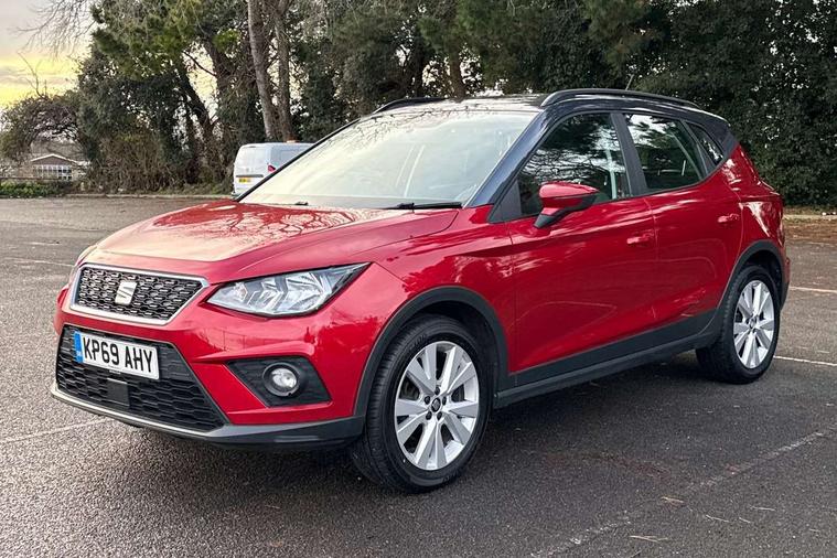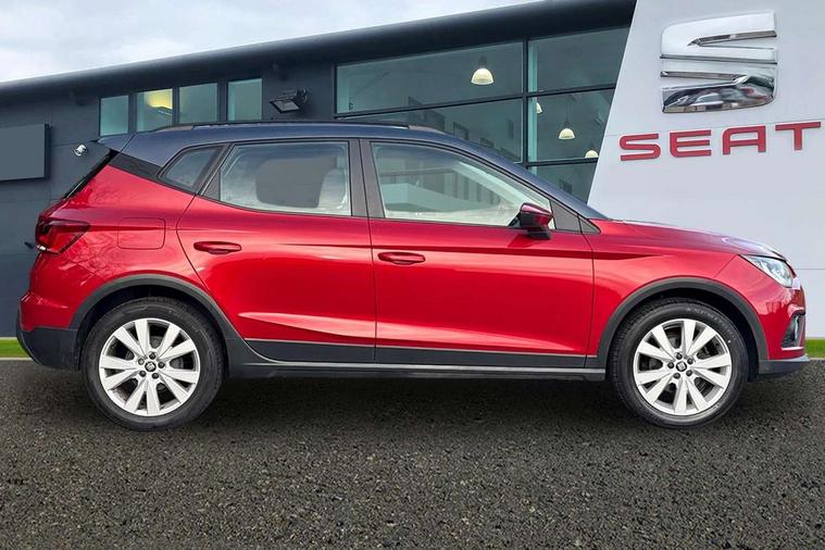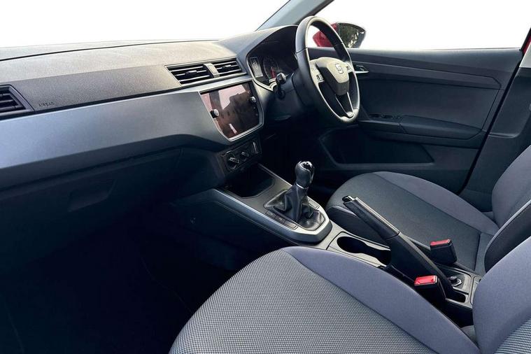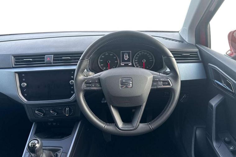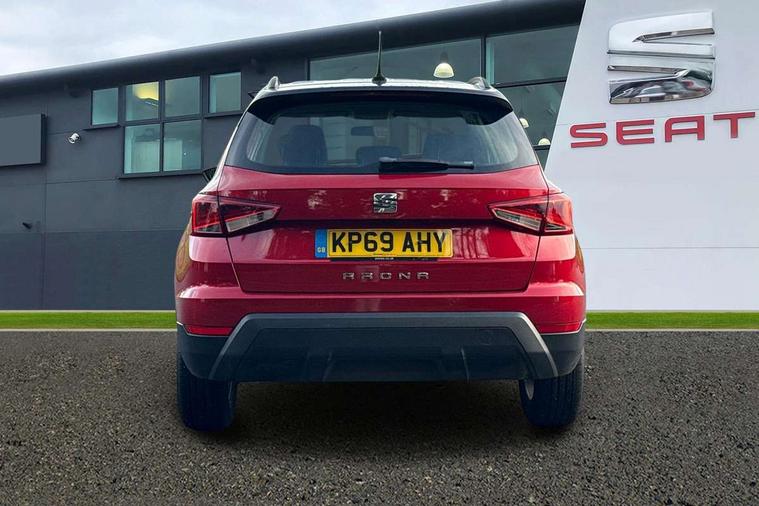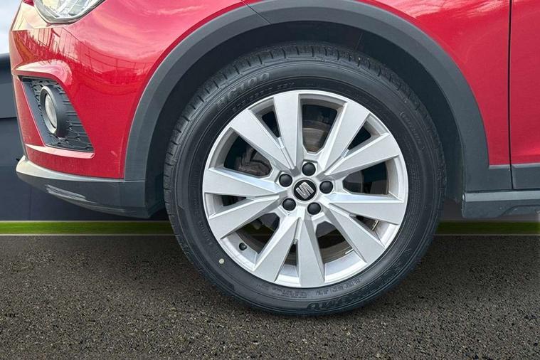 'Lights On' Reminder warning buzzer, Cruise control, Digital clock, Electric speed sensitive power steering, Full Link Smartphone Integration with Mirror Link, Apple Car Play, Google Android Auto with USB Type C cable for Apple and Android compatibility, Low fuel warning light, Outside temperature display, Rear parking sensor, RPM counter, Trip computer, Comfort suspension, 6 speakers, Bluetooth interface for hands free and audio streaming, DAB digital radio and AM/FM radio, Steering wheel mounted audio controls, Anti theft roof antenna, Automatic activation of hazard warning lights, Automatic headlights, Black roof rails, Black window trims, Body coloured bumpers, Body coloured door handle inserts, Body coloured door mirrors, Chrome front grille frame, Dimming rear view mirror, Electric adjustable door mirrors, Electric front/rear windows with one touch/auto up/down, Electric headlight adjustment, Front fog lights with cornering function and rear fog light, Hidden exhaust pipe, LED daytime running lights, LED rear tail lights and licence plate lights, Rear window wash/wipe, Visible VIN plate, Windshield wiper with intermittent control and potentiometer, 2 cupholders, 60/40 split folding rear seat, Air conditioning, Cloth upholstery, Double boot floor, Driver sunvisor with covered mirror + card holder, Dust/pollen filter, Front courtesy light with front reading lights, Gear shift indicator, Grey interior roof, Height adjustable front seats, Height/reach adjustable steering column, Illuminated boot, Instrument lighting with brightness control, Interior footwell lighting, ISOFIX points in outer rear seats with top tether anchorage points, Leather steering wheel/gear knob/handbrake, Multi-colour ambient interior lighting, Passenger sunvisor with vanity mirror, Two front and three rear height adjustable headrests, Connectivity pack plus - Arona, Interior chrome pack - Arona, 3 point seatbelts on all rear seats, ABS, Active front headrests, Child locks on rear doors, Driver and front passenger airbags with front passenger airbag de activation, front side and curtain airbags, Electronic stability control, Emergency Brake Assist (EBA) and front assist, Front and rear seatbelt reminder, Hill hold control, Multi-Collision braking, Tiredness recognition system, Traction control, Tyre pressure monitoring system, 2 folding remote keys with window open/close function, Electronic engine immobiliser, Locking wheel bolts, Remote central locking + deadlocks, Interior chrome line trim, Plastic grey dashboard, 17" Dynamic alloy wheels,