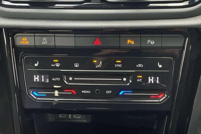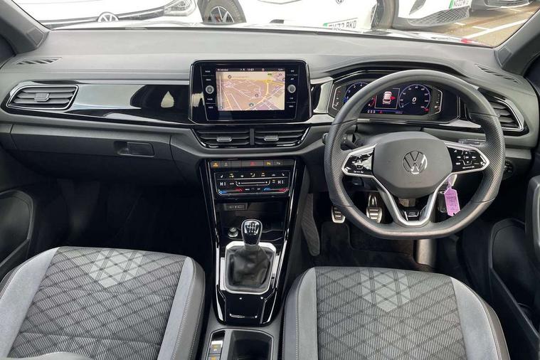 10.25" Digital cockpit pro, Bluetooth mobile phone interface, Driver alert system with fatigue detection, Driver tips and journey analysis, Emergency call service, Lane keeping system Lane Assist, Modified key software - reduce switch off time for key status change to Long no motion, Online services, Park assist including front and rear parking sensors, Service interval indicator, Tailgate/trunk lid release from outside, Think blue trainer driver tips and journey analysis, Warning sound and light for front seatbelts unfastened, Wireless app connect, Battery regeneration during braking, Start/stop function with battery regeneration, Diversity antenna for FM reception, Music playback - MP3, WMA and AAC files, Premium USB cable in choice of either Apple or Android smartphone compatibility, SD card slot, Simultaneous pairing of 2 compatible mobile devices, Title and cover art display, We Connect and We Connect Plus functionality, 3rd brake light, Auto dimming interior rear view mirror, Automatic hazard lights activation under emergency braking, Automatic headlight control with LED separate daytime running lights with coming/leaving home function, Extended roof spoiler, Exterior mirrors aspherical on driver side, convex on front passenger side, External USB type C socket and charging sockets, Front windscreen wiper with intermittent wipe and 4 position delay, Heated rear window, LED rear combination lamps, LED rear number plate lights, LED tail lamp rear comination lamps, Power windows with comfort operation and circuit breaker, R-Line design body coloured bumpers, Rain sensor, Rear exhaust tailpipe, Rear fog light on one side and reversing lights on both sides, Rear side wing doors, Rear wash/wipe with intermittent wipe setting, Remote electrically foldable door mirrors, puddle lights and reverse activated passenger's door mirror, 12V power socket in centre console, 3 rear head restraints, 3 seat bench in 2nd row, 4 load lashing points in luggage compartment, Air care climatronic air conditoning system with active combination filter and 2-zone temperature control, Black roof lining, Chrome plated radiator grille inserts, air vent surrounds and light switch surrounds, Door and side trim panel with leatherette insert, Drawer under drivers seat, Front + rear carpet mats, Front centre armrest, Front cupholders x 2, Front footwell illumination, Front reading light, Front scuff plates with R logo, Instrument lighting, white adjustable panel illumination, Interior ambient lighting and surround lighting, Interior light delay, Isofix child seat preparation, Leather gearshift handle, Load-through provision with cup holder when folded down ('Unsplit rear seat bench, split folding backrest, with centre armrest), Luggage compartment lighting, Single front passenger seat, Stainless steel pedals, Storage compartment in left and right luggage area, Storage compartment in rear doors, Storage compartments in driver and front passenger doors, Sunvisors with illuminated vanity mirrors, Variable boot floor, height adjustable and removable, Driver assistance pack without proactive passenger protection - T-Roc, 3 point height adj front seatbelts + pretensioners, 3 point seatbelts in outer rear with ECE label, ABS, Child locks on rear doors, Driver and front passenger airbag with front passenger airbag deactivation, Driver and front passenger safety-optimised head restraints, Drivers seatbelt reminder, Electronic parking brake, Electronic Stability Control (ESC) inc EDL (Electronic Differential Lock) and ASR (Traction Control), Front and rear passengers curtain airbag system including front side airbags, Front assist with city emergency braking and pedestrian monitoring, Front seat side impact airbags, Hill start assist, Predictive pedestrian protection, Rear disc brakes, Single tone horn, Tyre pressure loss indicator, Volkswagen roadside assistance, Anti-theft alarm system with interior monitoring, backup horn, and towing protection, Remote central locking with SAFELOCK, radio remote control with 2 remote control folding keys, Trims for alloy wheels,
