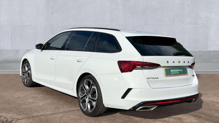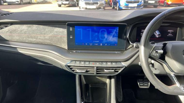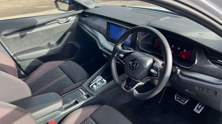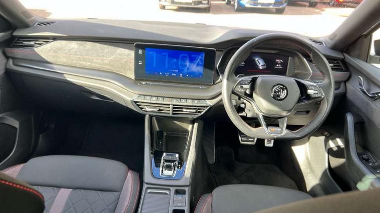 1x USB Type C port in rear view mirror (charging only), 2x USB Type C ports in rear of front centre armrest (charging only), Blind spot detection+electrically adjust, heated, folding, driver side auto-dimming+passenger tilt by reversing door mirrors with memory+boarding spots, Bluetooth system, Colour multifunction trip computer, Columbus satellite navigation with 10" touchscreen display, Drive mode selector, Front assist system, Progressive dynamic steering, Smartlink (includes android auto and mirrorlink), Speed limiter, Turn Assist, Virtual Cockpit - 10.25" digital display, Voice control system, Wireless SmartLink for Apple Car Play, Electronically controlled limited slip differential, Front and rear stabilizers, Sports suspension with 15mm lower, 2x USB Type C ports (for charging and data transfer), DAB Digital radio, Swing radio with 8.25" touchscreen, Aero front windscreen wipers with intermittent function, Auto dimming rear view mirror, Black roof rails, Body colour door handles, Chrome exhaust tailpipes, Door sills with vRS logo, Electric front and rear windows, Exterior gloss black sports styling including front grille, side strip, window surrounds, door mirror and badging, Full LED Matrix headlights with AFS, rear LED lights and dynamic indicators and cornering front fog lights, Heated rear windscreen, High level third brake light, Ice scraper in fuel cap, Rain and light sensors, Rear fog light on one side, Rear privacy glass, Rear spoiler, Rear window wiper, 3 rear headrests, 4 foldable roof handles, Alcantara padded dash panel with contrast stitching, Aluminium pedals, Black headlining, Chrome inner door handles, Cloth upholstery, Front centre armrest, Front head restraints, Heated front seats, Height adjustable driver and passenger seat with lumbar support, Illuminated air conditioned glovebox, Leather trimmed gearshift lever, Luggage compartment lighting with two side lamps, Mechanical rear seat release, Parcel shelf - rolling, Satin black textured with artificial stiching in dash board pads, Sun visors with mirrors, Sunglasses storage, Textile floor mat set, Three spoke leather sports multifunction steering wheel with paddles, Ticket holder, Umbrella in door panel, Unsplit rear bench seat and split folding backrest, LED interior light pack - Octavia, 3 point front/outer rear seatbelts+pre-tensioners, Alarm with interior monitoring, tilt sensor and back up horn, Automatic door unlocking in case of crash, Automatic fuel cut off in case of crash, Automatic warning lights in case of emergency braking, Drivers knee airbag, Electronic parking brake, Emergency call and proactive services, ESC including ABS, EBV, MSR, ASR, EDS, HBA, DSR, Front and rear disc brakes, Head and curtain airbags, Hill hold control, Hill start assist, ISOFIX on front passenger seat and outer rear seats, Passenger airbag deactivate switch, Red brake calipers, Two tone horn, Tyre pressure monitor, Visual and acoustic seat belt reminder, Warning reflectors in front door, Door locks with immobiliser, Keyless entry and start/stop including rear doors, Remote central locking, Carbon optic decorative inserts, Gloss black air vent surrounds, 19" Altair anthracite alloy wheels,