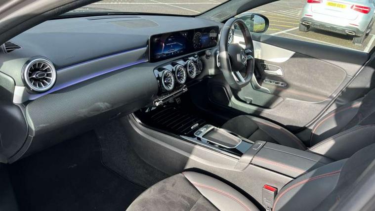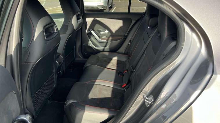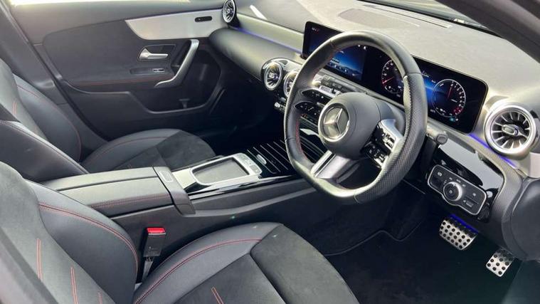 10.25 inch touchscreen central media display, 10.25" Digital instrument cluster display screen, Acoustic ambient protection, Attention assist, Blind spot assist, Brake pad wear indicator warning light, Car wash mode, Cruise control + speed limiter, Direct steering, Direction indicators with lane change function, Dual bluetooth interfaces, DYNAMIC SELECT with a choice of driving modes (ECO, Comfort, Sport and Individual), Easy pack tailgate hands-free access, ECO start/stop function, Engine start/stop button, Fingerprint scanner, Fluid level warning indicator for fuel, oil, coolant and washer fluid, Fluorescent jacket for driver, Hard-disk navigation, Hey Mercedes Voice activation, Lamp failure indicator, Lane keeping system, Mercedes me connect including emergency call system, accident recovery, breakdown and maintenance management, Mercedes me remote services, Outside temperature gauge, Owners manual in English, Pre-installation of private car share, Preinstallation for Mercedes Benz link, Remote and charging services plus, Remote boot closing, Service indicator (ASSYST), Smartphone integration with Apple CarPlay and Android auto, Speed limit assist, Speed sensitive power steering, Tailgate, Trip computer in multifunction display with current consumption indicator, Wireless charging, Charging system - AC charging system rated at 11kW, Charging system - DC charging system rated at 22 kW, Comfort suspension, Mode 2 charging cable for domestic socket with 5m up to 1.8kW, Mode 3 charging cable for wallbox and public charging stations with 4m upto 22 kW, DAB Digital radio, MBUX multimedia system, Mercedes Benz sound system (100 W) with 6 speakers, 4 Electric Front and Rear windows, Adaptive brake lights, AMG body styling - AMG front apron with front splitter and AMG rear apron and visible exhaust tailpipe trim elements, Body colour bumpers, Body colour door handles with chrome inserts, Body colour side skirt, Body coloured door mirrors, Chrome beltline strips, Diamond radiator grille with pins in fine star pattern, Electric adjustable and heated door mirrors with integrated LED side indicators, Exhaust system with 2 visible tailpipe trim elements and rear apron, Headlamp assist automatic headlamp activation, Heat insulating dark tinted rear and rear side windows, Heated glass rear windscreen + timer control, LED High level third brake light, LED High Performance headlamps including integral LED daytime running lamps and adaptive highbeam assist, LED tail lamp, Privacy glass, Radio aerial, Rain sensing windscreen wipers with two sensitivity settings, Rear fog lights, Rear side wing doors, Rear windscreen wiper, Window line trim strip in chrome, 3 seat bench in 2nd row, 3 Spoke flat bottom leather multi function steering wheel with perforated leather in grip area, 4 way lumbar support, 40:20:40 split folding rear seats, Air conditioning - One zone THERMATIC automatic climate control with automatically controlled air distribution, AMG floor mats, Automatic child seat recognition sensor, Black air vents with surround in silver chrome, Black roof lining, Brushed stainless steel sports pedals with rubber studs, Charging socket, Front centre armrest with stowage, Front door sills with Mercedes Benz lettering, Front seat backs luggage nets, Galvanished gear shift paddles on steering wheel, Heated front seats, Height/reach adjustable steering column, Interior lighting - 64 colour Ambient lighting, Interior mirror with reading lamps in black and frameless, Pre-entry climate control, Rear armrest with 2 cupholders, Seat occupancy sensor for front passenger seat, Single front passenger seat, Sports seats with integrated headrests, Stowage compartment in centre console with retractable cover, Sunvisors with illuminated vanity mirrors, Twin front cupholders, Light and sight package - A Class, Mirror package - A Class, Parking pack with 180 degree view - A Class, Seat comfort pack - A Class, USB pack plus - A Class, 3 rear 3 point seatbelts, ABS with Brake Assist, Active bonnet, Active brake assist includes forward collision warning system with autonomous braking, Adaptive brake assist with hold function and hill start assist, Black seatbelts, Bonnet with power domes, Childproof locks manually operated for rear doors and electrically operated for rear power windows, Crash responsive emergency lighting, Driver and passenger head and side airbags, Drivers knee airbag, Dual stage driver/passenger airbags, Electronic parking brake, ESP curve dynamic assist, ESP with ASR, Front and rear seatbelt reminder, ISOFIX and top tether child seat fixing points in two outer rear seats, Perforated front brake discs, Radar based regeneration, Tyre pressure monitoring system, Warning triangle and first aid kit, Window airbags, Alarm system/interior protection/immobiliser, Guard 360 degree vehicle protection, Keyless entry lock/unlock, Keyless Go, Remote central locking and crash sensor with emergency opening function, Light longitudinal grain aluminium trim, 18" AMG 5 twin spoke light alloy wheels, aerodynamically optimised, painted in black with high sheen finish, Summer tyres, Tirefit sealant kit,