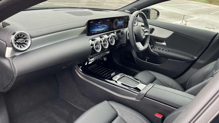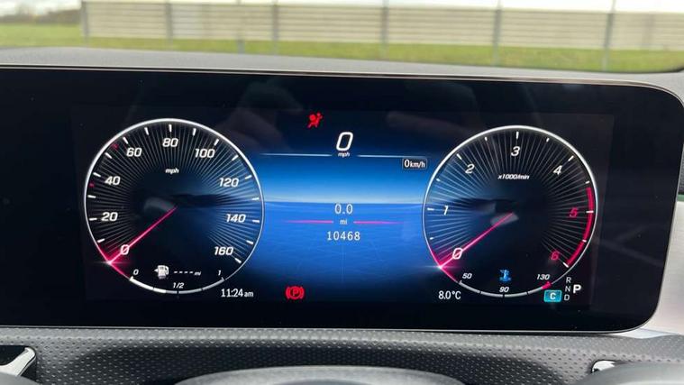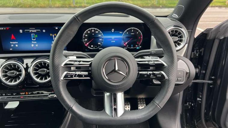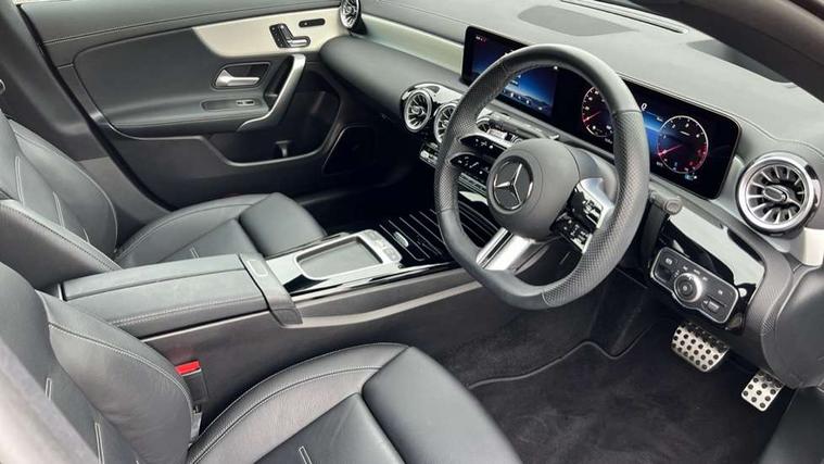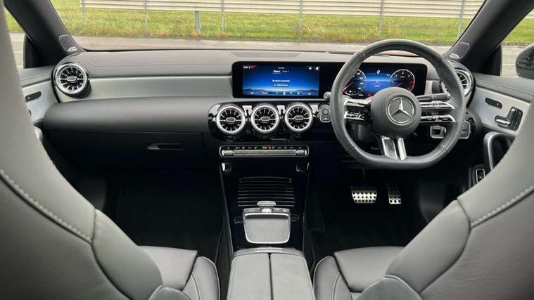 10.25 inch Instrument display with digital cockpit, 10.25 inch touchscreen central media display, Active lane keeping assist, Attention assist - Monitors steering behaviour and long journey fatigue, Bluetooth connection, Car wash mode, Cruise control with limiter, Direct steer system, DYNAMIC SELECT with a choice of driving modes (ECO, Comfort, Sport and Individual), ECO start/stop function, Fingerprint sensor, Fluid level warning indicator for fuel, oil, coolant and washer fluid, Hard-disk navigation, Head up Display, Hey Mercedes Voice activation, Lamp failure indicator, Mercedes me connect including emergency call system, accident recovery, breakdown and maintenance management, Mercedes me remote services, Outside temperature gauge, Owners manual in English, Pre-installation of private car share, Radio aerial integrated into front and rear windshields, Service indicator (ASSYST), Smartphone integration with Apple CarPlay and Android auto, Traffic sign assist, Trip computer in multifunction display with current consumption indicator, Wireless charging in the front centre console, Comfort suspension with ride height lowering, Rear axle multi-link, Burmester lettering on the speakers, Burmester surround sound system (710W) with dolby atmos, speakers - 1 central, 1 woofer, 1 tweeter, 1 subwoofer with 60W, 2 in C pillar, DAB digital radio tuner, MBUX multimedia system, Pre installation for Mercedes Benz Link, Adaptive brake lights, AMG body styling with AMG front apron and rear apron and visible exhaust tailpipe in chrome trim elements, Body colour door handles, Electric panoramic sunroof with automatic tilt and convenience closing fuinctions, rain sensor auto closing and electronic roller sunblind, Electric windows, Electrically adjustable and heated door mirrors with integrated LED indicators, Exhaust system with 2 Visible tailpipe trim elements and rear apron with trim in chrome, Hand free access, Headlamp assist automatic headlamp activation, Heated glass rear windscreen + timer control, High level LED third brake light, Integrated LED daytime running lights, Interior mirror with black reading lamps and frameless, LED tail lamp, Multibeam LED headlamps with adaptive highbeam assist plus, Privacy glass with dark tinting on rear side windows and rear window, Radiator grille with Mercedes-Benz pattern in chrome and central Mercedes star, single louvre in high-gloss black with chrome inserts, Rain sensing windscreen wipers with two sensitivity settings, Rear boot, Rear fog lamp, Rear side wing doors, Variable front intermittent wipers, 3 seat bench in 2nd row, 3 twin spoke flattened multifunction steering wheel in nappa leather - horizontal twin spoke in high gloss black, vertical twin spoke in silver chrome, 40:20:40 split folding rear seat backrests, Air conditioning - Two zone thermotronic luxury automatic climate control with display, Air vents with surround in silver chrome, Automatic child seat recognition sensor, Black roof lining, Brushed stainless steel sports pedals with rubber studs, Electrically adjustable front memory seats including 4 way lumbar support, Floor mats with stitched AMG lettering, Fluorescent jacket, Front centre armrest with stowage, Galvanished gear shift paddles in silver chrome, Interior lighting - 64 colour Ambient lighting, Luggage net on driver/front passenger seat backrest, Manually height and reach adjustable steering column, Rear armrest with two integral cup holders for drinks, Rear head restraints, Single front passenger seat, Sport seats with fixed head restraints, Stowage compartment in centre console with retractable cover, Sunvisors with illuminated vanity mirrors, Twin front cupholders, Two outer rear seat isofix and top tether child seat fixing points, Keyless go comfort pack - CLA, Light and sight pack - CLA, Mirror pack - CLA, Night package - CLA, Parking pack with 360 degree camera - CLA, Seat comfort pack - CLA, USB package plus - CLA, Winter pack - CLA, Active bonnet pedestrain safety measure which detects an impact and raises bonnet by 65mm, Adaptive brake assist with hold function and hill start assist, Anti lock braking system (ABS) with brake assist, Black seat belts, Bonnet with power domes, Brake calipers with Mercedes-Benz lettering, Brake pad wear warning indicator, Childproof locks manually operated for rear doors and electrically operated for rear power windows, Crash responsive emergency lighting, Driver and front passenger head and sidebags, Driver and front passenger windowbags, Drivers knee airbag, Dual stage driver and front passenger airbags, Electric parking brake, Electronic stability programme with acceleration skid control, ESP curve dynamic assist, Exit warning, Front and rear seatbelt reminder, Front passenger seat occupancy sensor, Perforated front brake discs, Sports braking system, Three point rear seat belts, Tyre pressure monitoring system, Warning triangle and first aid kit, Alarm system with immobiliser and interior protection -Thatcham category 1, Guard 360 deg vehicle protection - tow away protection with visual, acoustic warning, interior monitoring, preinstallation for parking damage, Remote central locking and crash sensor with emergency opening function, Light aluminium with longitudinal grain interior trim, 19" AMG multi-spoke black painted light alloy wheels with high sheen rim flange, Summer tyres, Tirefit tyre sealant kit,