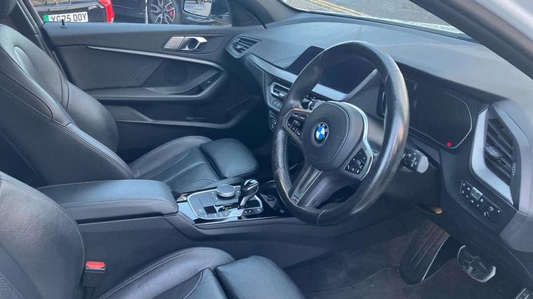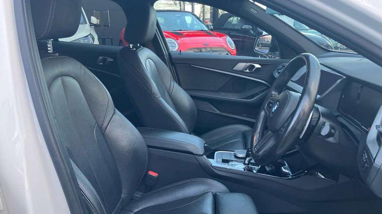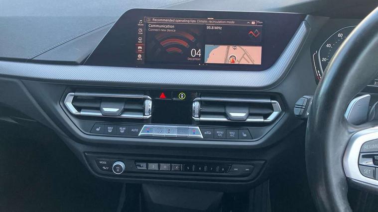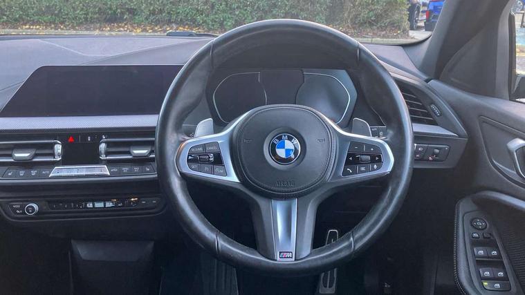 Active guard plus, Attentiveness assist, BMW Online services, BMW Teleservices, Check Control warning system for monitoring of lights and door/luggage compartment open warning, Connected eDrive Services, Eco pro mode, Integrated owners handbook, Oil sensor for level and grade, On board computer, Optimum shift indicator, Personal Profile, Pull away assistant, Speed limiter, Aluminium lightweight construction, Anti roll bar front and rear, Balancer shaft, Diesel particulate filter, Drive Performance Control, Electronic differential lock, Bluetooth audio streaming, DAB Digital radio, Auto dimming rear view mirror, Automatic headlight beam throw control, Automatic windscreen wipers and automatic headlight, Body colour door handles, Body colour mirror caps, Chrome 'M' logo side designation, Chrome exhaust twin tailpipes round 90mm in left and right split, Chrome kidney grille frame with Satin Aluminium struts, Direction indicator side lights in exterior mirrors, Electric folding and anti dazzle exterior mirrors, Fading support, Follow me home headlights, Front and rear bumper system with replaceable deformation elements, Front and rear electric windows with open and close fingertip control, anti trap facility and comfort closing, Front door sill finishers in black plastic with M designation in metallic look, Green tinted heat protection glazing, Heated, electrically adjustable exterior mirror aspheric on driver side, convex on passenger side, High gloss shadowline window frame, Recess cover mirror frames and B/C pillar embelisher trim, High level third brake light, LED daytime running lights, LED eyebrow turn indicators, LED front fog lights, Lightweight engineering, Matt black air guide grilles, Model designation on right side of tailgate, Nearside reverse light in rear light cluster, Preparation for high beam assistant, Rain sensor including auto headlights activation, Rear fog lights, Rear window wiper, Shark fin antenna, Visible VIN plate, Welcome lighting, 12V power socket in centre console, 3 rear seat head restraints, 3 spoke M sports design leather steering wheel finished in nappa leather with specific M badge, Anthracite headlining, Anthracite Velour floor mats, Child seat ISOFIX attachment for two outer rear seats and front passenger seat with anchorage points, Conditioned based service, Dakota leather upholstery with perforation and contrast stitching, Driver and front passenger seat heating, Folding rear clothes hook, Four grab handles integrated in roof lining, Front and rear door pockets, Front and rear door pockets with bottle holders, Front and rear side armrest integrated into door trim, Front armrest foldable with integrated storage compartment, Front sports seats with electric side bolster adjustment, Glove compartment, Height adjustable front head restraints, Manual adjust steering wheel, Multi-function controls for steering wheel, Storage compartment in centre console, Sun visors with vanity mirrors and insert tab, Two zone automatic air conditioning, Additional interior lighting pack - 1 Series, Connected pack professional - 1 Series, Extended storage pack - 1 Series, Interior lights pack - 1 Series, Luggage compartment pack - 1 Series, M Sport exterior styling aerodynamics pack - 1 Series, 2 tone horn, 3 point seatbelts on all seats, front pyrotechnic belt tensioners, stopper and belt force limiters, rear coded belt buckles, Airbags - front driver/passenger, front & rear curtain, front side, Anti lock braking system (ABS) with brake assist, BMW emergency call, Brake drying, Braking readiness, Crash sensor activating central locking release, hazard warning lights, fuel cut off, interior lighting + activation of safety battery terminal clamp, Driver and front passenger seat belt security check, Dynamic stability control + (DSC+), Dynamic Traction Control - DTC, Electrically operated hand brake, Front and rear disc brakes, Front passenger manual airbag deactivation, Seatbelt warning, Side impact protection, Tyre pressure monitoring system, Warning triangle and first aid kit, Automatic drive away locking facility, Central locking switch for all doors, fuel filler cap and luggage compartment, Deadlocking function system to all doors, Incorrect fuel protection system, Locking wheel bolts, Remote control with integrated key with High-gloss Black inlay and M designation and 1 button for open/ close lock, window, open luggage compartment, Start/stop button with comfort go keyless engine start and auto start stop deactivation button, Thatcham Cat.1 alarm and immobiliser, Contrast stitching on instrument panel, Reduced rolling resistance tyres,