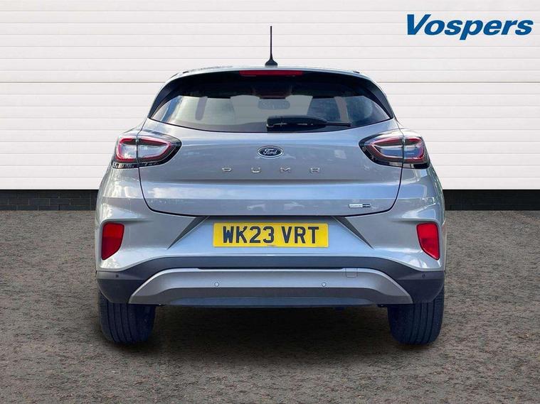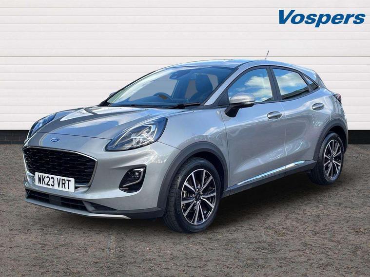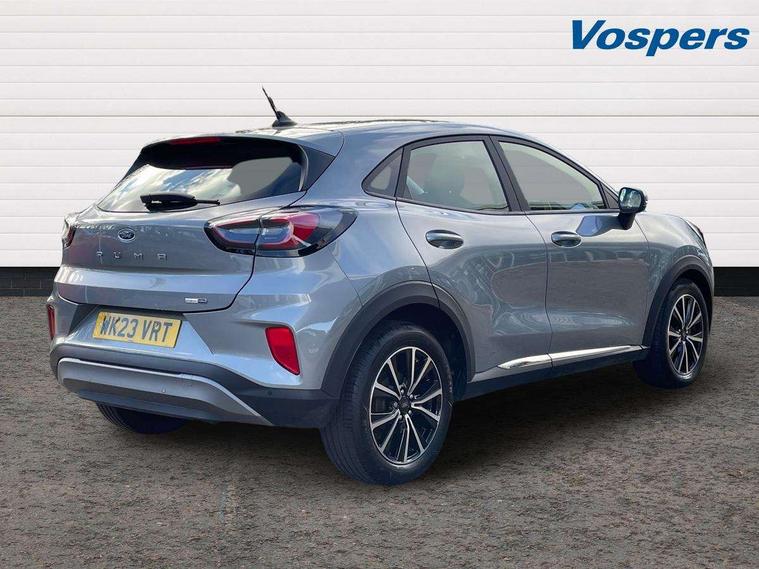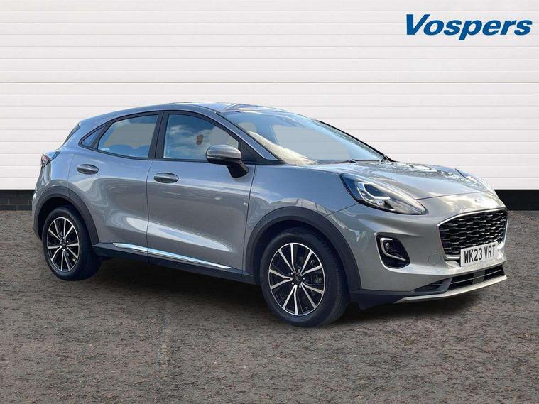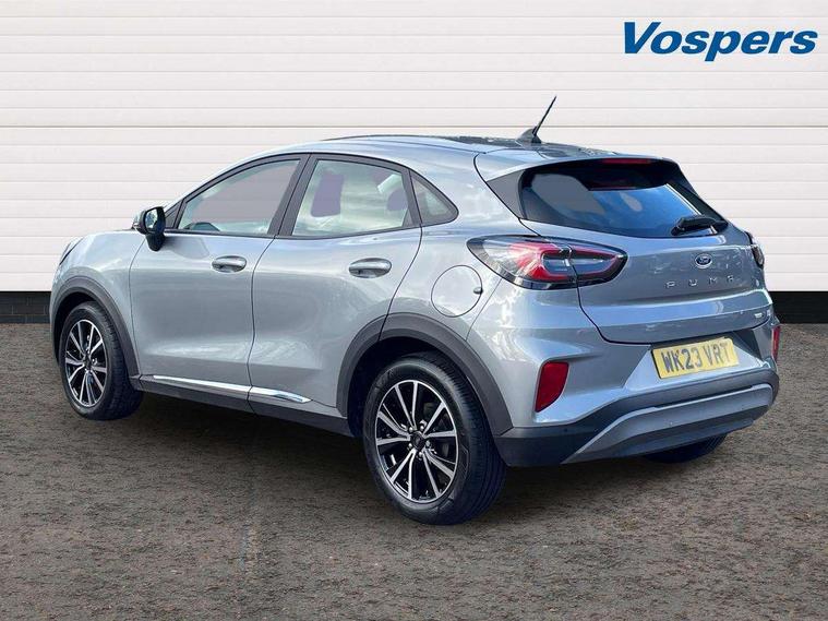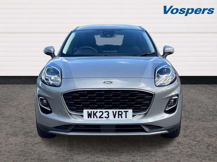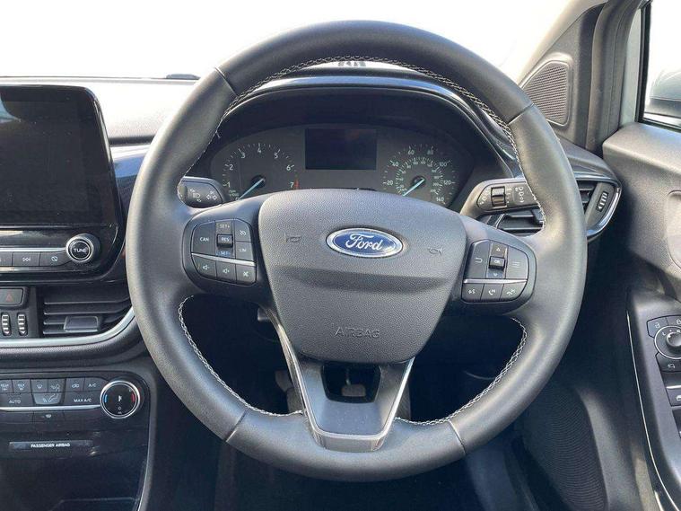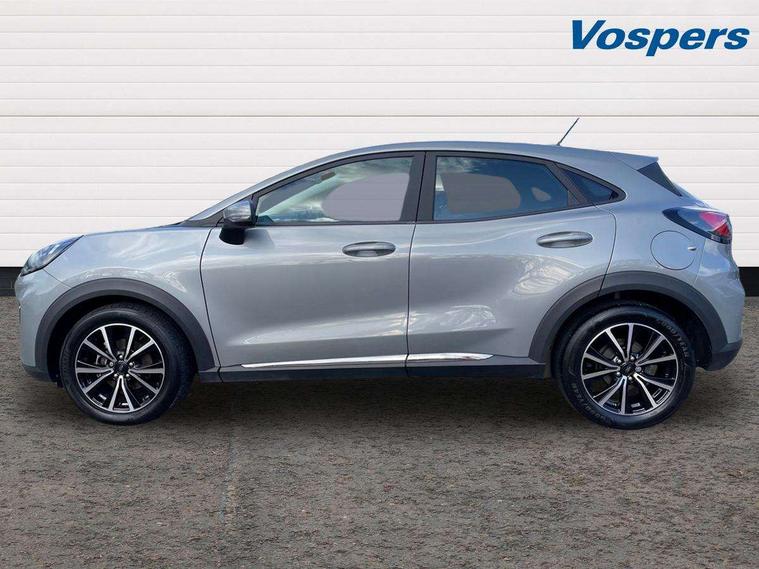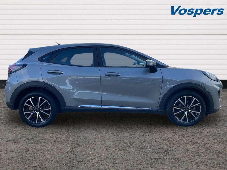 Driver impairment monitor, Emergency call service, Ford easy fuel, Lane keeping aid with lane departure warning, Power assist steering, Power start button, Rear parking sensor, Selectable drive modes(Normal, Eco, Sport, Slippery and Trail), Speed sign recognition, Standard suspension, Automatic headlights with auto high beam, Automatic rain sensing wipers, Body colour rear spoiler, LED rear lamps, Power foldable heated door mirrors with puddle lamps, Projector headlamps with LED day time running lights and front fog lamps, Quickclear heated windscreen, Rear side wing doors, Rear wiper, Third brake light, 3 seat bench in 2nd row, Centre console with armrest and stowage, Electronic automatic temperature control (EATC), Ford megabox extended bootspace, Front and rear head restraints, Front floor mats, Manual 2 way passenger seat adjustment, Manual 4 way driver seat adjust with lumbar adjustment, Sensico leather steering wheel/gear knob/handbrake, Single front passenger seat, Titanium cloth upholstery, Ford SYNC 3 navigation pack - Puma, 3 rear seatbelts, Child safety lock, Electronic stability control (ESC) and hill start assist, Pedestrian/cyclist detection & post-collision braking, Pre collision assist system, Tyre pressure monitoring system (TPMS), Thatcham alarm, 17" 10 spoke absolute black machined finish alloy wheel,
