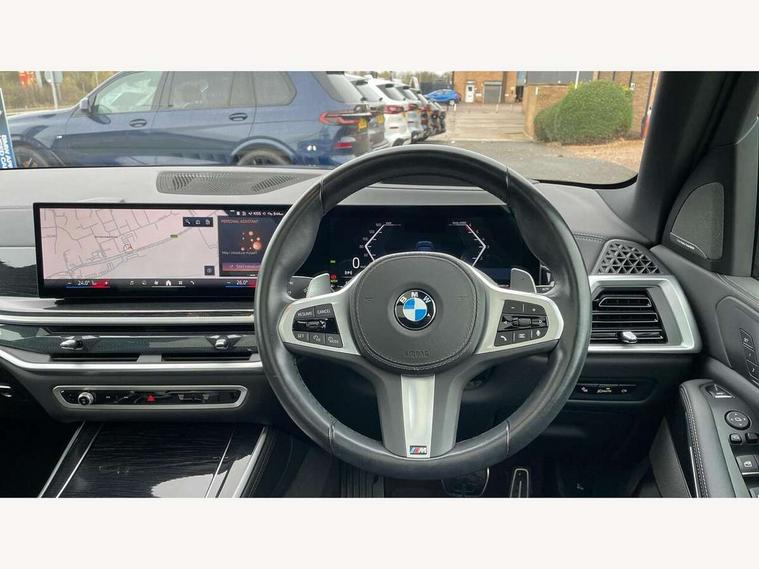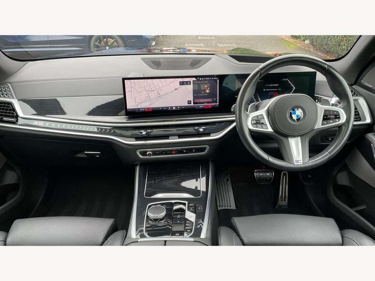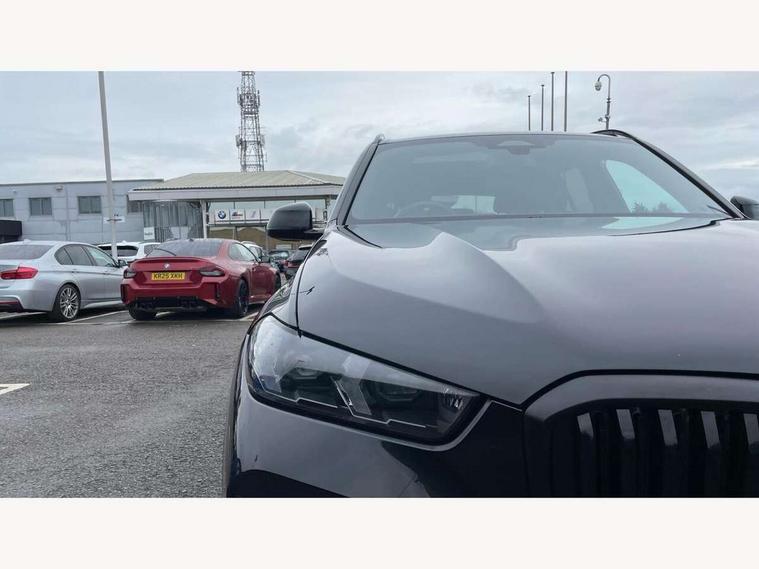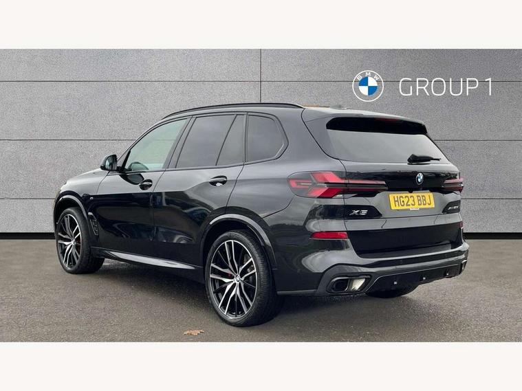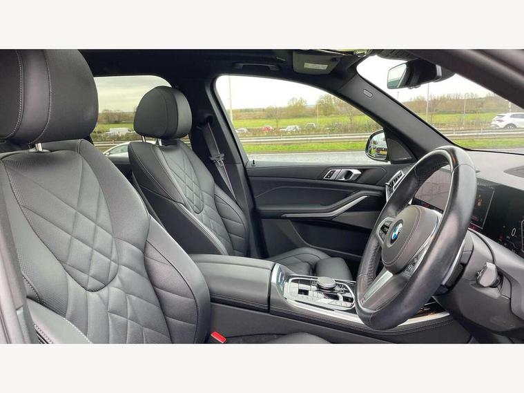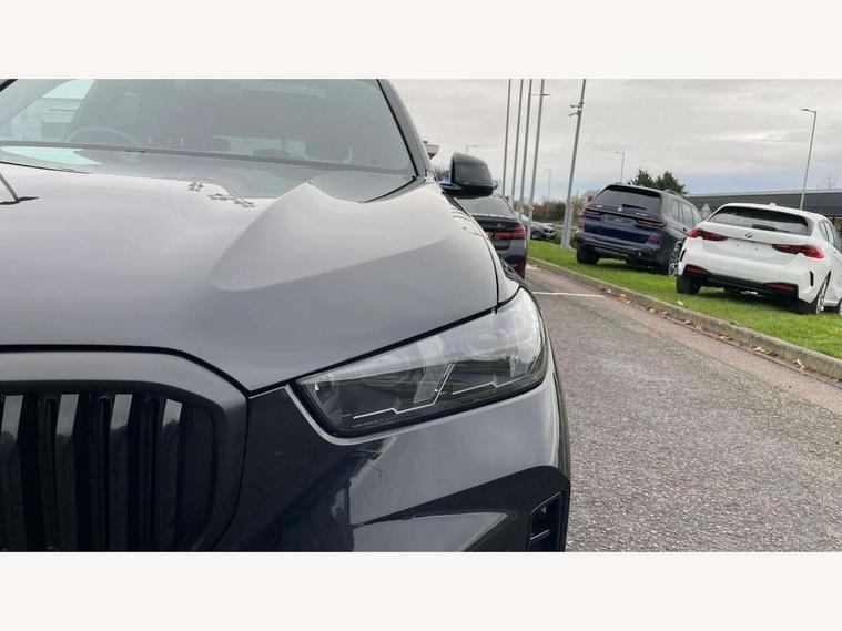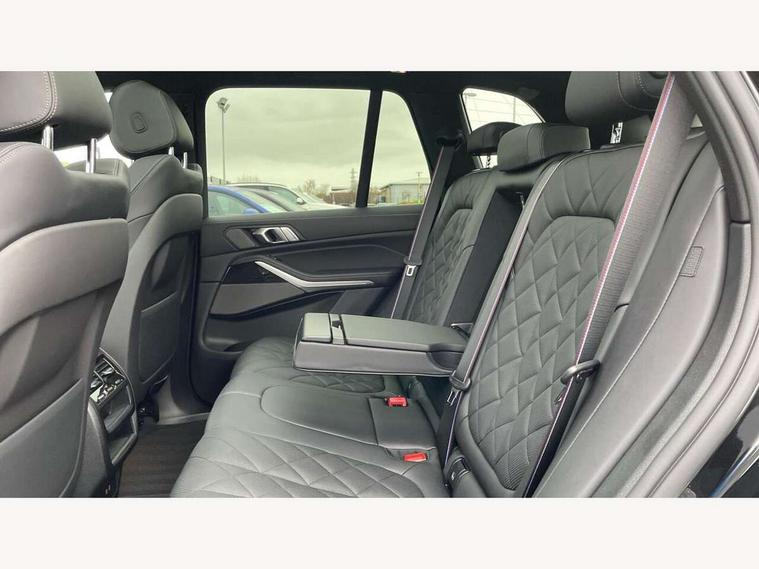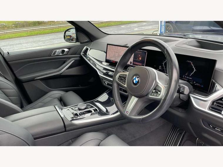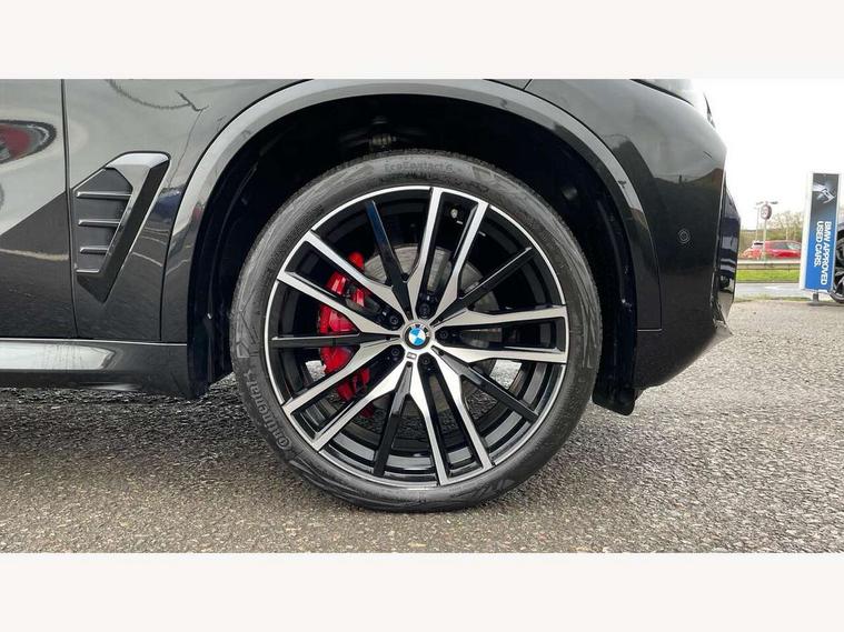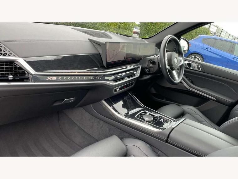 Attentiveness assist, Automatic tailgate operation, BMW ConnectedDrive online services, BMW live cockpit + with curved 12.3 instrument cluster/14.9 central display, nav/Tuner with diversity reception, RDS/4GLTE/remote software upgrade, BMW Recovery system, BMW Teleservices, Condition based service, Cruise control with brake assist, eCall emergency call system, Enhanced bluetooth with wireless charging, Integrated owner's handbook, PAS, Speed limiter, Wi-Fi hotspot, Drive performance control with ECO PRO comfort + sport mode, Eight speed steptronic sport automatic transmission and gearshift paddles on the steering wheel, Hi-Fi loudspeaker system, Adaptive LED Headlights, Front and rear electric windows, High beam assistant, High gloss black shadow line roof rails, LED daytime running lights, Rear side wing doors, Third brake light in rear spoiler, Variable intermittent rear wash/wipe, 12V - Power sockets with 2x centre console and 1x luggage compartment, 3 seat bench in 2nd row, Foldable rear centre armrest with 2 cupholders and storage compartment, Front and rear side armrest integrated into door trim, Headrests for all seats, Luggage compartment separating net, Single front passenger seat, Three spoke sport M leather steering wheel, Velour floormats, Ambient light interior pack - X5, Driving assistant pack with radar based driver assistance system - X5, Expanded exterior mirror pack - X5/X5 M, M aerodynamics pack - X5, 3 rear seatbelts, Active protection, Airbags - driver/front passenger, rear and side, first and second row seats head airbags, front passenger seat airbag deactivation + knee airbag, Anti-lock braking system (ABS), Automatic Stability Control (ASC), Brake energy regeneration, Cornering brake control (CBC), Crash sensor activating central locking release, hazard warning lights, fuel cut off, interior lighting + activation of safety battery terminal clamp, DSC - Dynamic Stability Control, Dynamic Traction Control - DTC, Electromechanical parking brake with automatic drive away release and auto hold function, Electronic brake force distribution, Hill start assistant, M Sport blue painted brake calipers with 'M' designation, Mechanical child proof lock on rear doors, Tyre pressure monitoring system, Tyre pressure sensors, Ventilated front and rear disc brakes, Warning triangle and first aid kit, Closing system with central locking, Comfort access system, Locking wheel bolts, Sensatec instrument panel,