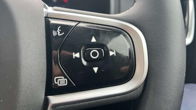 12.3" Progressive Driver Display, 360 degree surround view parking camera with side proximity sensors, 9" centre console touch screen, Adjustable steering wheel force, Apple CarPlay and Android Auto, Bluetooth handsfree system, Drive mode settings, Driver alert control with lane keeping aid, Driver assistance (pilot assist and adaptive cruise control), Driver awareness - Blind spot system + steer assist, cross traffic alert with autobrake, rear collision warning and mitigation, E-call, Emergency assist, Front and rear park assist, Google automotive services - Enabled entertainment apps, navigation with google maps, voice recognition with google assistant, Handsfree bootlid opening/closing, Intelligent speed assistance, Oncoming Lane Mitigation, Power operated tailgate/boot lid, Speed sensitive steering, Volvo on call app, 6m 3 phase 16amp Type 2 / mode 3 charge cable, 8 speed automatic transmission with start/stop + manual change functions, Dynamic chassis, Electric rear axle drive, Lithium-Ion Battery 18.8kWh, On board charger - 6.4 kW 2 phase/3.7kW single phase, Recharging port located in nearside front wing, DAB Radio (Digital Audio Broadcasting), Low speed exterior sound speaker, Premium Sound by Harman Kardon, dirac unison, dolby pro logic II surround sound, 13 speakers/600W output and fresh air subwoofer, Steering wheel remote infotainment controls, Adaptive brake lights with high level LED brake lights, Auto dimming interior + exterior mirrors, Automatic headlight levelling system, Automatic LED Headlights + Active high beam incorporating daytime running lights, Front and rear power windows, Heated windscreen, High gloss black door mirrors and window surround, High gloss black front and rear bumper decoratives, High gloss black mesh front grille and surround, Home safe and approach lighting, Integrated roof rails in high gloss black, Power heated autofolding door mirrors, Puddle lights, Rain sensor with automatic windscreen wiper activation, Rear LED lights with sequential indicators, Rear side wing doors, Rear wiper, Roof antenna, Roof spoiler, Variable front intermittent wipers, Visible VIN plate, 2 zone electronic climate control with Clean zone air quality system + pollen filter, 3 seat bench in 2nd row, 3 Spoke tailored steering wheel with chrome trim, Air purifier particulate matter (PM) 2.5 filter, Ambient door and instrument panel lighting, B Pillar ventilation, Boot lid/tailgate illumination, Bright metal luggage scuff plate, Cargo divider with grocery bag holder, Centre console cupholder and storage, Charcoal carpets and floor mats, Driver and front passenger seat power height adjustment, Extended front seat cushions, Front 12V socket tunnel console and cargo area, Front and rear cabin courtesy light, Front and rear door pocket lights, Front and rear footwell and side step illumination, Front and rear reading lights and centre armrest Storage Illumination, Front headrests, Glovebox compartment with illumination, Heated front seats, Heated rear seats outer positions, Heated steering wheel, Height/reach adjustable steering column, Illuminated luggage compartment, Illuminated recharge aluminium tread plates, Illuminated vanity mirrors + ticket holder, Illumination front tunnel storage, Inner door release handle illumination, Integrated sun curtains in rear doors, ISOFIX attachment on outer rear seats, Leather upholstery, Load cover, Load protection net, Luggage compartment load hooks, Memory function for drivers seat and exterior mirrors, Multi directional lumbar support, Power folding rear headrests, Rear armrest with cupholder, Single front passenger seat, Underfloor cargo storage, Versatile split folding rear seat - 60/40, 3x3 point rear seatbelts, Active bonnet, City safety with steering support with Pedestrian + cyclist + front collision warning with full auto brake and rear auto brake, Driver and front passenger airbags, Drivers knee airbag, Front seats SIPS airbags, Hill start assist, IC (Inflatable Curtains) - Full Length, Passenger airbag cut-off switch, Power child locks on rear doors, Power parking brake with auto hold function, Road sign information display, Run off Road Mitigation, Run off Road Protection, Seatbelt reminder and pretensioners for all seats, SIPS (Side Impact Protection System), Slippery road and hazard light alert, Stability and Traction Control with Spin control, Engine Drag Control and Corner Traction Control, Tyre pressure monitoring system, Vehicle deceleration control with Anti-lock Brake System, Electronic Brake Distribution and Emergency Brake Assist, Warning triangle and first aid kit, WHIPS whiplash protection system - front, 2x Key integrated remote control central locking + fuel flap with deadlocking system and auto open/close power windows, Anti-theft alarm including immobiliser/volume sensor + level sensor, Care key with user defined top speed, Keyless drive includes keyless entry and keyless start, Locking wheel nuts, Private locking for tailgate, Tailored Instrument Panel and Door Tops with Contrast Stitching, 19'' 8 spoke diamond cut black alloy wheels, Tyre sealant kit and compressor,