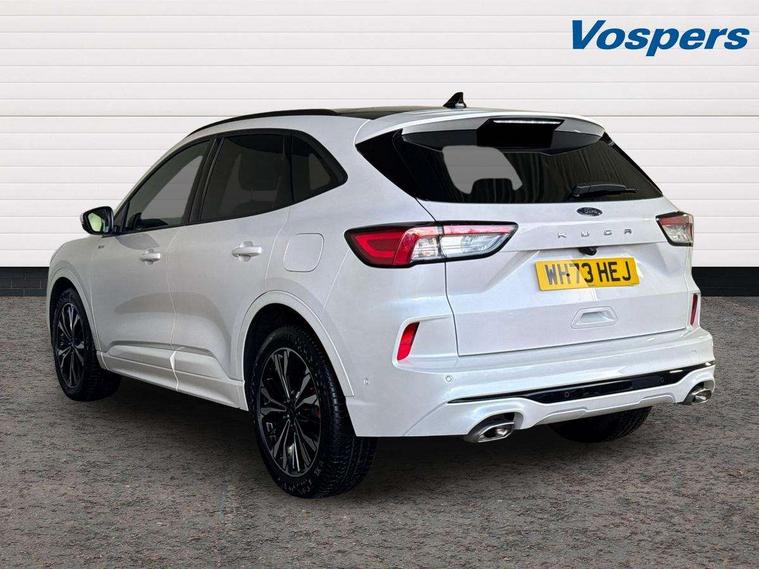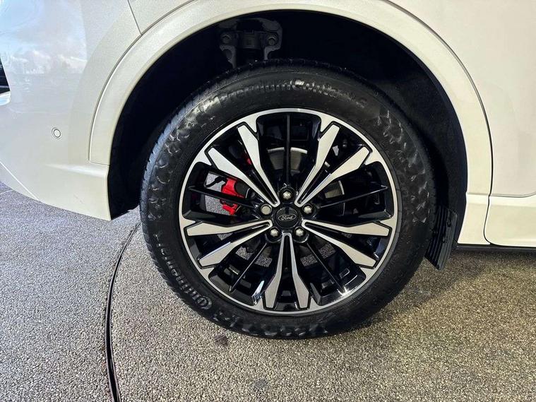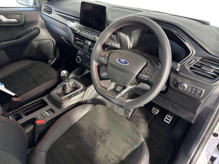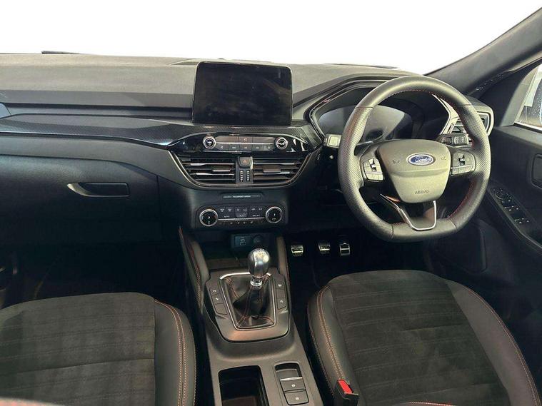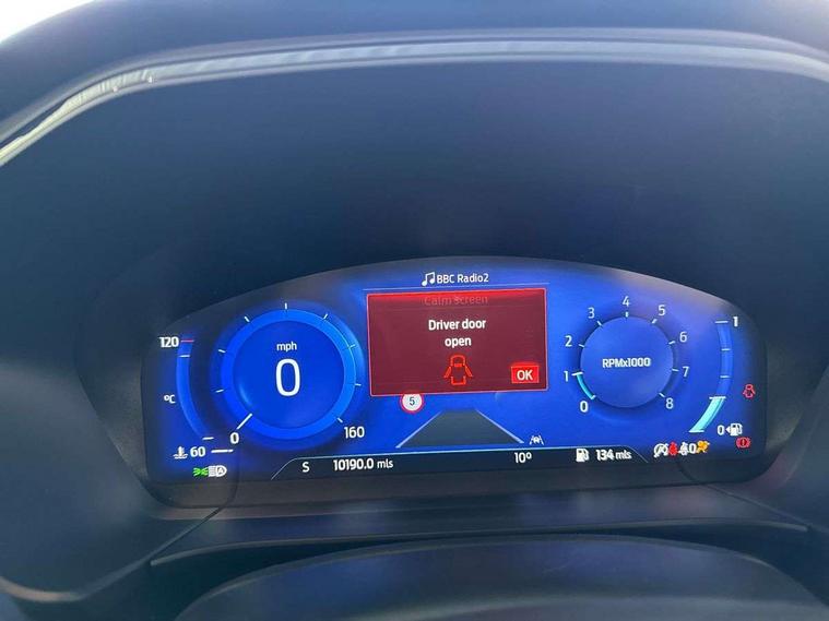 12.3" digital colour instrument cluster, Ford easy fuel, Ford SYNC 3 with 8" TFT LCD touchscreen, App Link, andriod auto/apple carPlay, emergency assistance and navigation with Ford pass connect, Front and rear parking sensors, Hands free power tailgate, Lane keeping aid with lane departure warning, Power assist steering, Rear view camera, Selectable drive modes, Service interval indicator, Sports suspension, Twist beam rear suspension, B&O premium audio system with 10 speakers and subwoofer, 2 USB ports, DAB radio/CD, Auto headlamps with high and low beam, Black roof rails, Body colour bumpers, Day/night rear view mirror, Front LED fog lamps, Large rear roof spoiler, LED daytime running lights, LED rear lights, Power folding, electrically adjustable and heated door mirrors with puddle lights, Power front/rear windows with global close, Power opening panoramic roof, Quickclear heated windscreen, Rain sensing wipers, Rear privacy glass, Rear side wing doors, Rear wiper, ST Line body styling kit with unique front and rear fascia and bumper, rear painted diffuser, front painted skid plates, dark mesh upper grille, ST Line front scuff plates, Third brake light, Twin exhausts, 2nd row sliding seats with 60:40 split, Alloy pedals, Centre console with electronic parking brake, Dark headlining and pillars, Electronic automatic temperature control (EATC), Flat bottomed leather steering wheel in sensico with red stitching, Front and rear head restraints, Heated passenger and driver seats, Heated rear seats, Heated steering wheel, Partial premium touch Sensico with black cloth inserts and red stitching, Rear centre head restraint, Single front passenger seat, Sports seats, ST Line front and rear floor mats, ST Line gear knob, 3x3 point rear seatbelts, Airbags - front driver/passenger, front and rear curtain, Drivers knee airbag, Electronic stability control (ESC) and ABS, Ford MyKey Gen 2 safety system, Manual child proof rear door locks, Post collision braking, Pre collision assist with autonomous emergency braking, Rear seat Occupancy alert, Red brake calipers, Tyre pressure monitoring system, Engine immobiliser, Keyless entry and Ford power start button (Keyless start), Locking wheel nuts, Remote powered central double locking doors, Thatcham category 1 alarm,